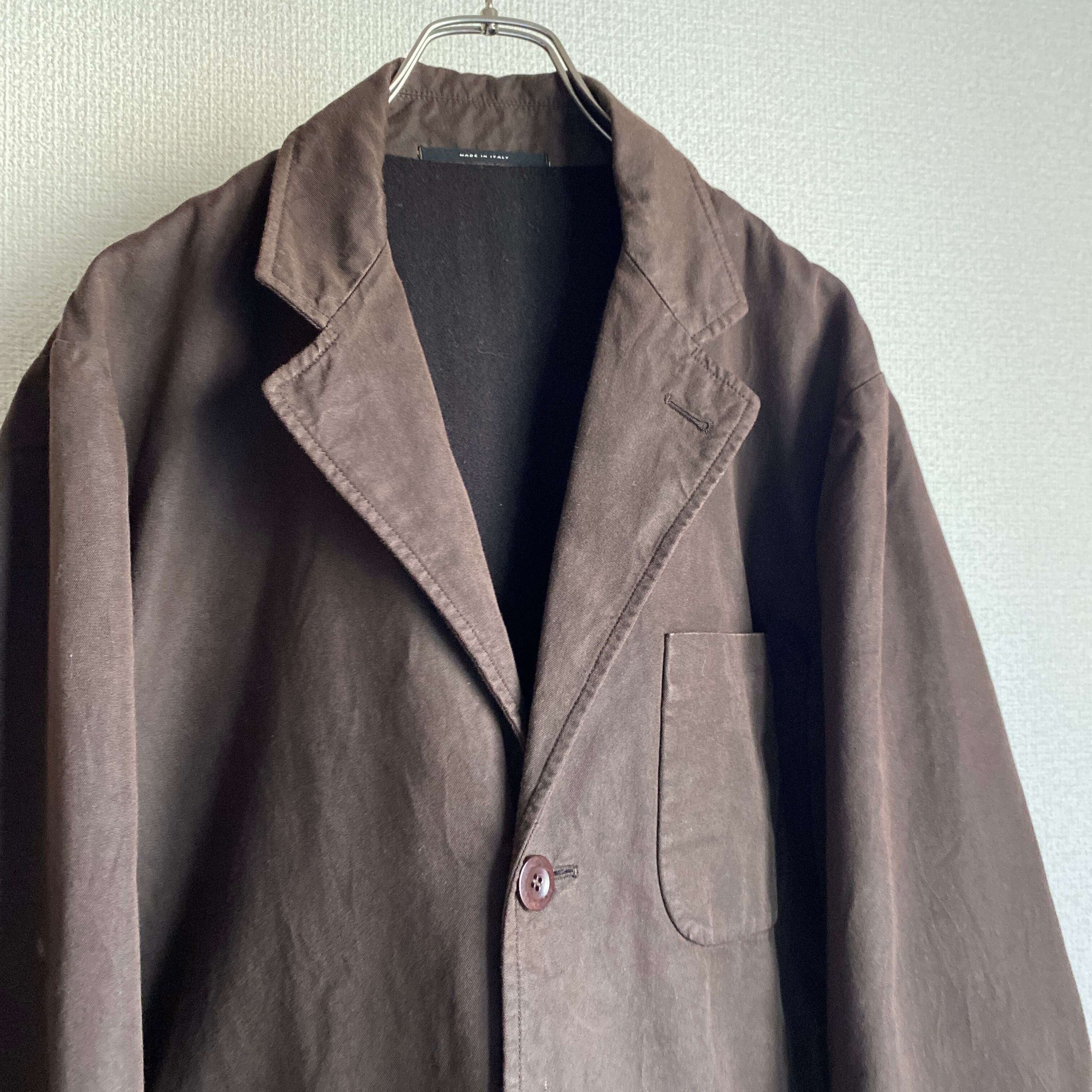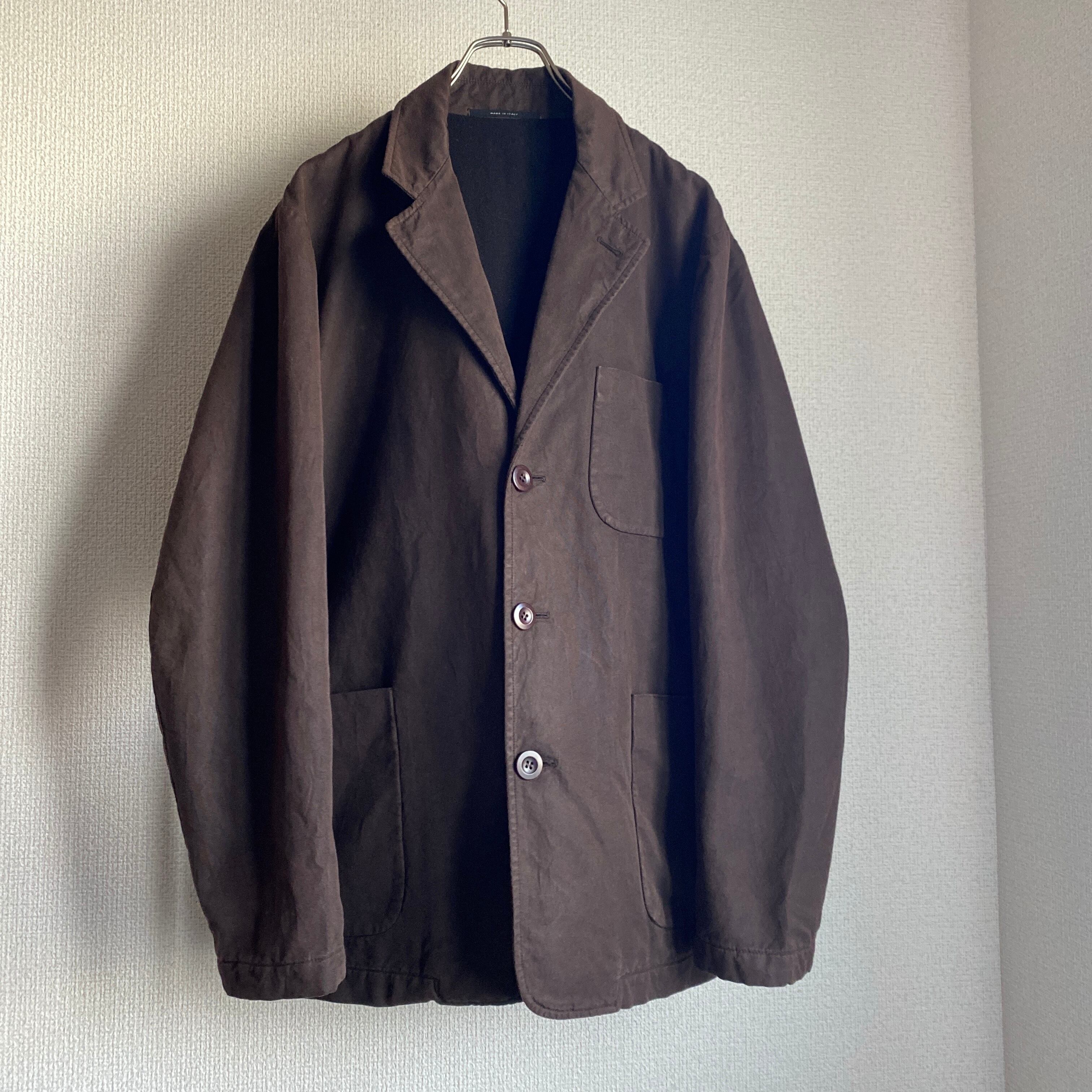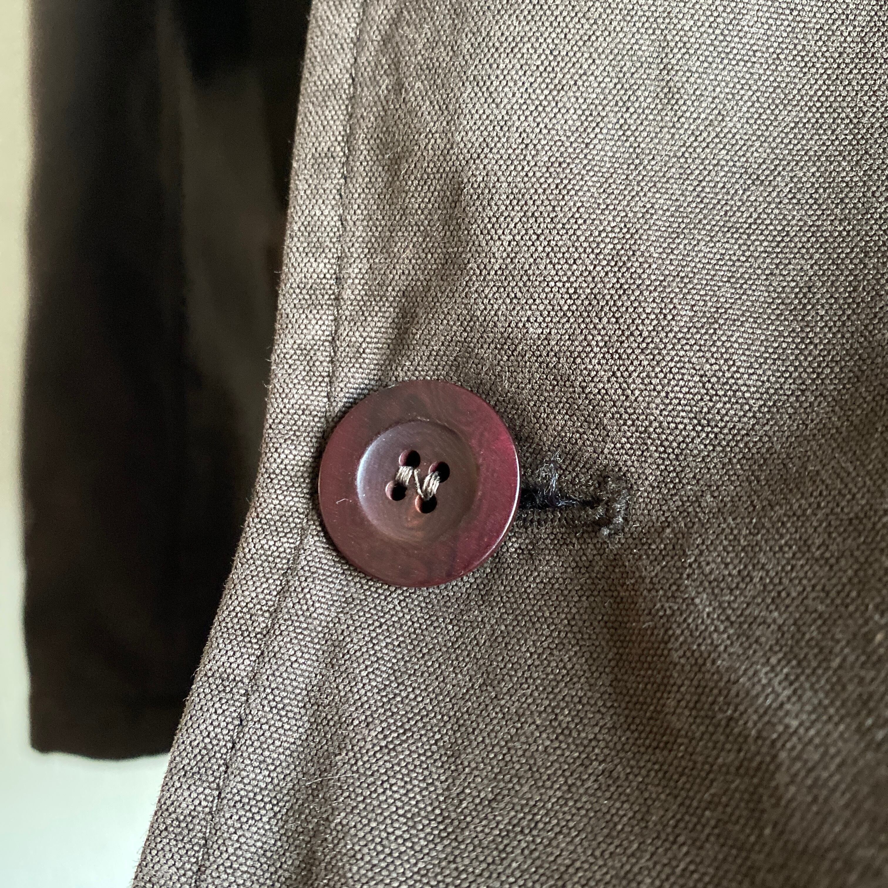 肉厚で程よくハリ感のある平織のコットンナイロン素材に、おそらく泥染め加工が施された雰囲気の良い一着。