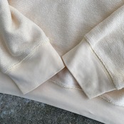 柔らかい薄めのレモンイエローカラーに、程よく肉厚で柔らかな鹿の子スウェット素材がかわいい一着。