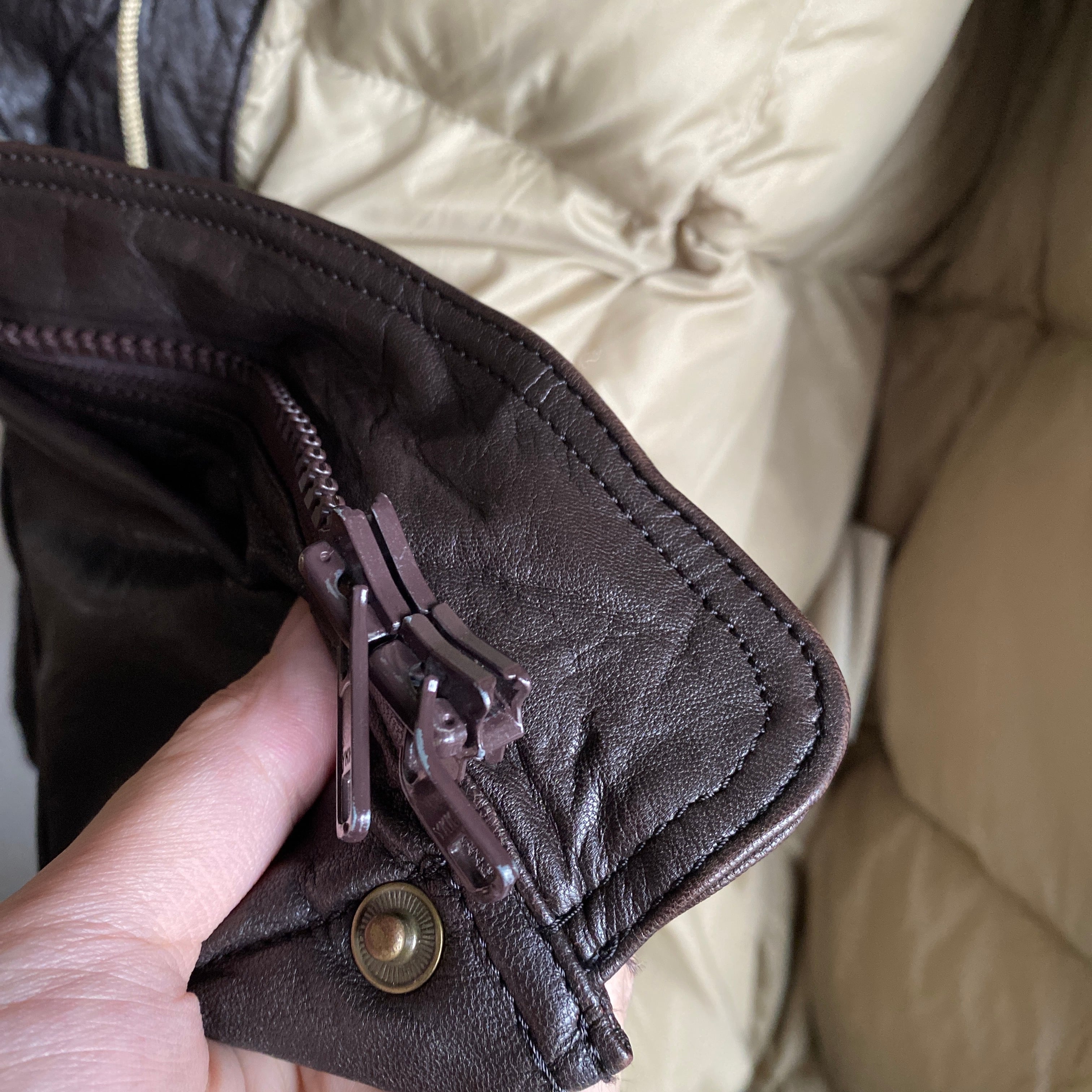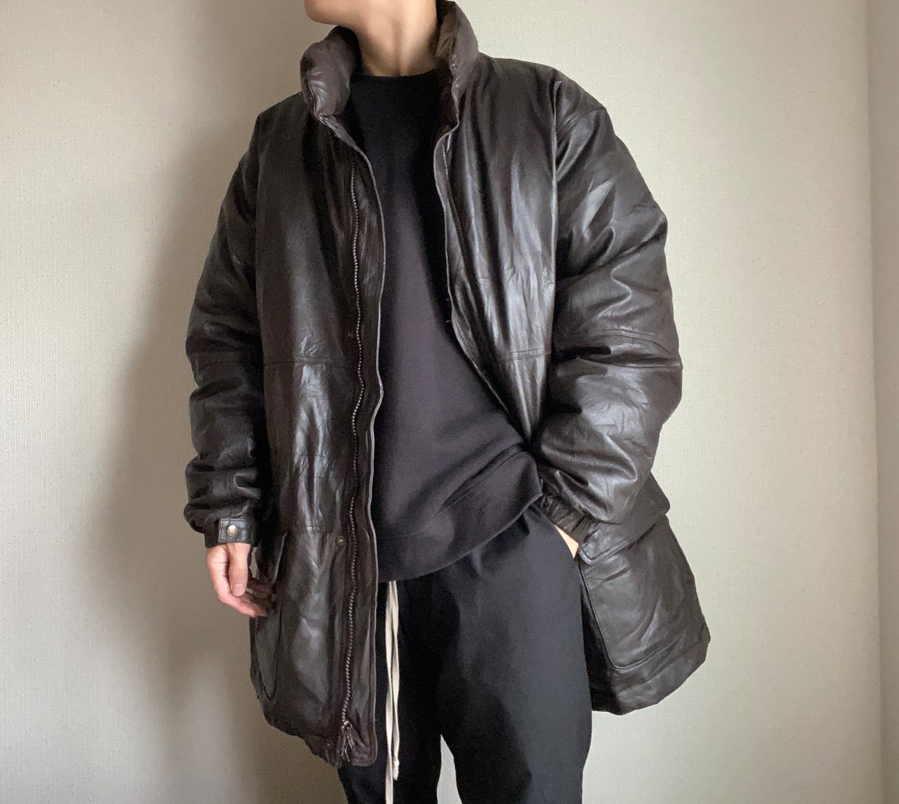 ダークブラウンカラーのレザーにグースダウンの仕様は、防寒製が高いだけでなく、ストリートな雰囲気がありながら上品で格好良いです。