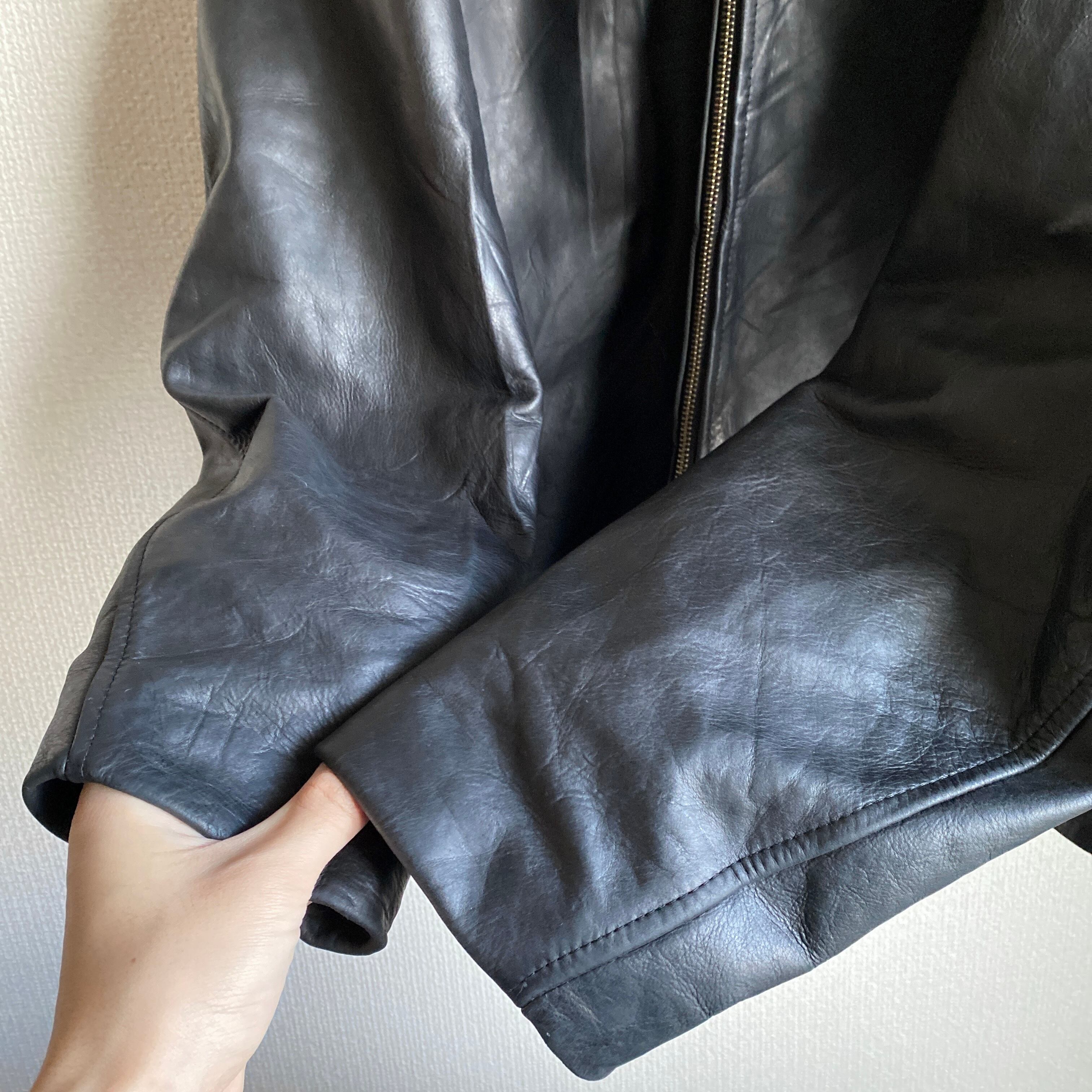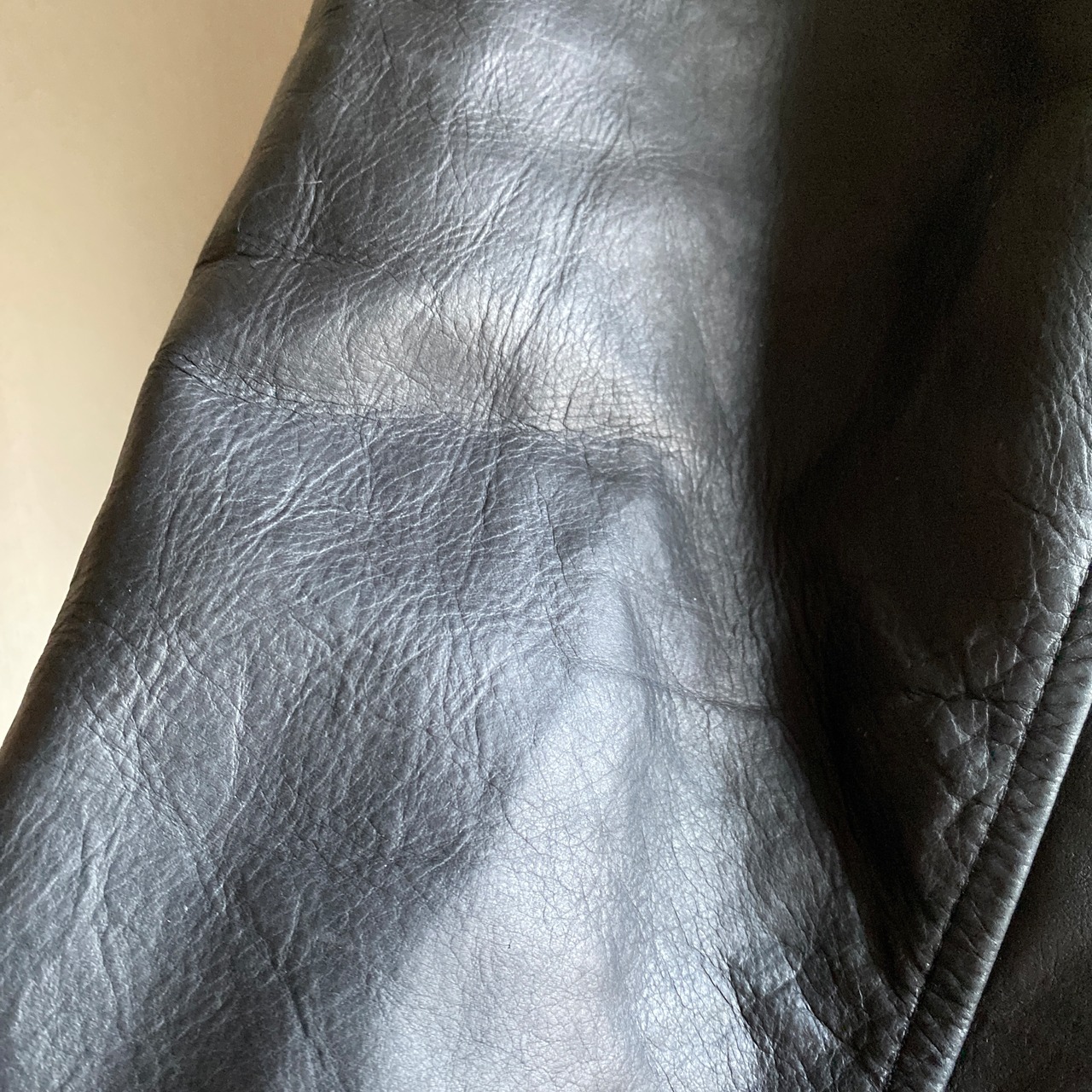 こちらはブラックカラーの肉厚なカウレザー(推測ですが)に、ハイネックのデザインが格好良い一着。