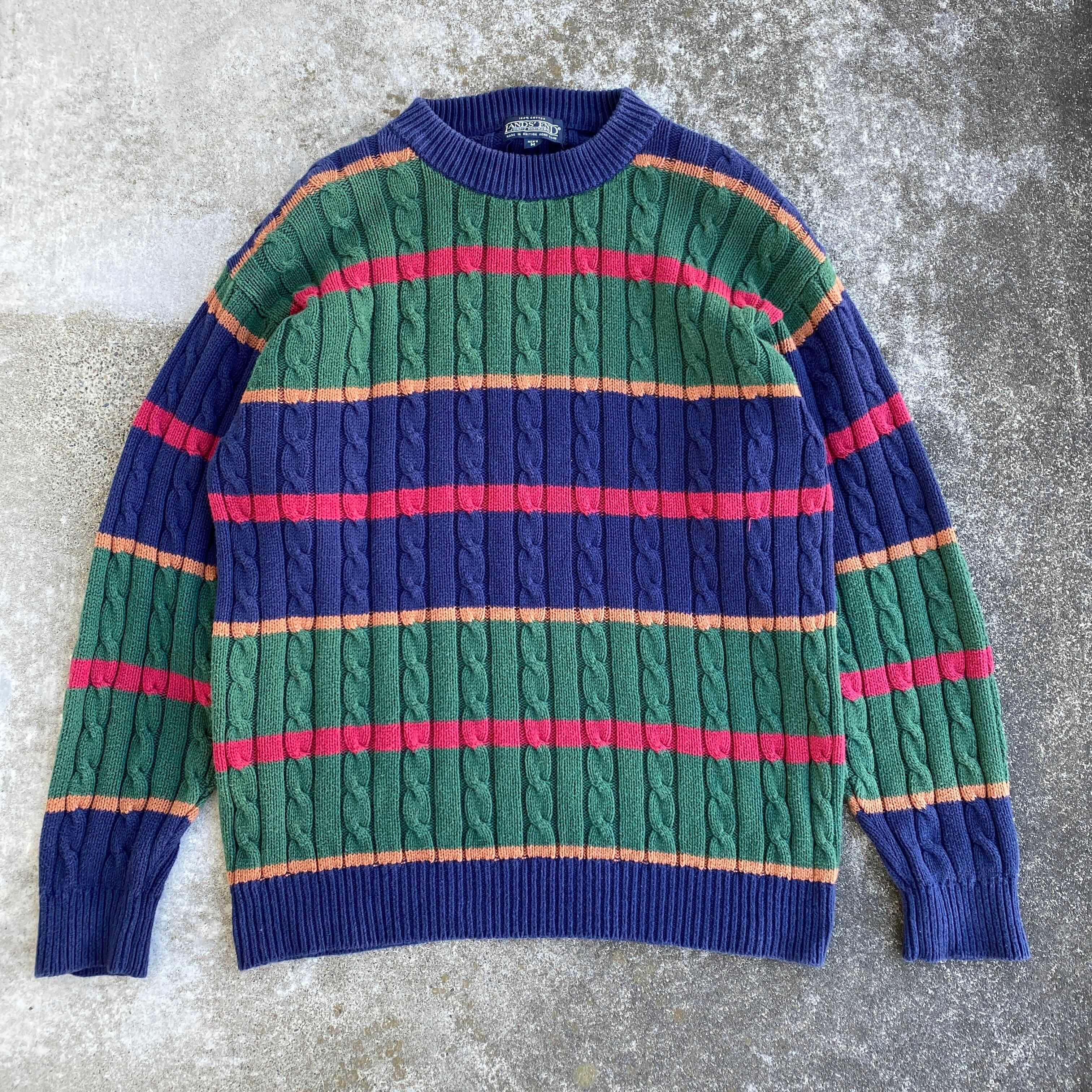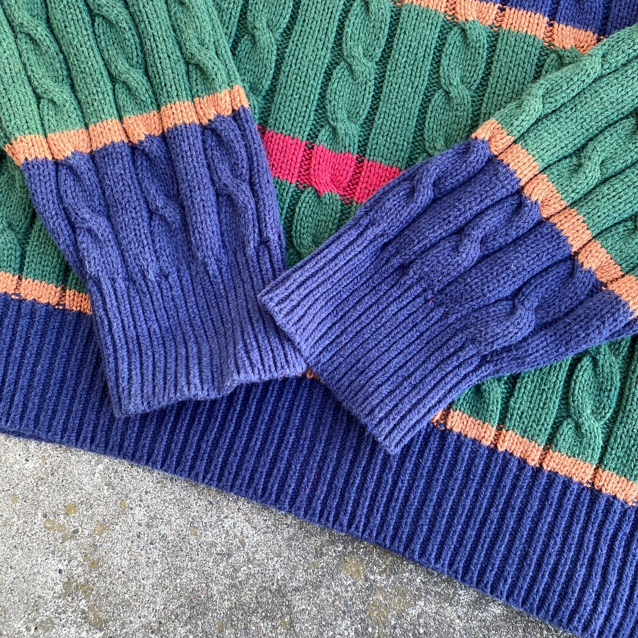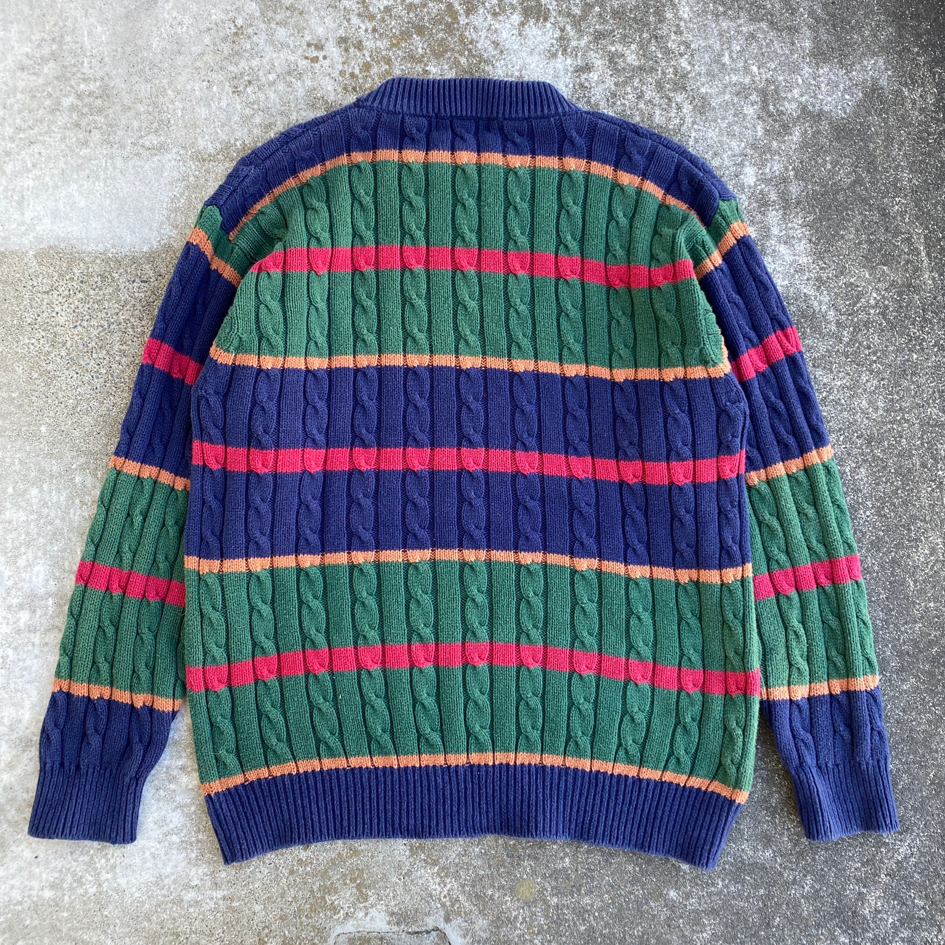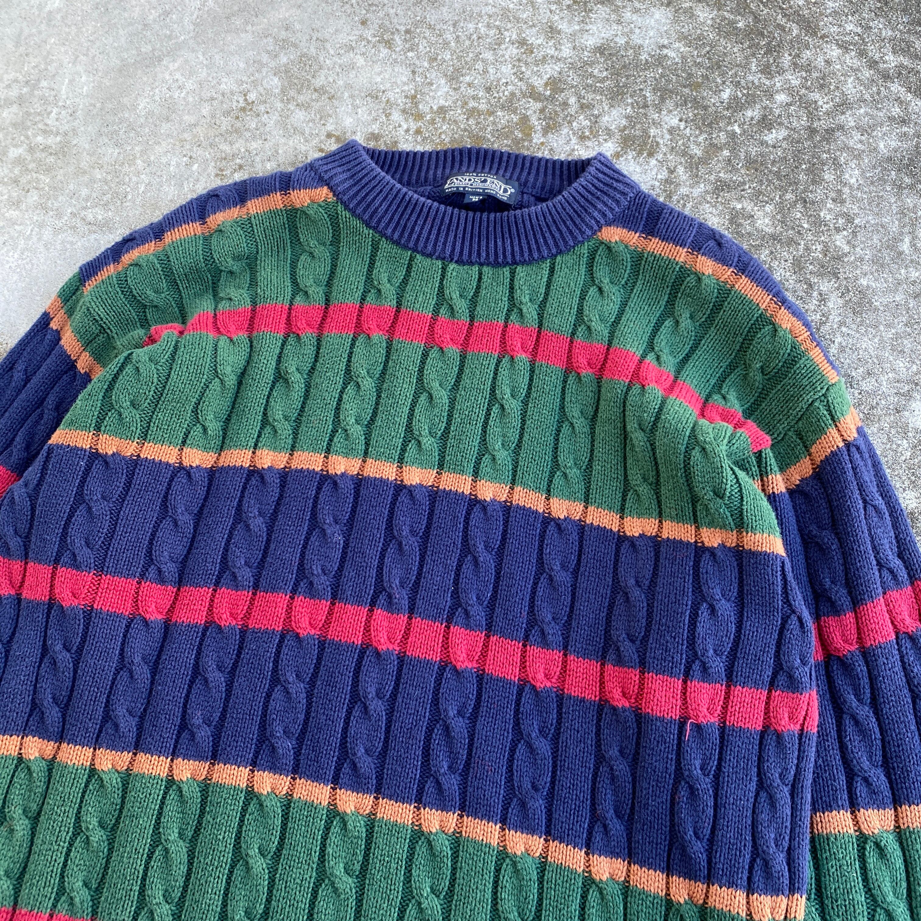 90年代頃のランズエンドマルチボーダーケーブルニットセーターになります。