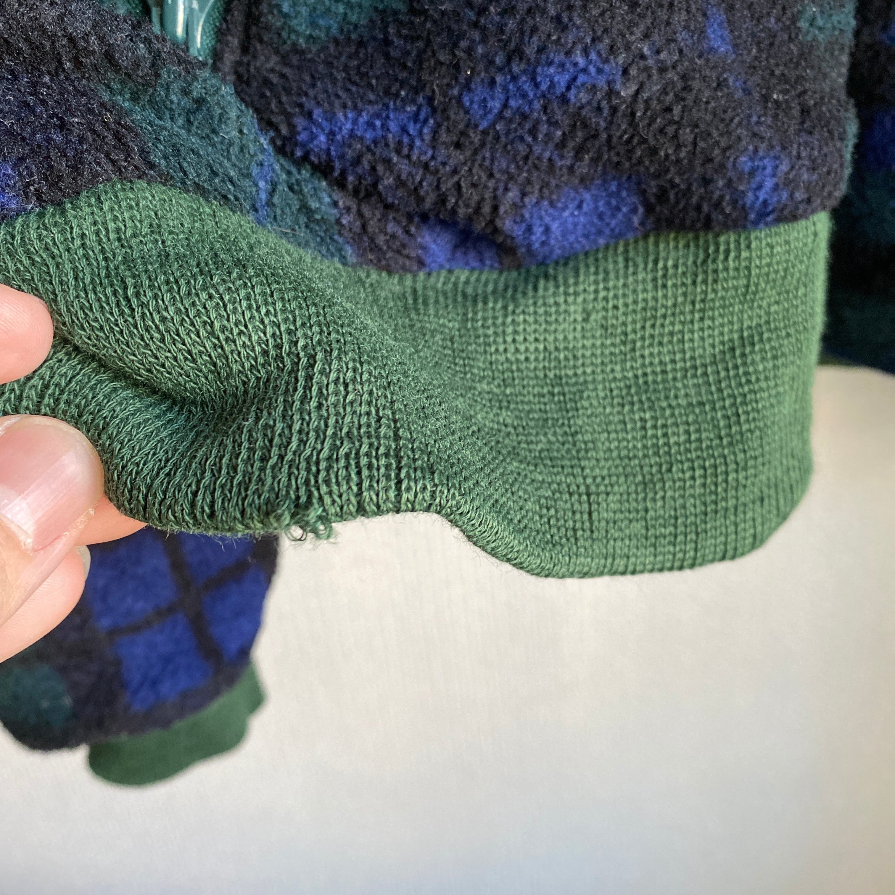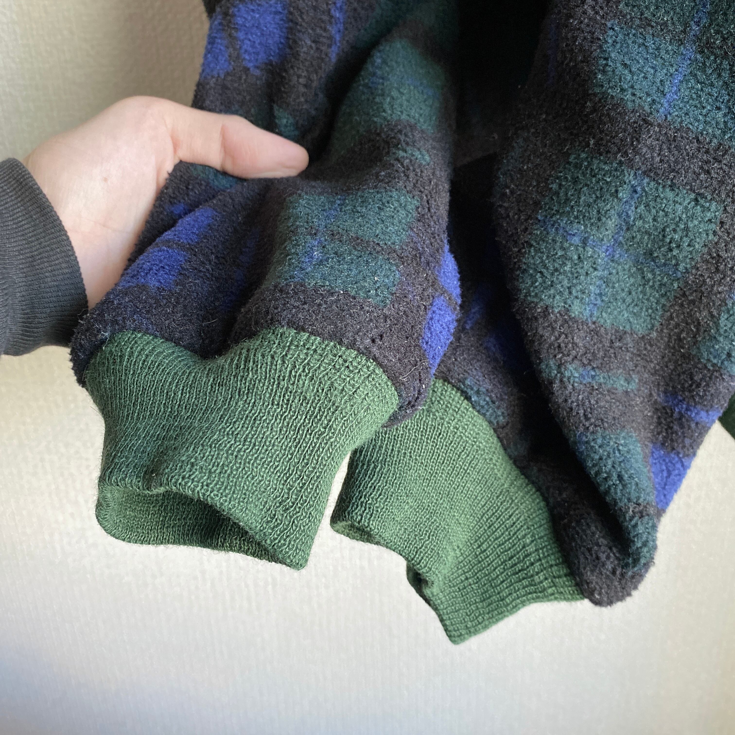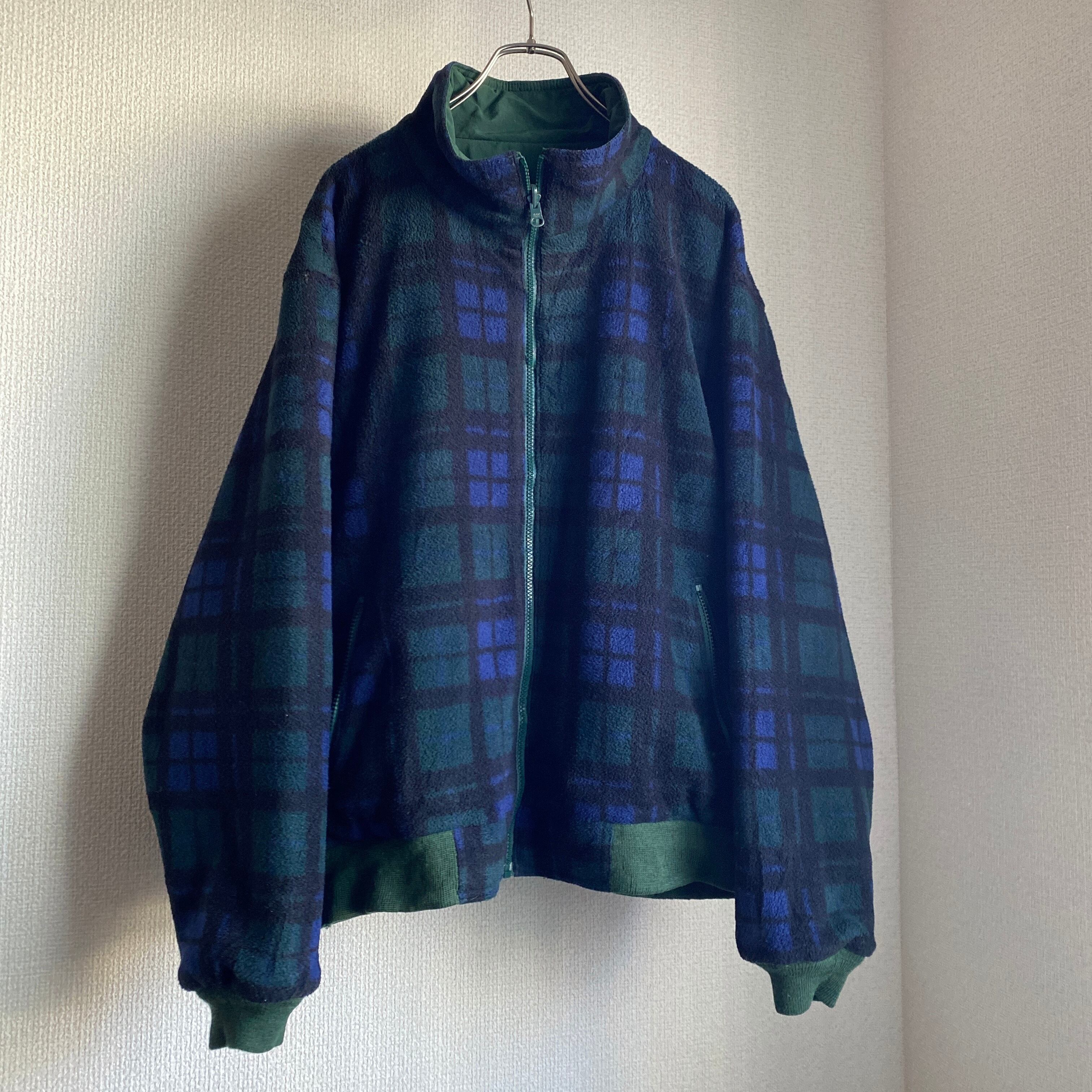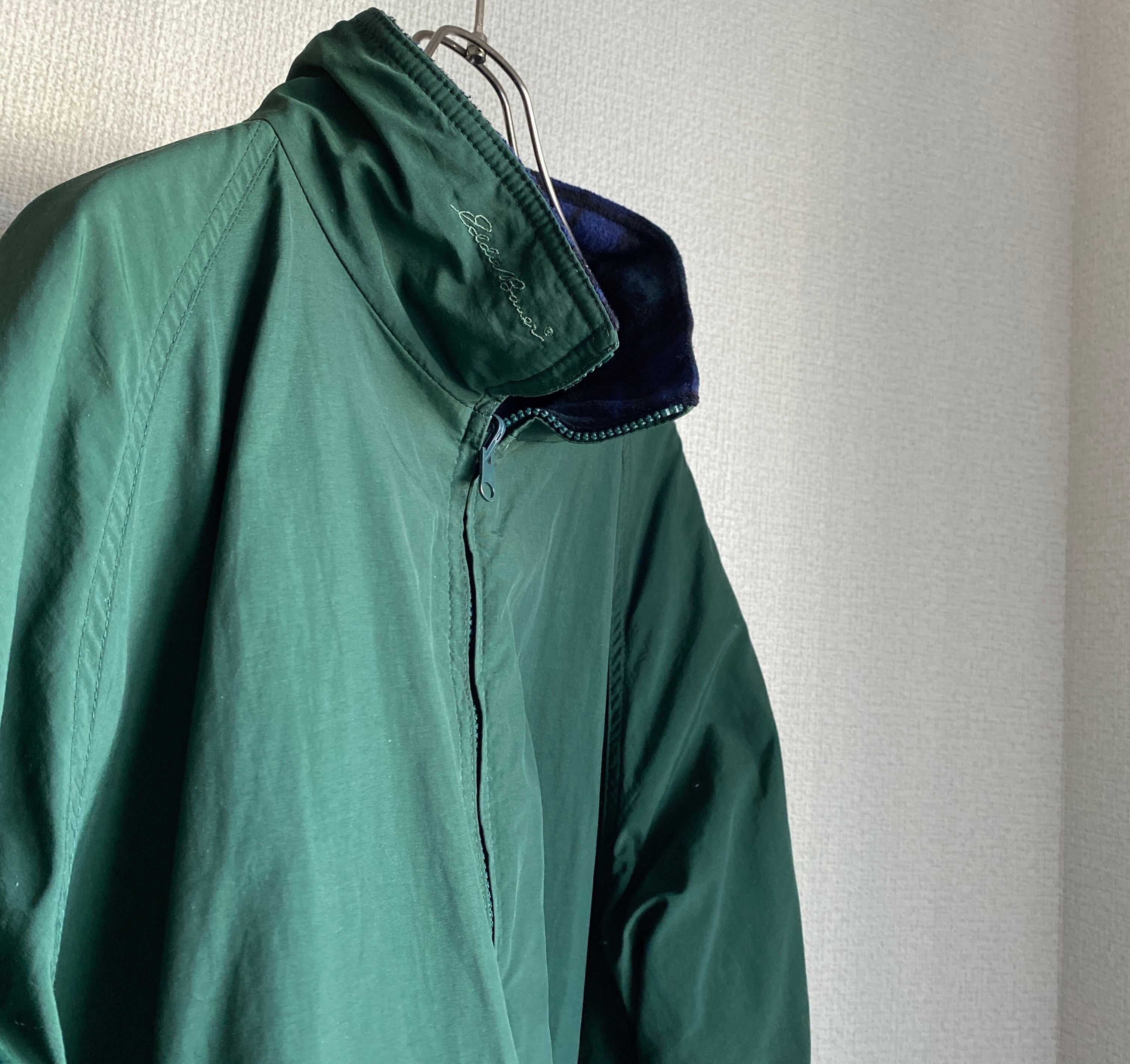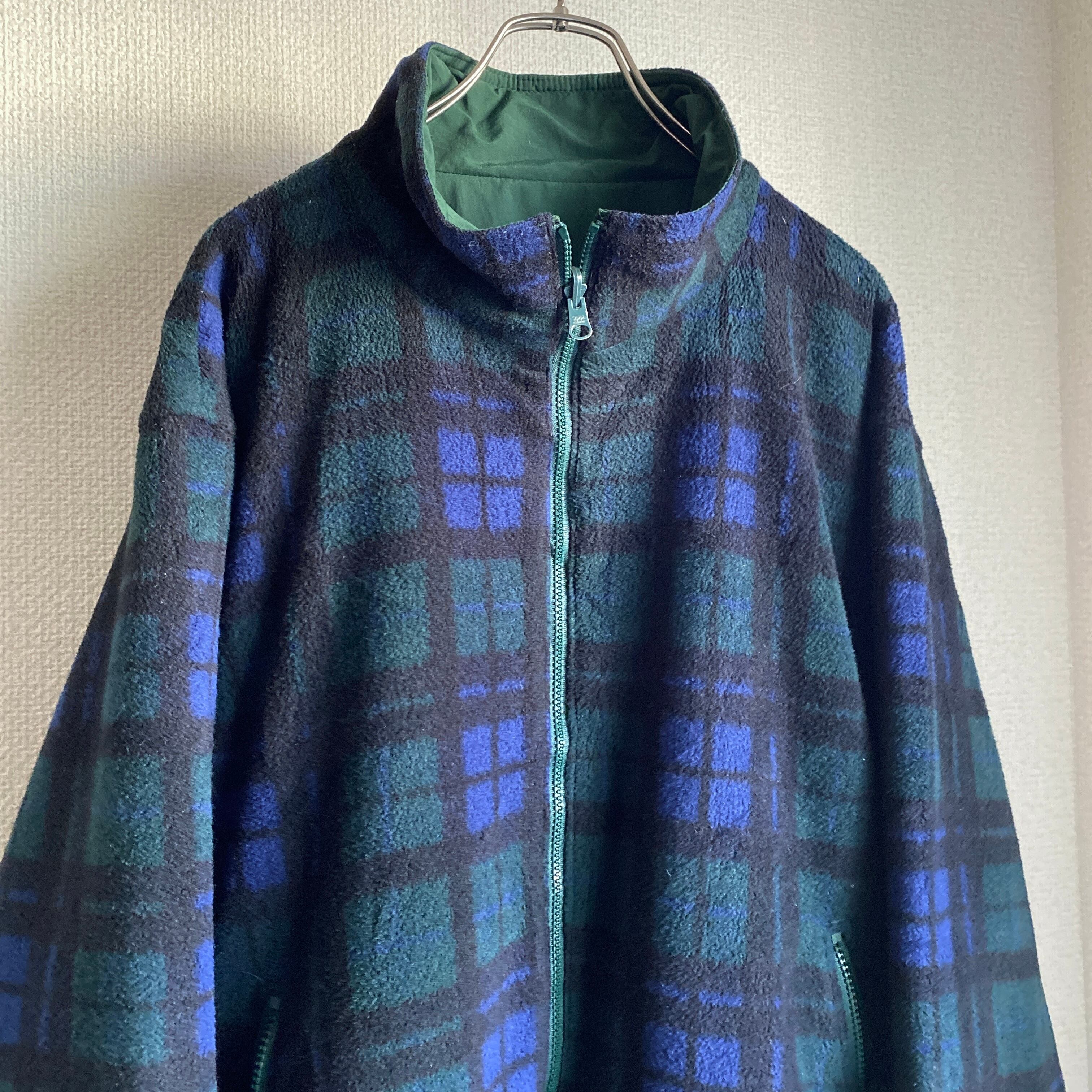 表は光沢感の少ないパリッとしたグリーンカラーのナイロン素材に、裏はブラックウォッチ柄のフリースのリバーシブル仕様と、両A面の2度おいしい一着。