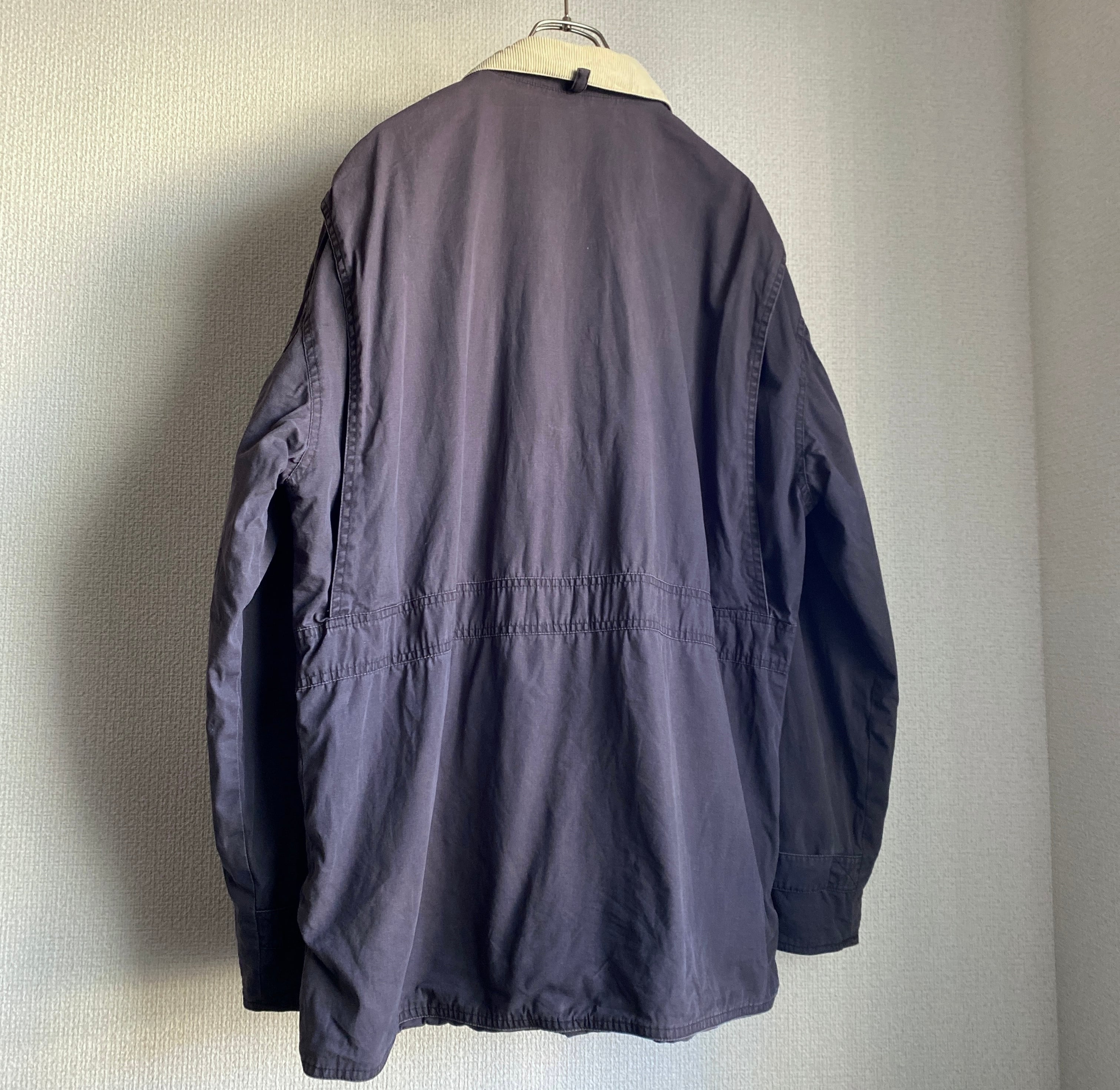 ハリ感のあるコットンポプリン生地を使用し、襟、袖裏にコーデュロイの切り替えを入れたデザインが無骨な雰囲気で非常に格好良い一着。