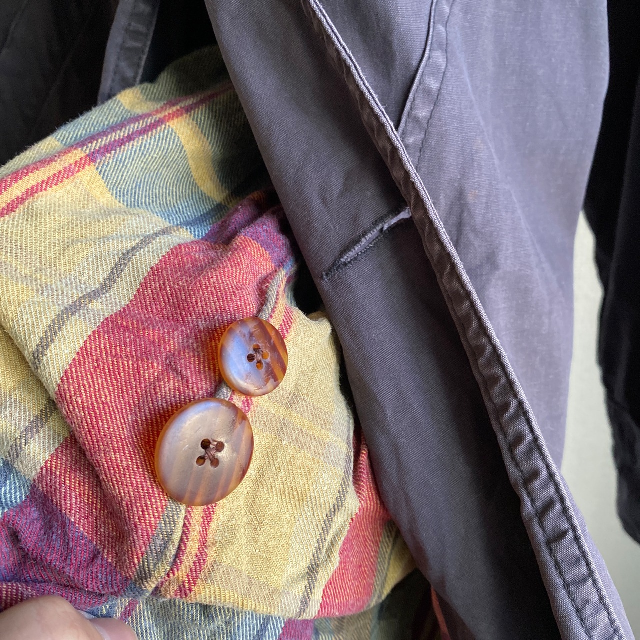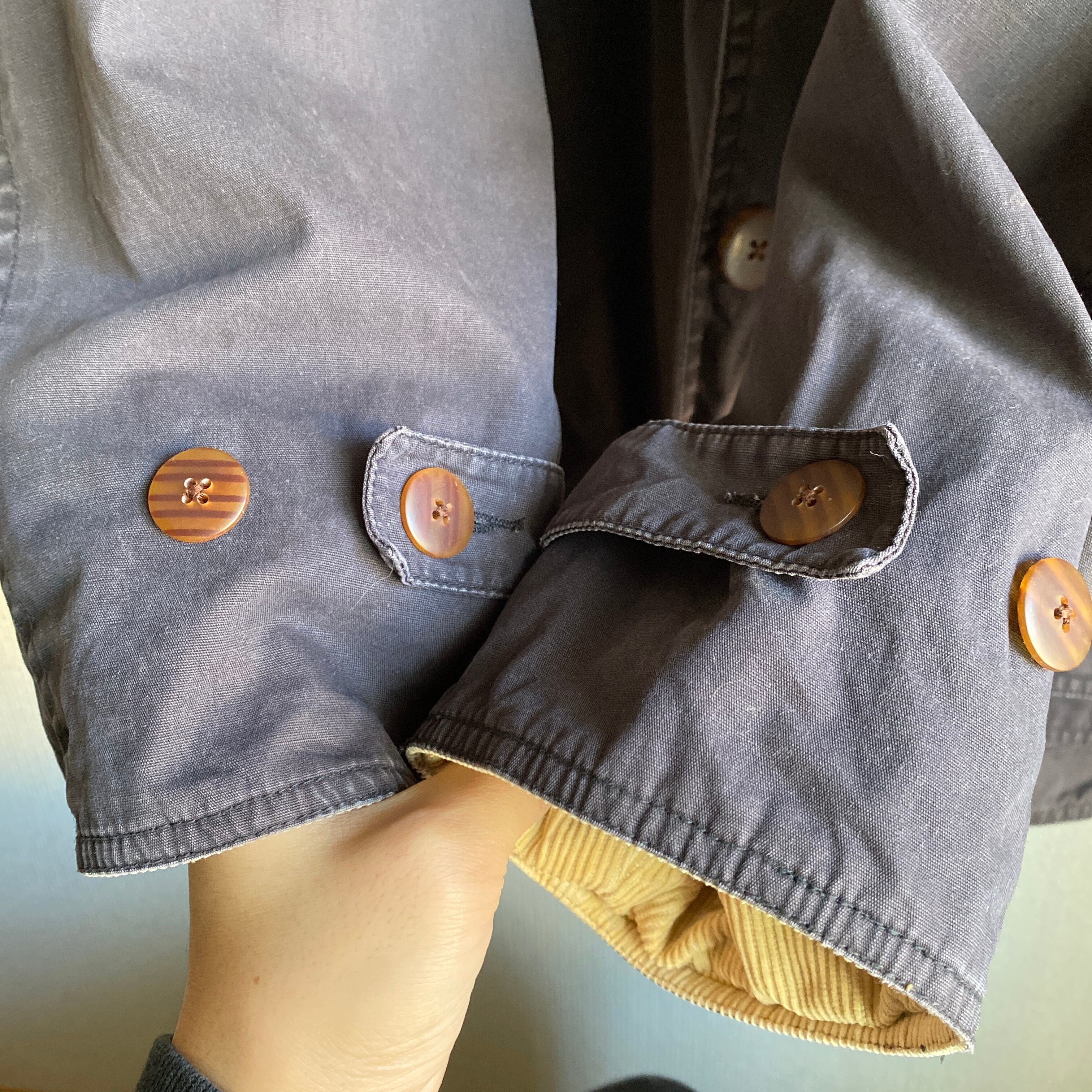 褪せたチャコールカラーのボディに、サンドベージュカラーのコーデュロイ切り替えのコントラストがめちゃくちゃ渋いです。