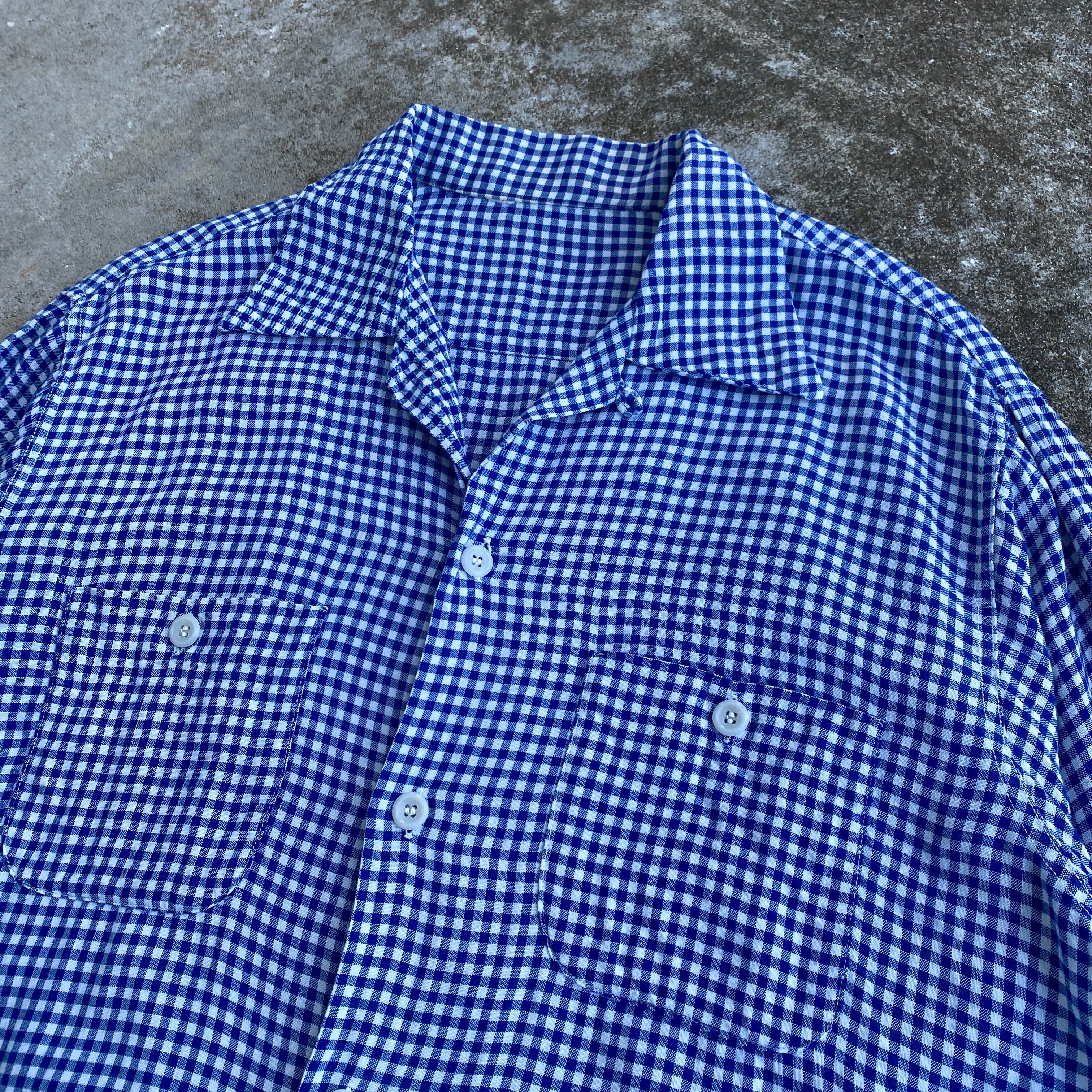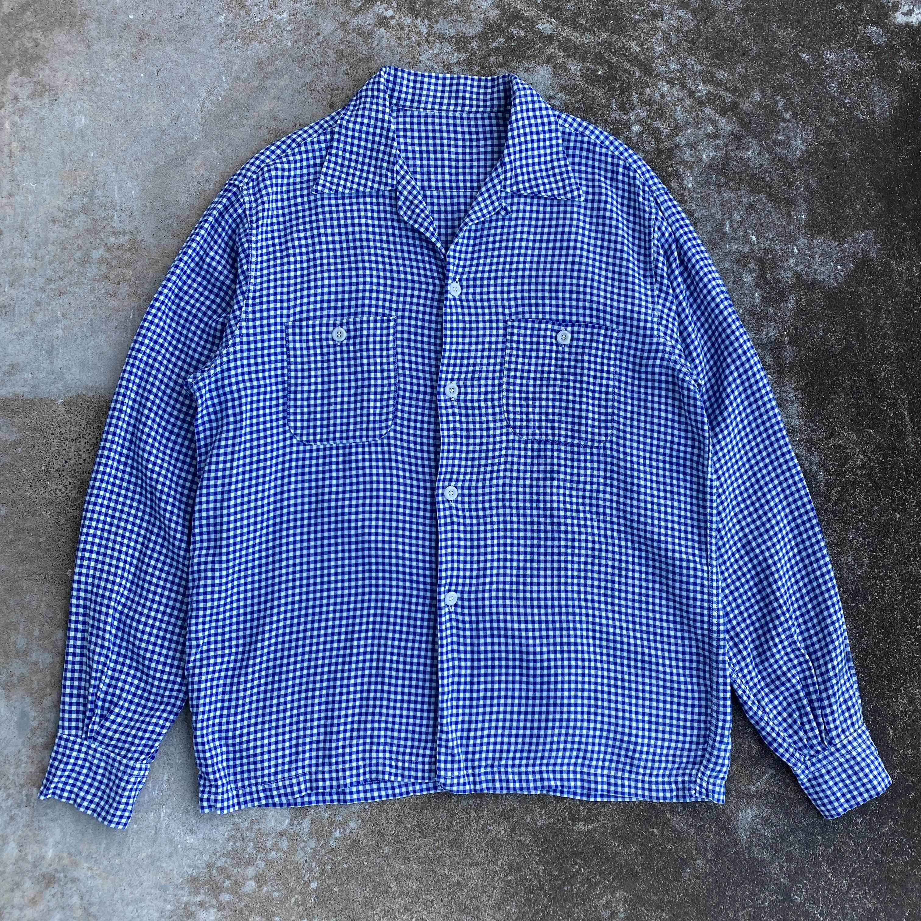 50s gingham check rayon open collar shirt