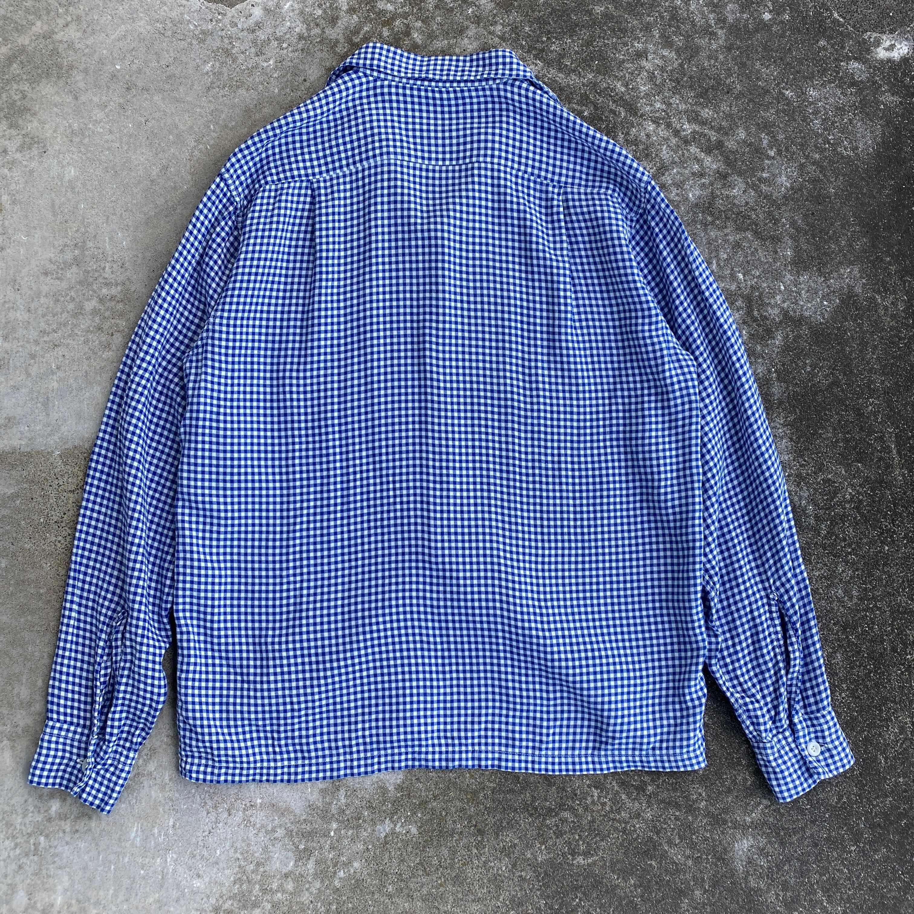 爽やかなブルーのギンガムチェック(画像8が近いです)に、落ち感のあるレーヨン生地が非常に格好良い一着。