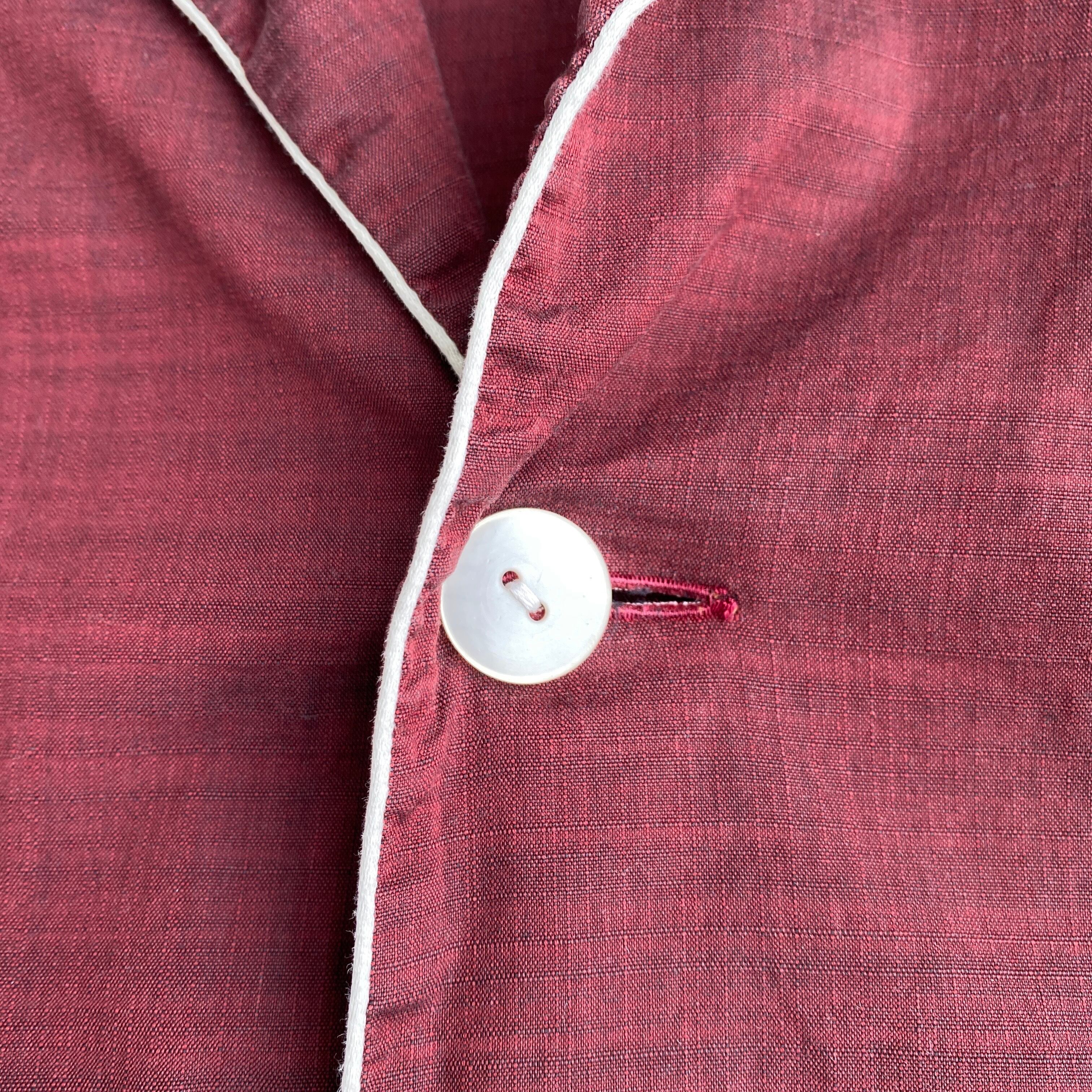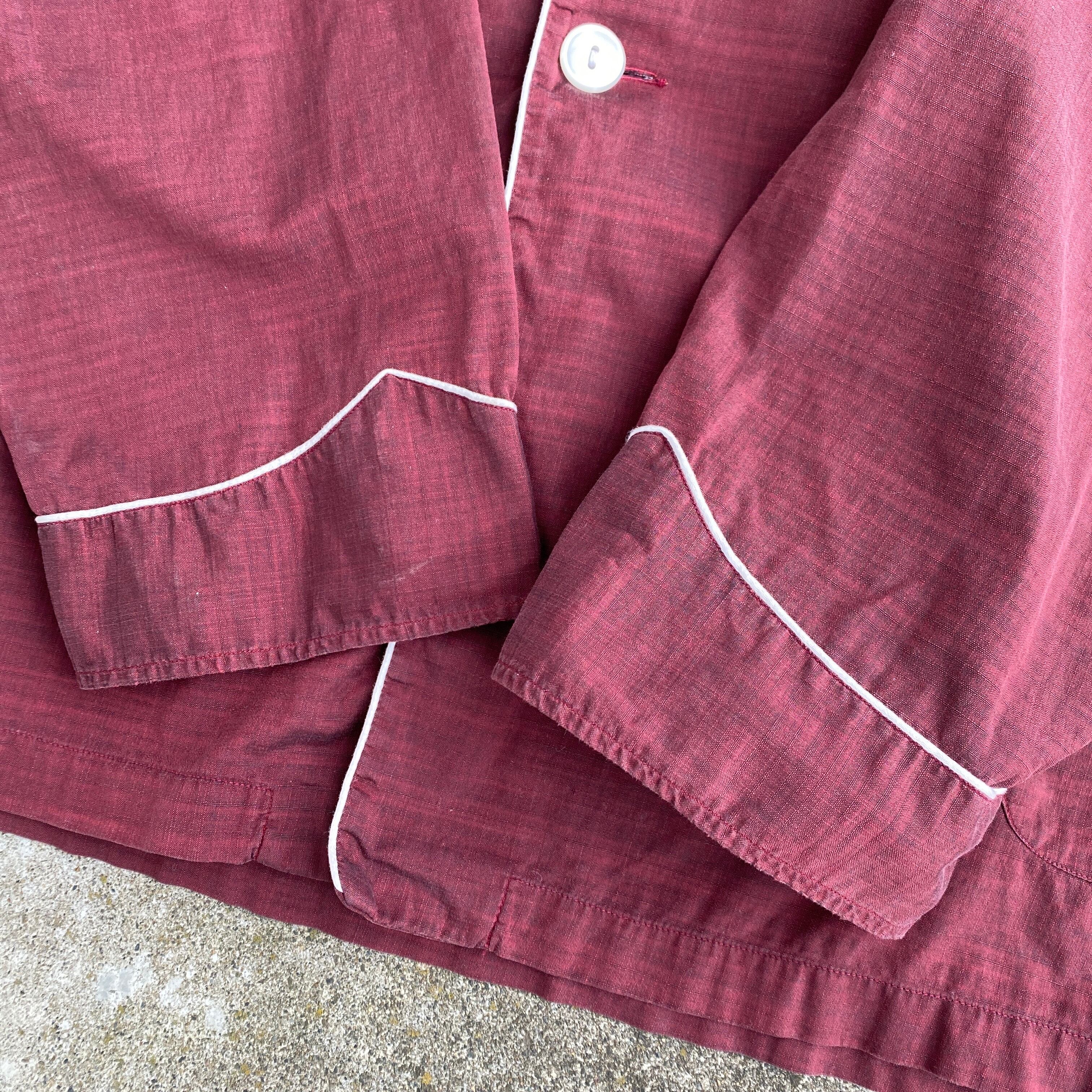 経年で目の詰まったコットン生地に、渋いバーガンディレッドの色目、ユーロものでは珍しいカスリ柄が非常に格好良い一着。