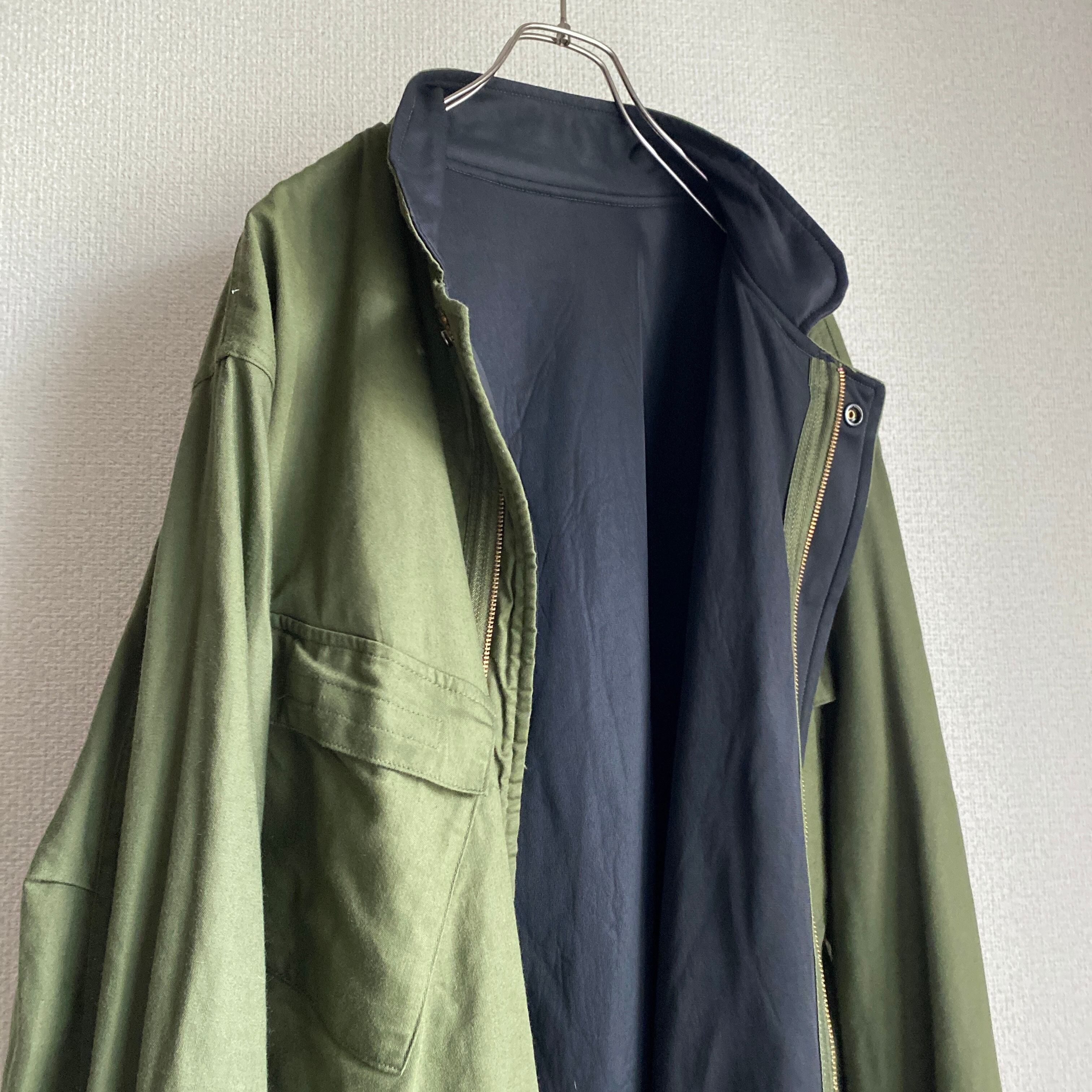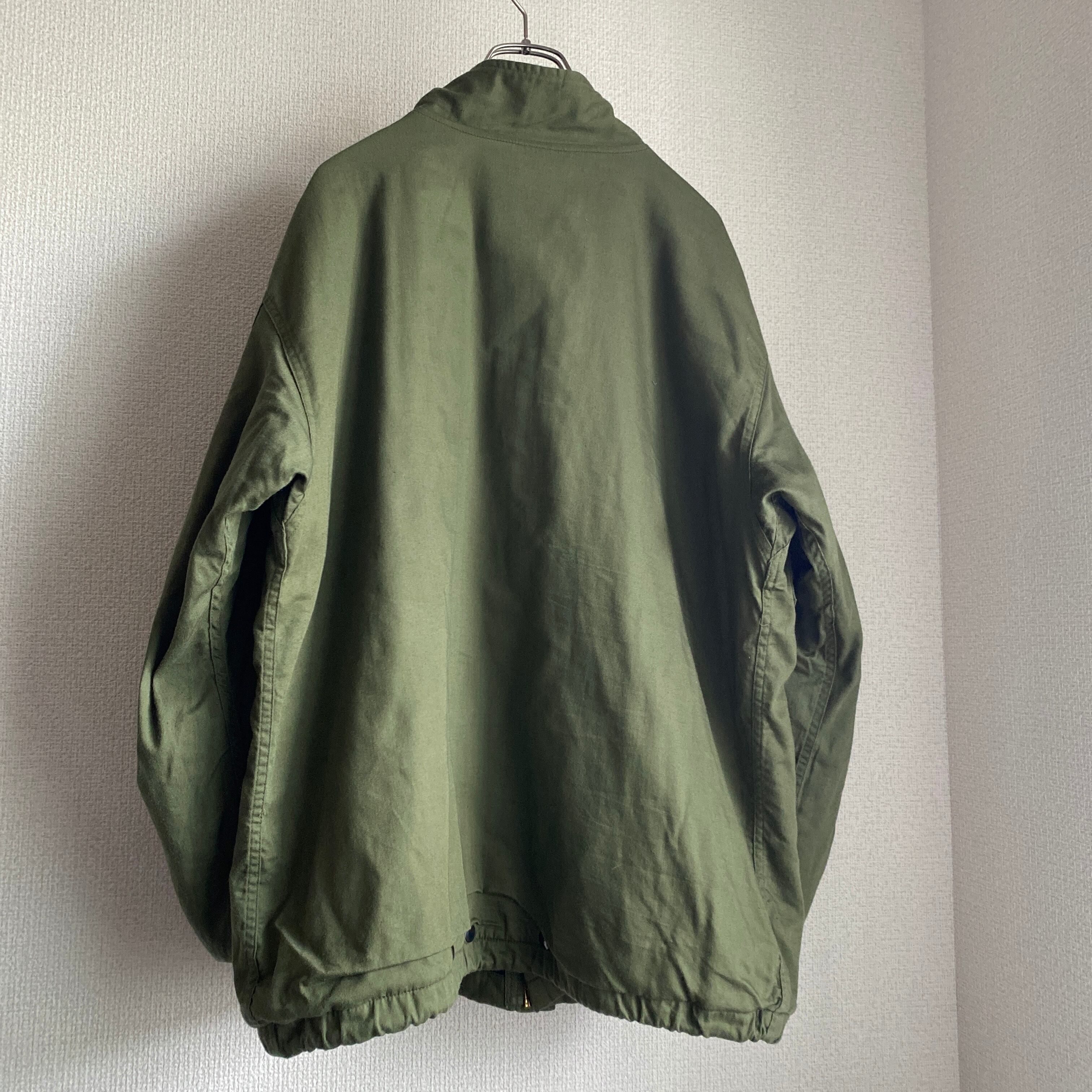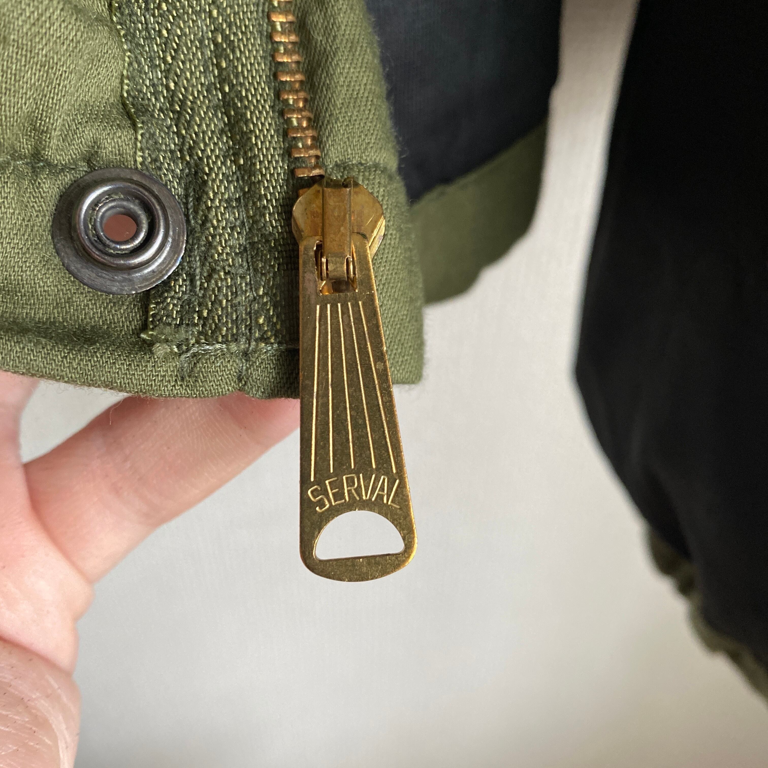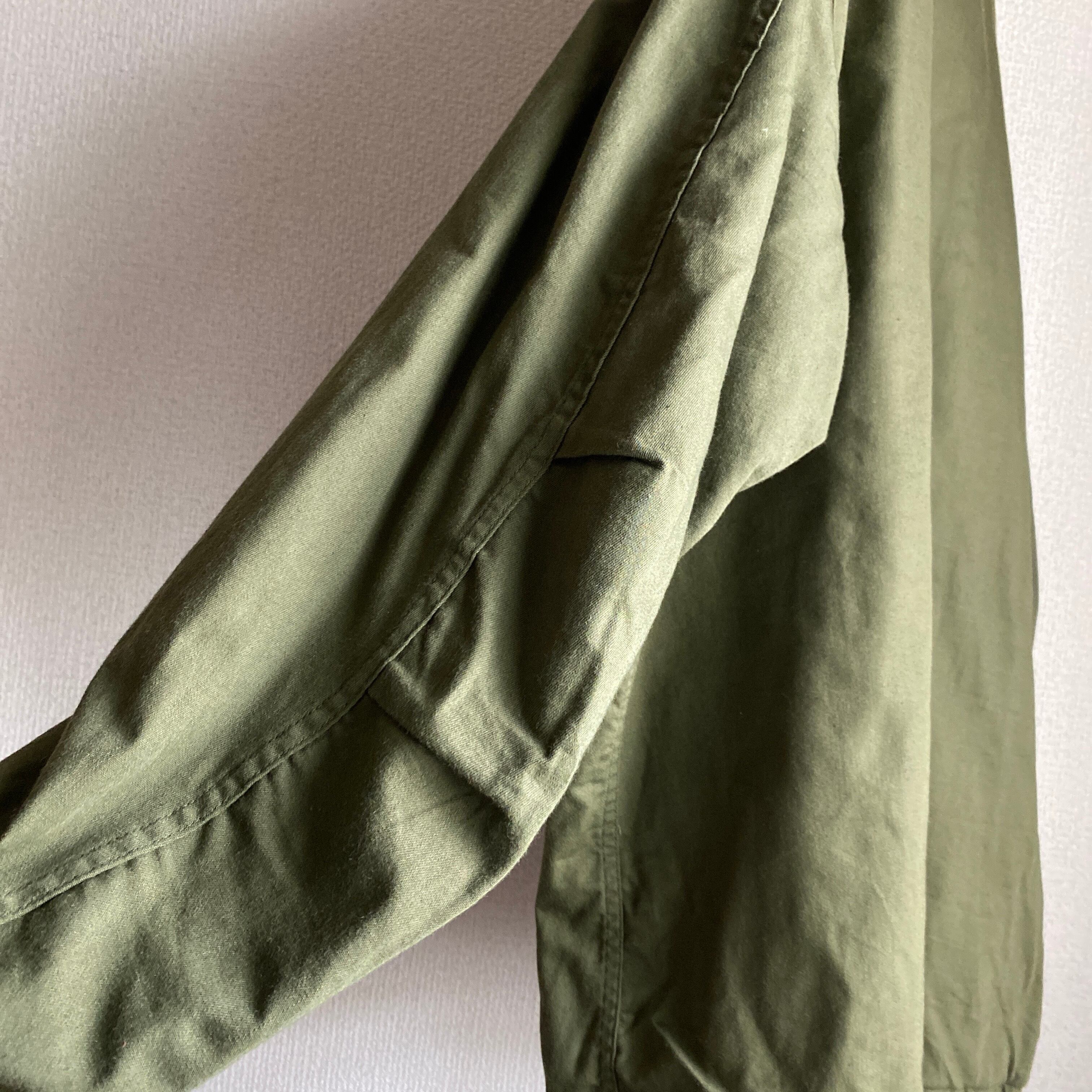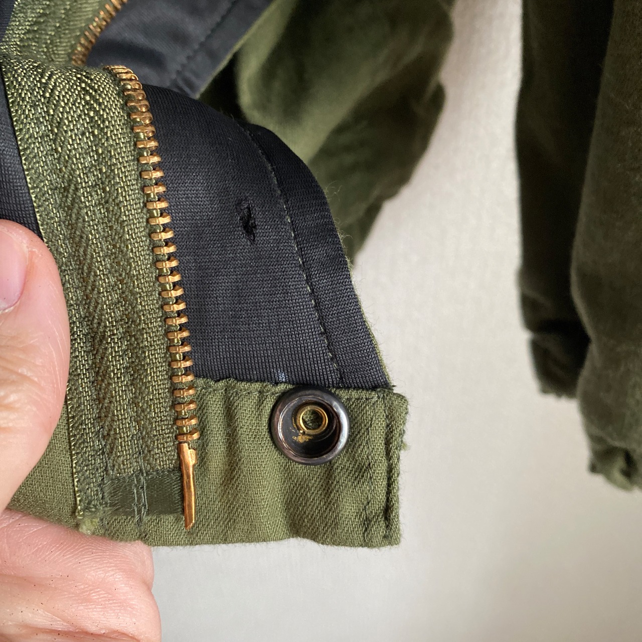 対化学兵器用として、70年代を中心に製造されていた防護服ですが、ゆったりとした丸みのあるシルエット、立ち襟に斜めのポケット、ヴィンテージ感のあるSERVAL社製のブラスジッパーなど、全体のバランスから細部のディテールまでかなり格好良いです。
