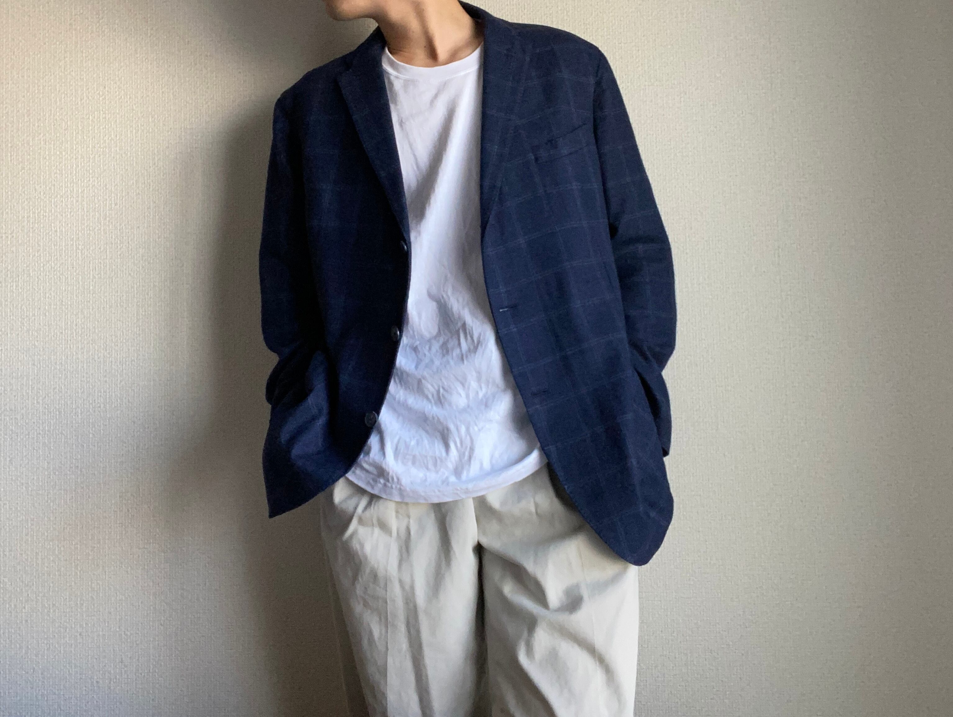 ロロピアーナ生地でハンドステッチが入るレベルの本格的なテーラードを着崩すには、これぐらいコテコテに寄せ切るぐらいが良いバランスだと思います。