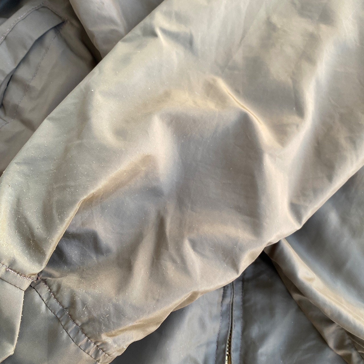 状態/やや着用感、若干の色むら、スレ、フロントに薄い汚れなどがありますが、大きく目立つダメージや汚れなどないused(袖ボタン一箇所交換あり)