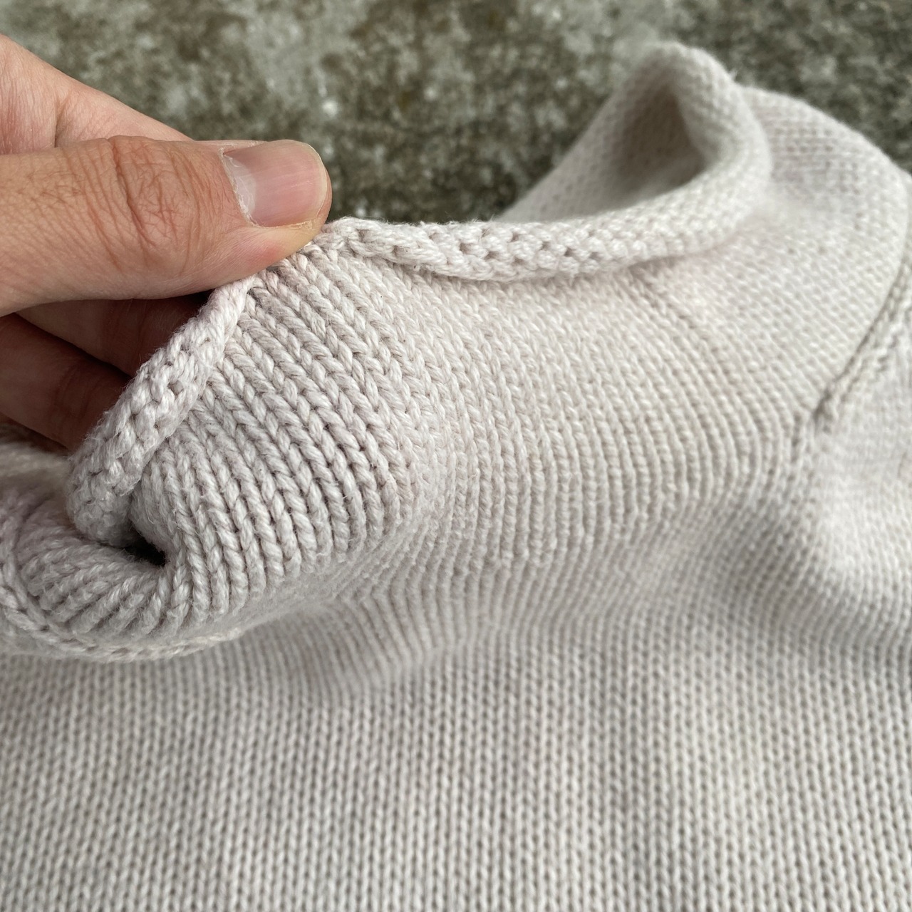 肉厚で柔らかなコットンニットに、上品なエクリュカラー、ゆったりとしたシルエットが非常に格好良い一着。