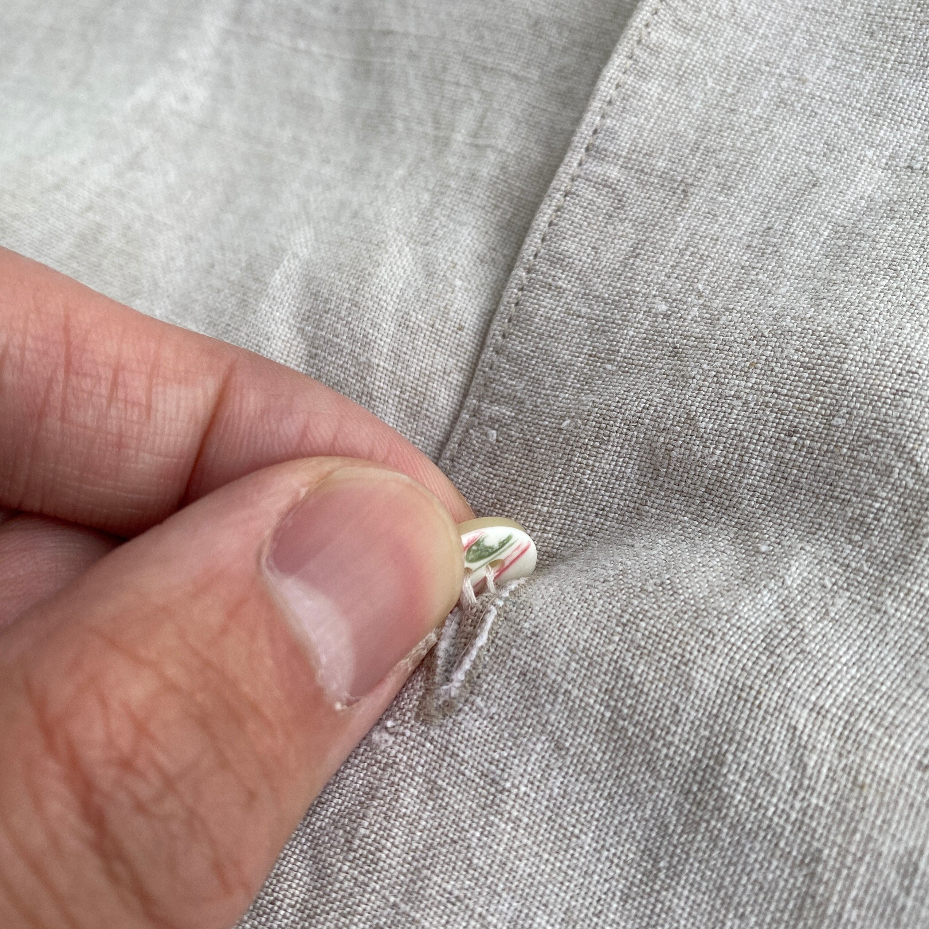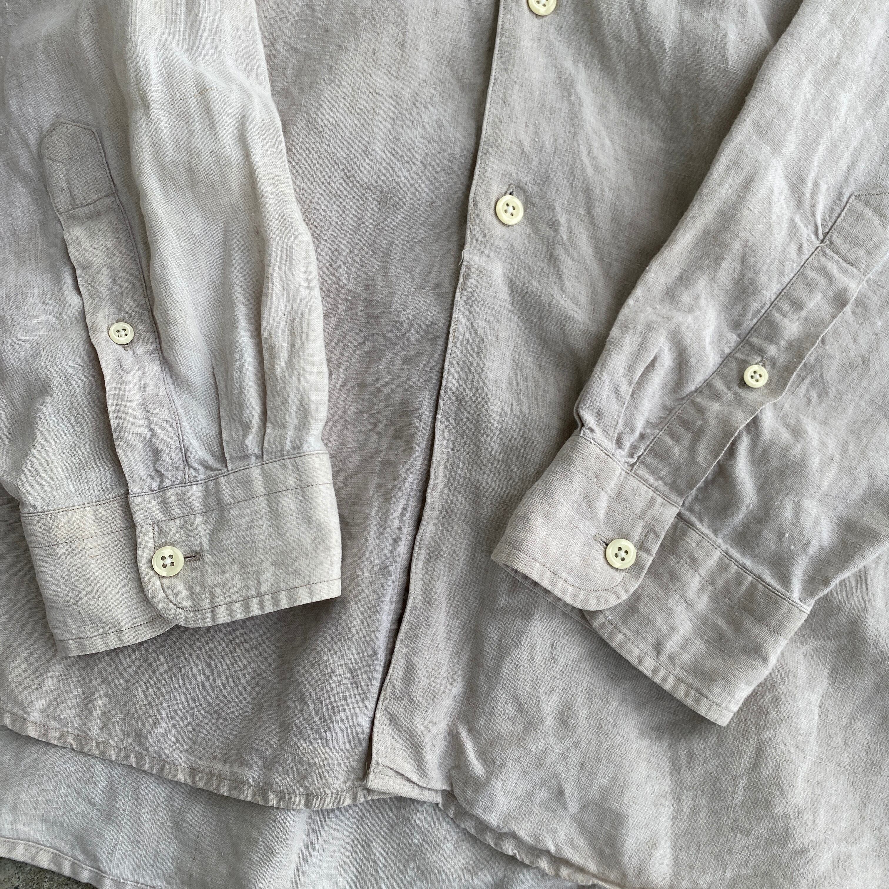 プルっとしたハリのある上質なリネン生地に、少しグレーみのあるナチュラルな色目、ゆったりとしたサイズ感が非常に雰囲気の良い一着。