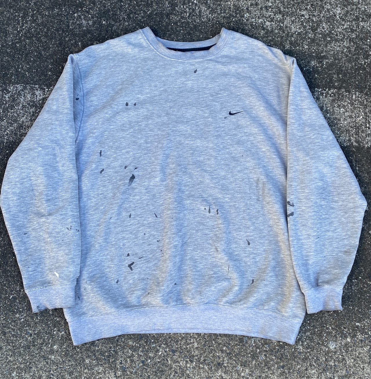 もう特に説明することのないナイキのスウッシュロゴスウェットですが、このリアルワーカーなペンキ&オイル&ダメージ、そしてバカデカサイズがめちゃくちゃ気分な一着。
