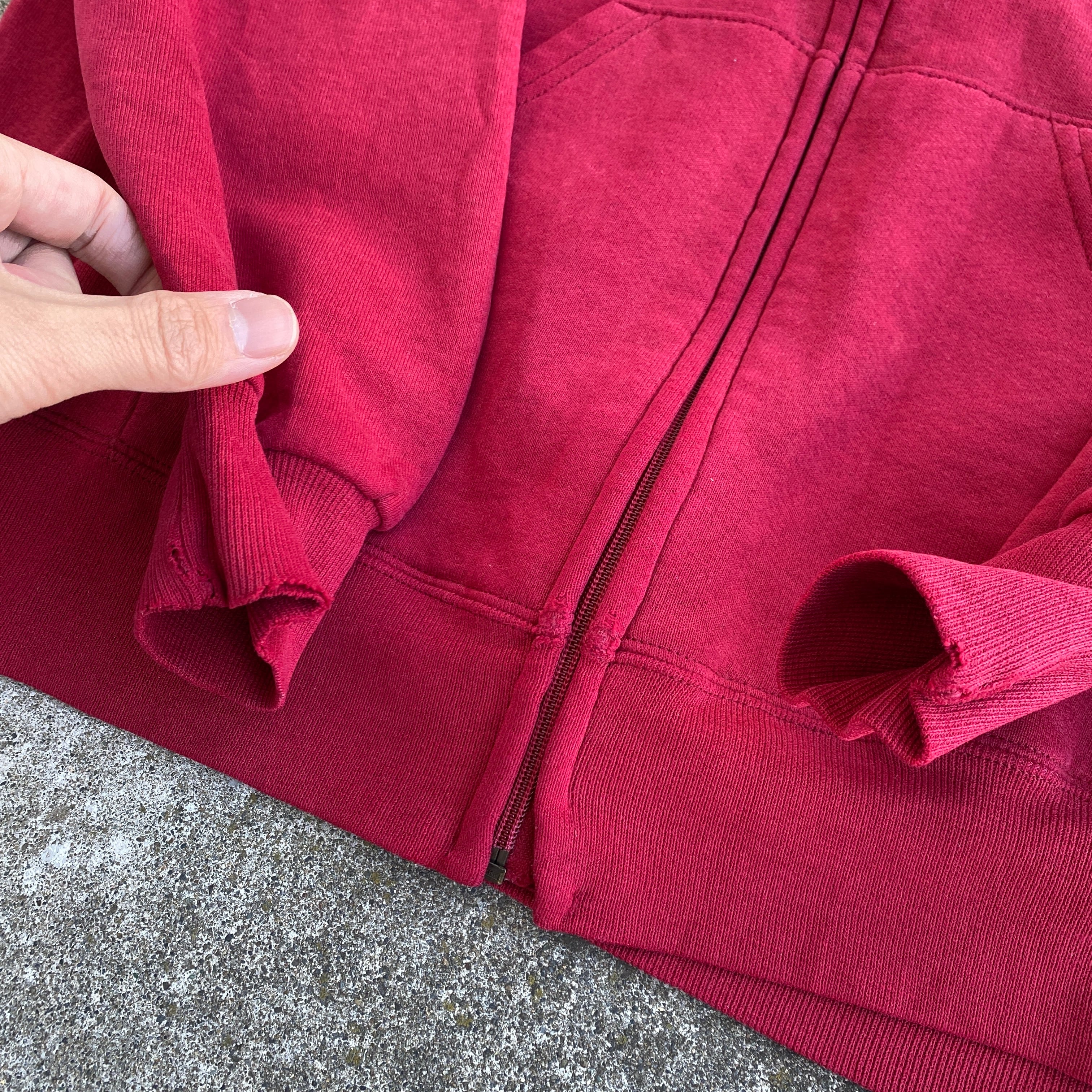 ポリ混ながら肉厚な生地感に、経年でフェードした深いレッドの色目が素晴らしいです。