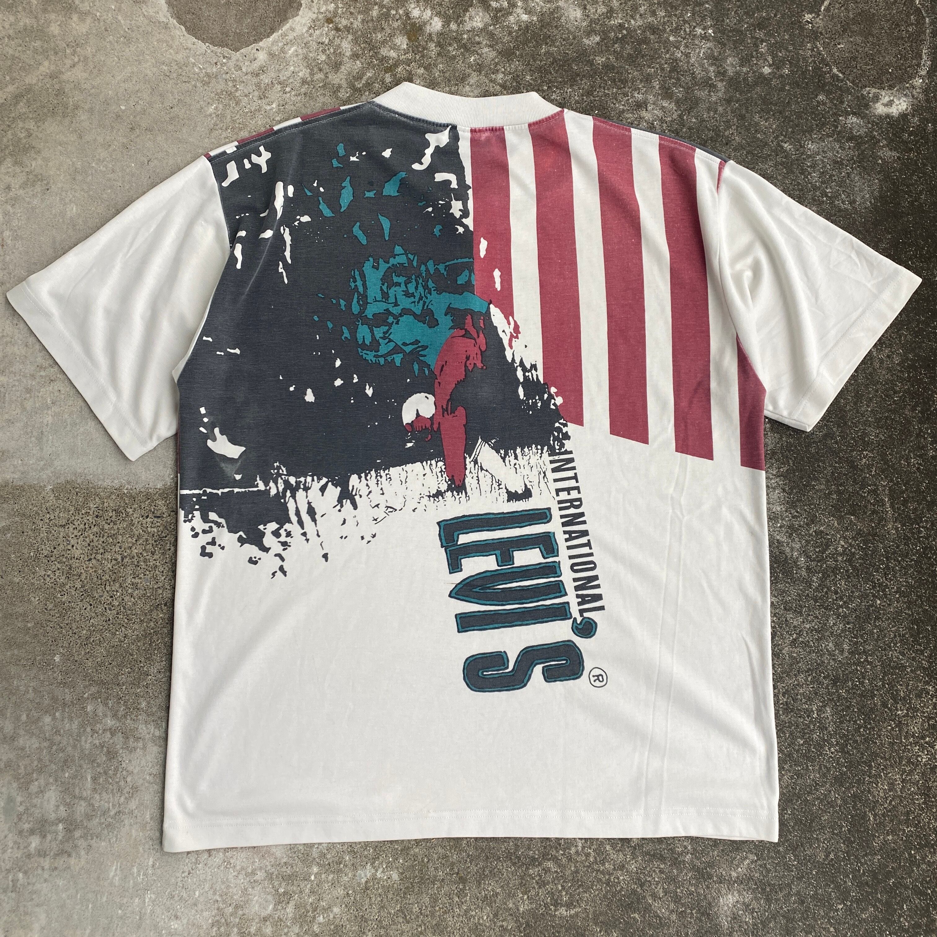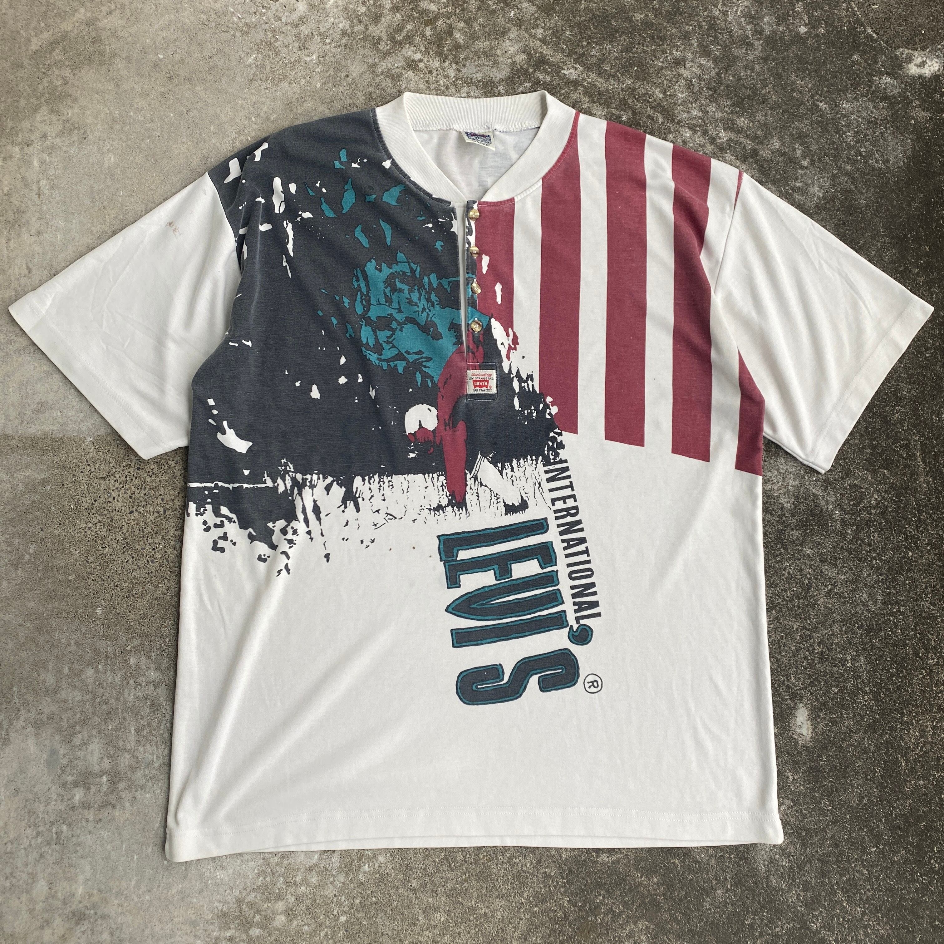 90年代ごろの、アメリカ製リーバイスマルチプリントヘンリーネックTシャツになります。