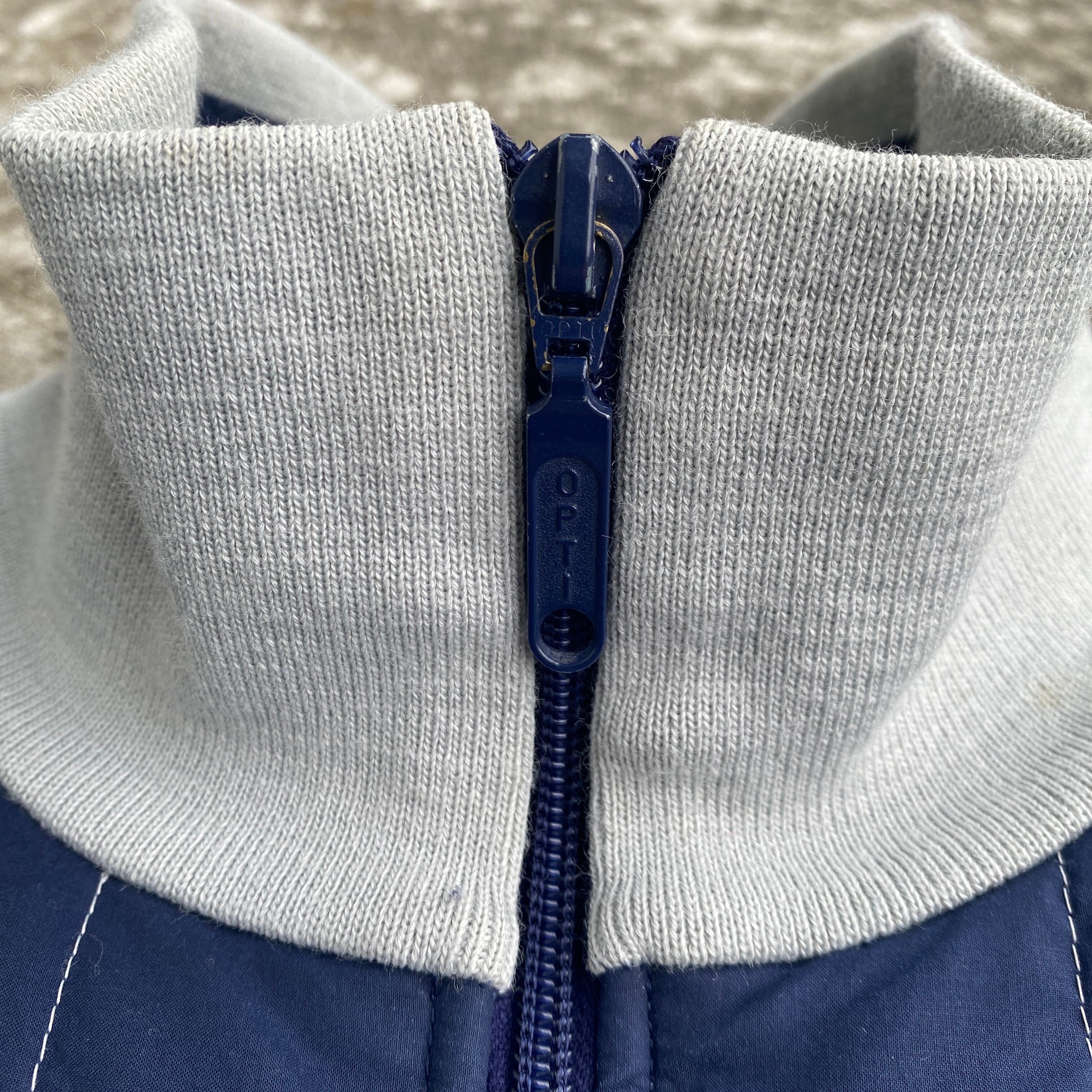 近年人気の高い西ドイツ製のアディダスジャージですが、こちらは平織りコットンに薄い中綿が入った、キルティングのような仕様のボディが非常に珍しい一着。
