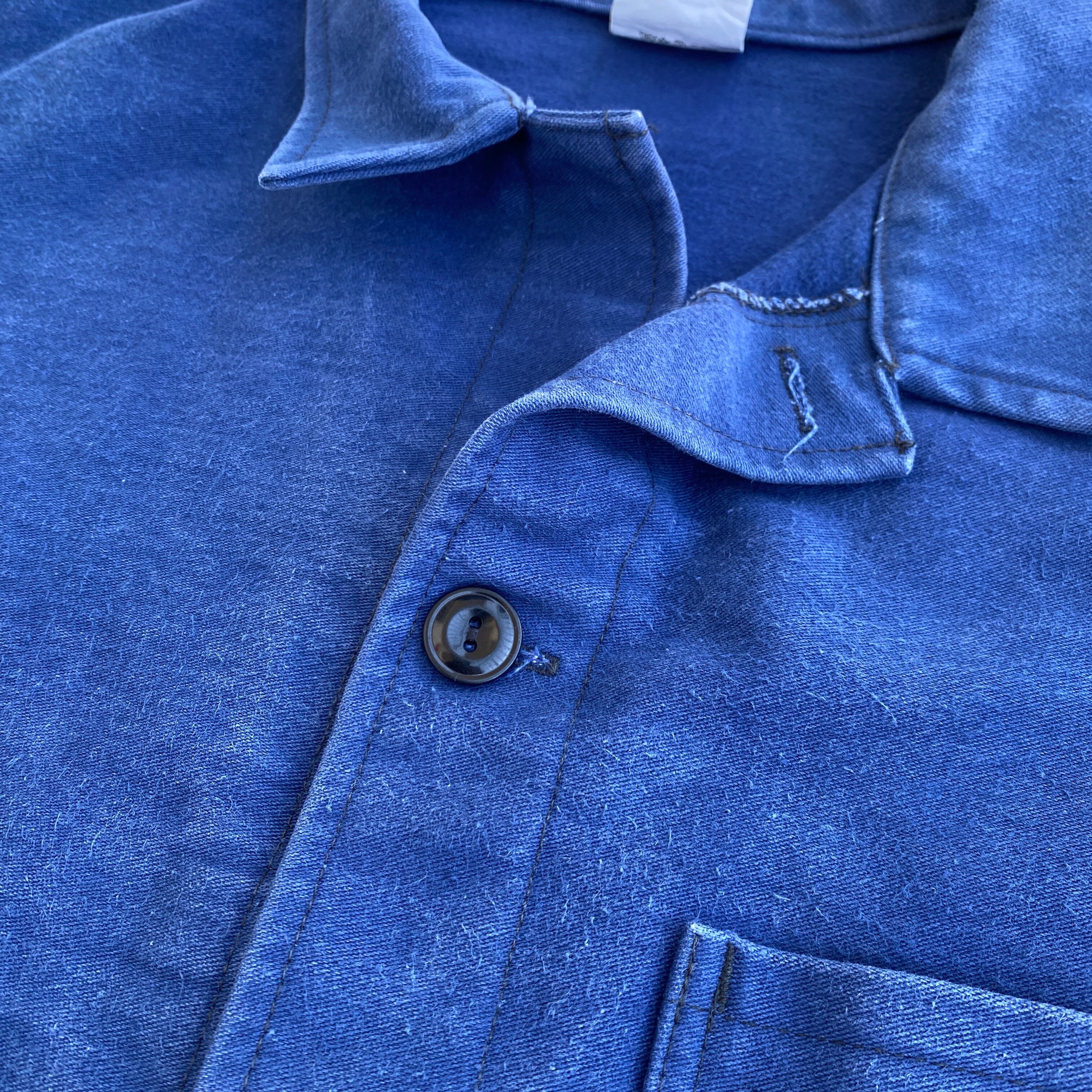 ゆったりと着られる良いサイズ感に、ギュッと目の詰まった重厚な生地感、ほんのり褪せたインクブルーの色目が非常に格好良い一着。