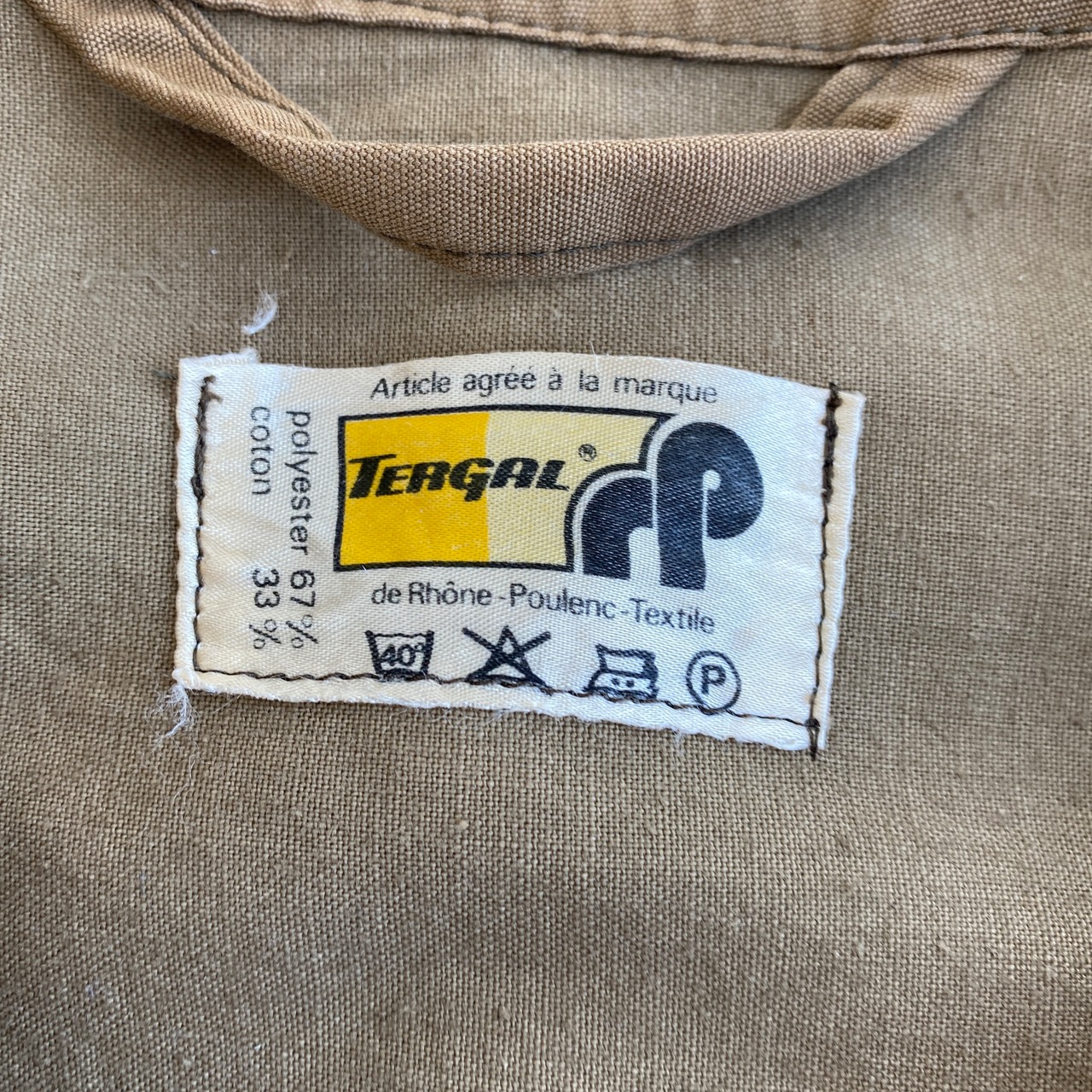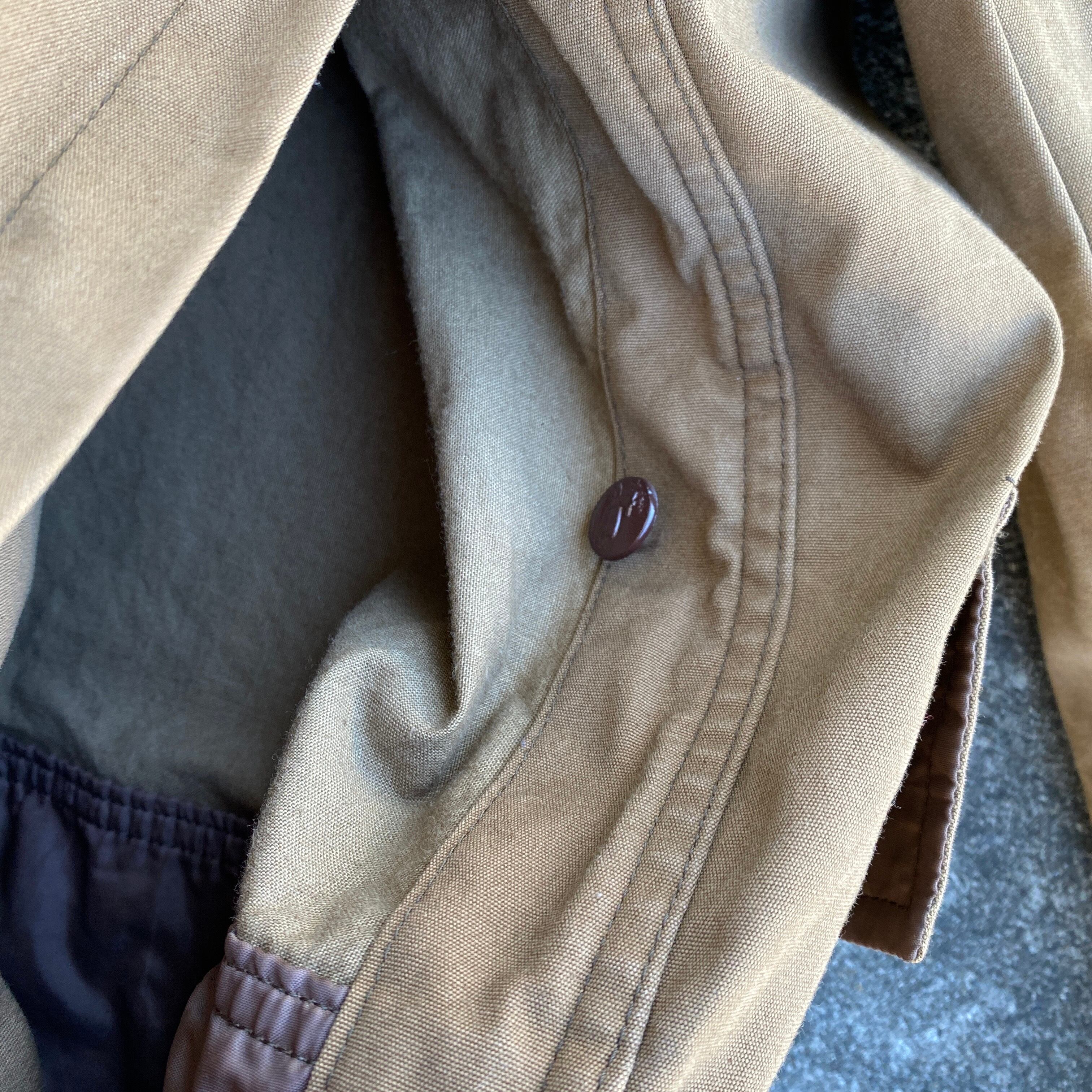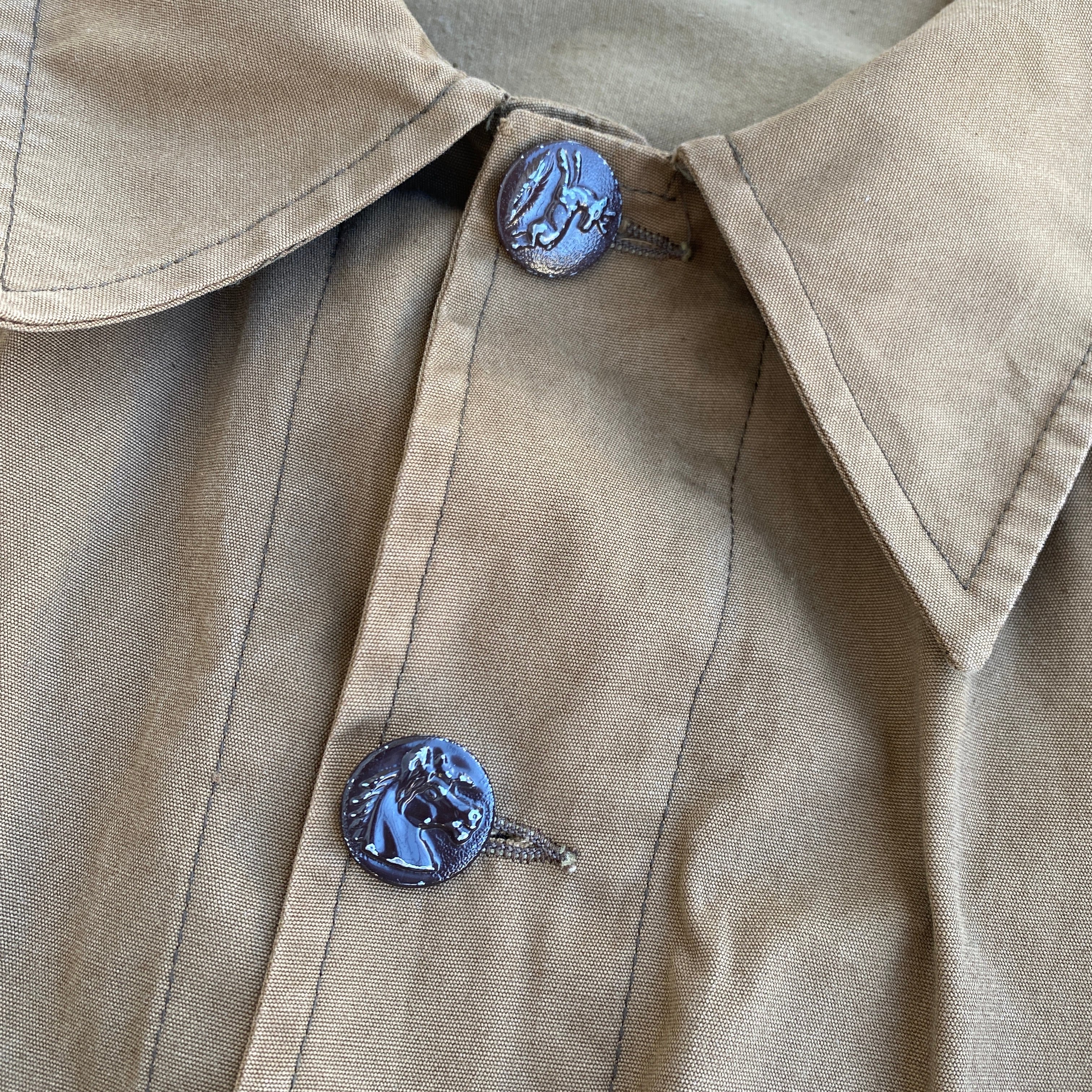 非常に人気の高いこの年代の動物ボタン付きハンティングジャケットですが、こちらは珍しいTERGAL社のポリコットン生地を使用し、ラグランスリーブで仕立てられた一着。