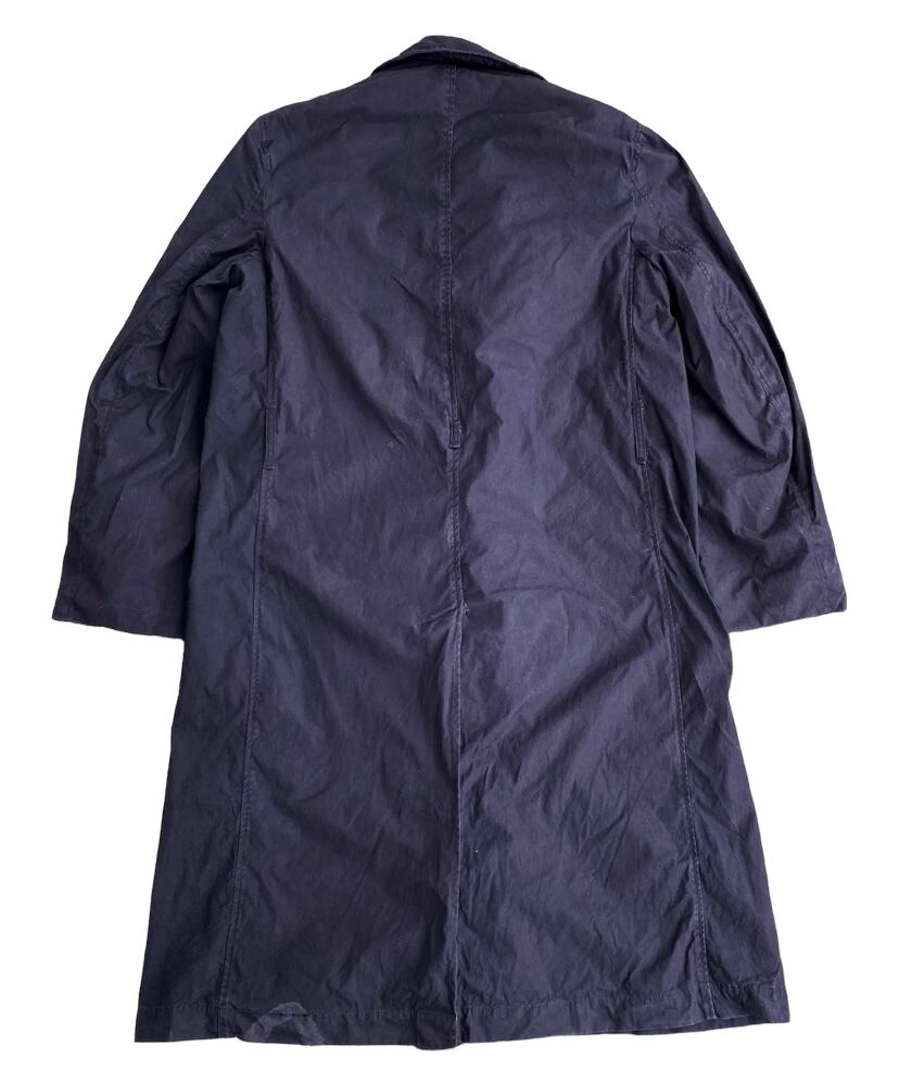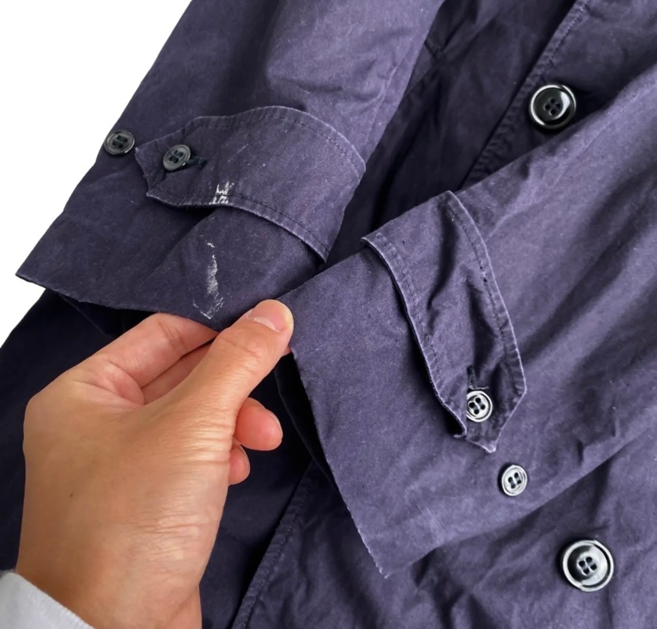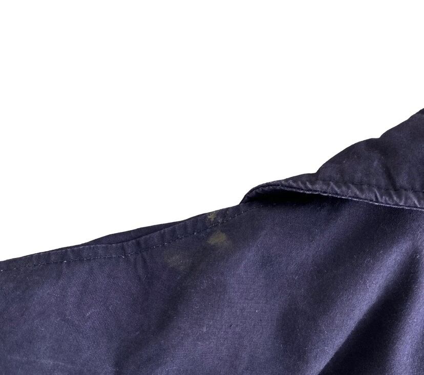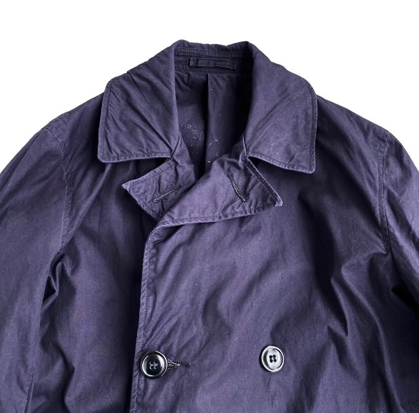 打ち込みの強いベンタイルのようなコットンポプリン素材、深い茄子紺の色目、エポレットのつかないミニマルなデザインが非常に格好良い一着。