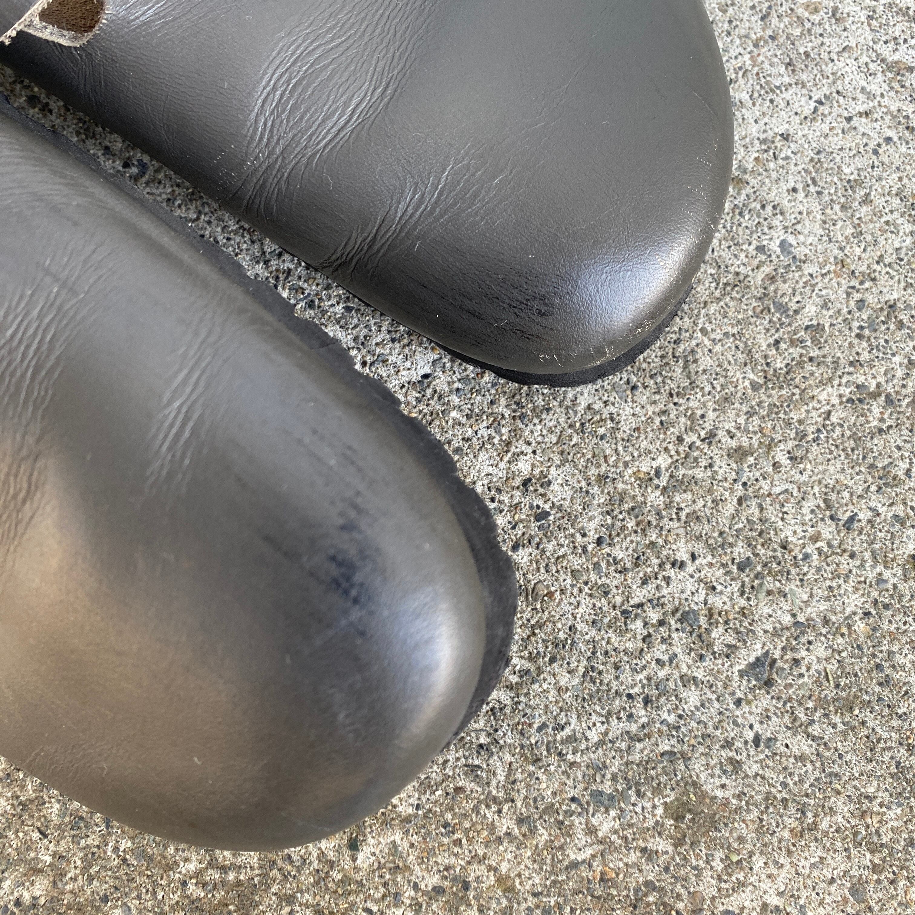 同ブランドでは定番の一足ですが、こちらは珍しいグレー系のスムースレザー。