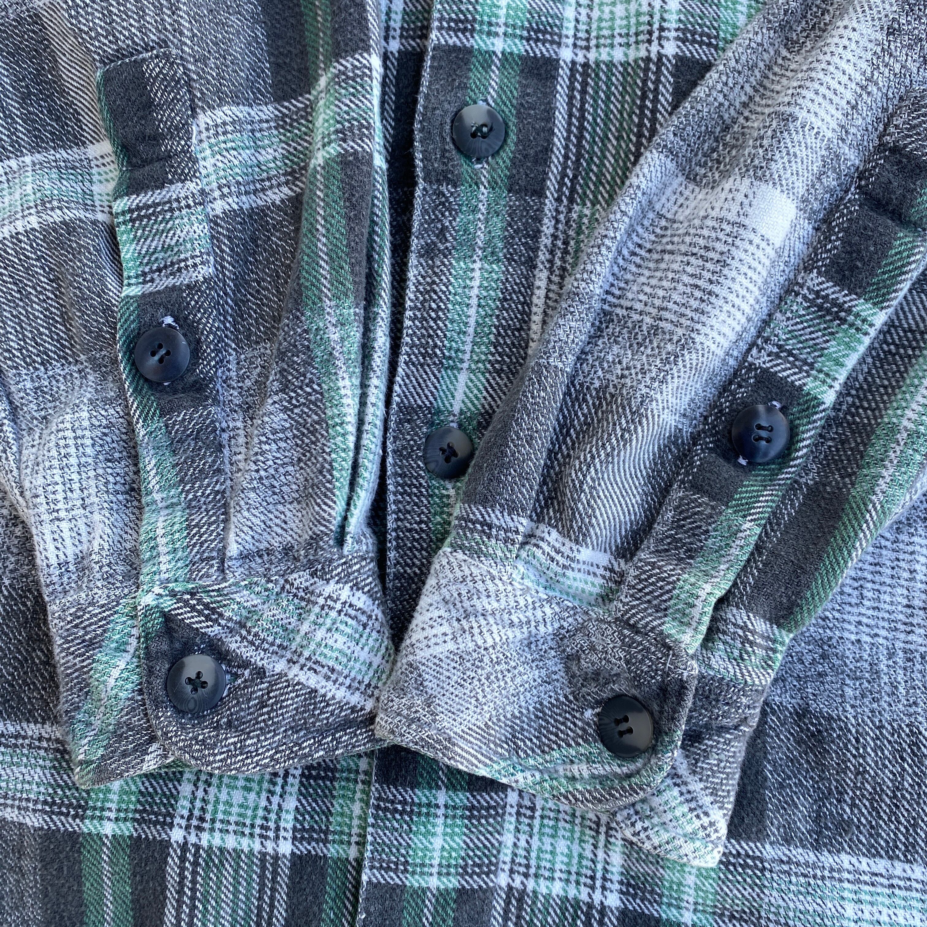肉厚でモチっとしたコットンネル素材に、ブラック、ホワイト、グリーンからなる絶妙な配色が非常に格好良い一着。
