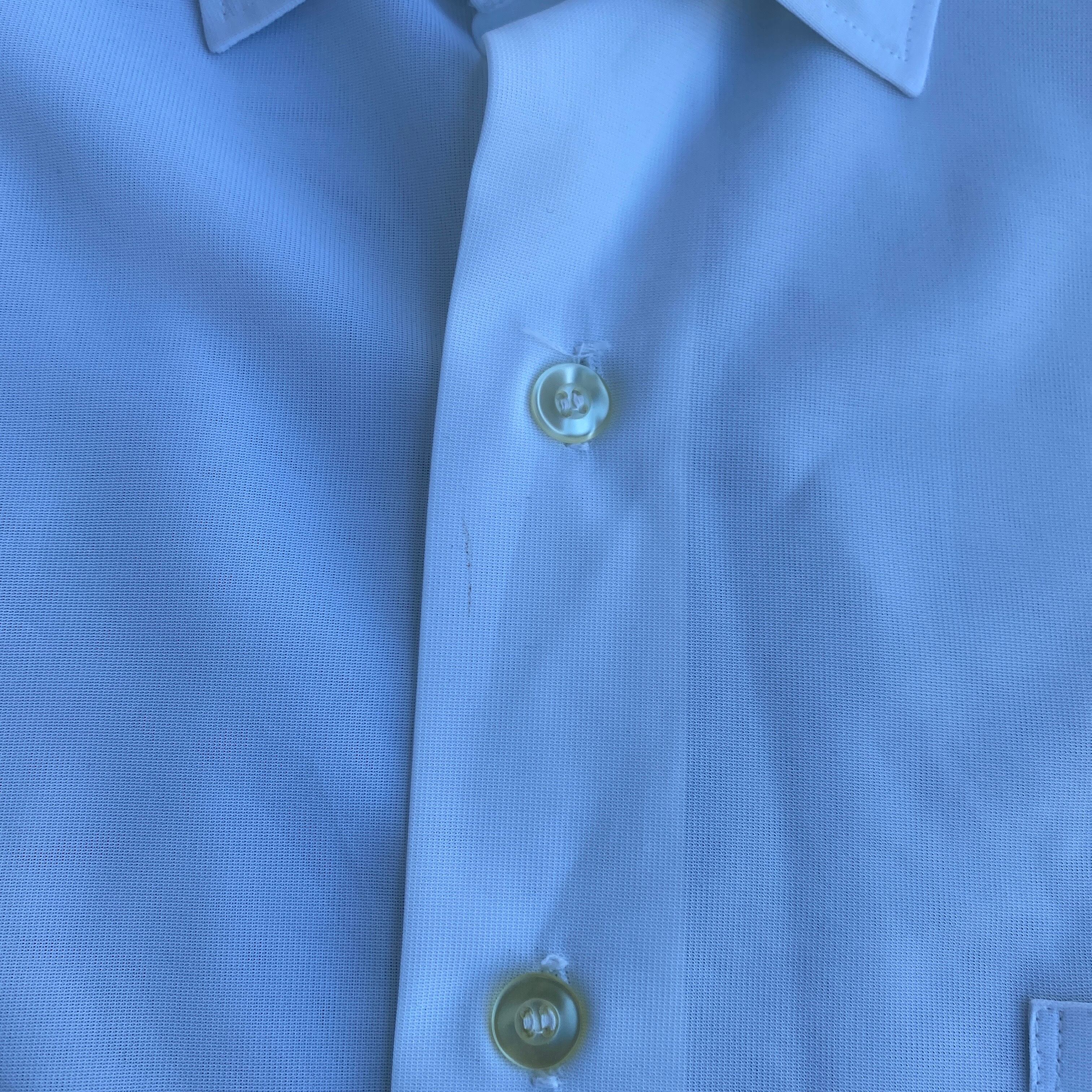 程よく肉厚で落ち間のあるDACRON(ポリエステル)素材を使用し、レギュラーカラーのシンプルなデザインに仕立てられた一着。