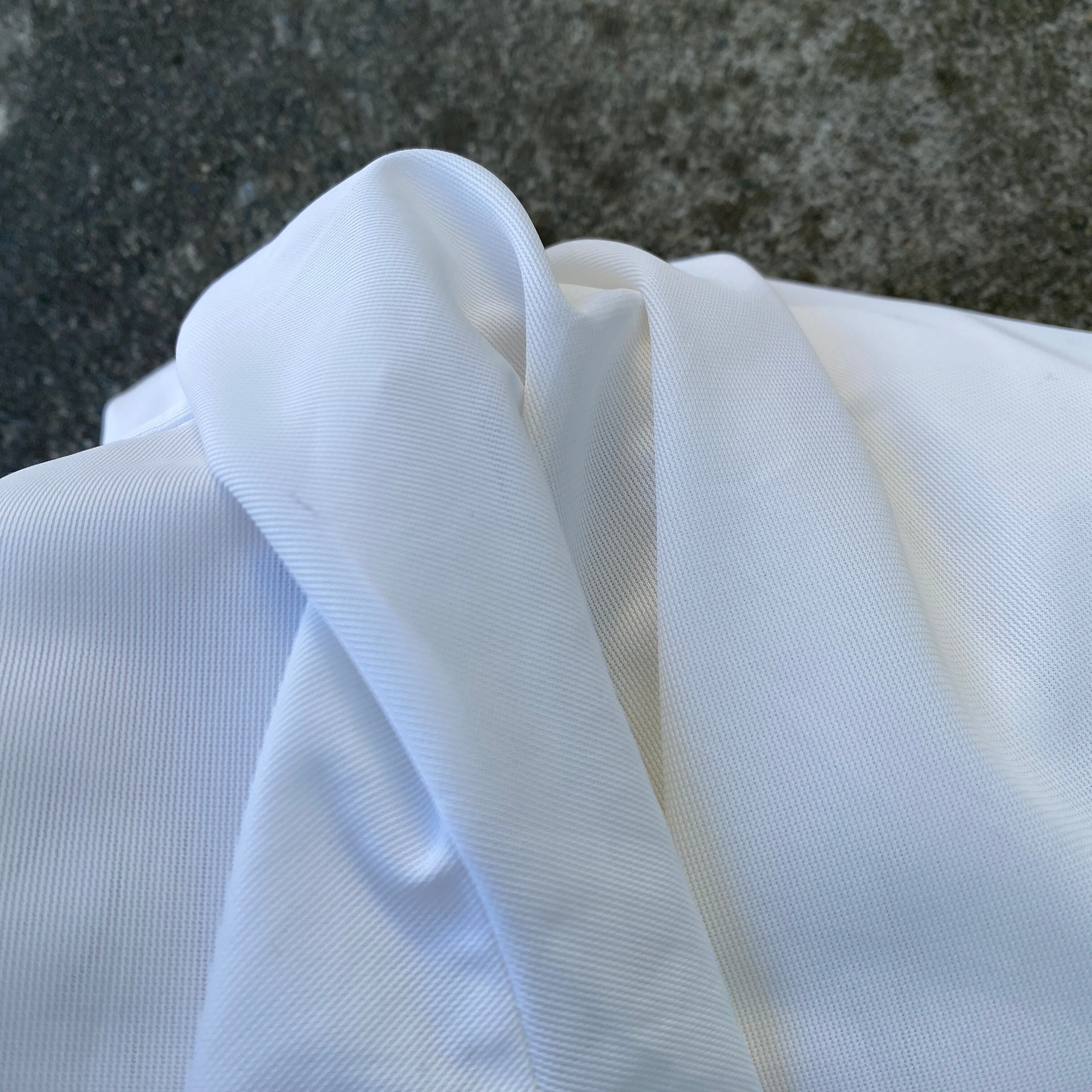 程よく肉厚で落ち間のあるDACRON(ポリエステル)素材を使用し、レギュラーカラーのシンプルなデザインに仕立てられた一着。