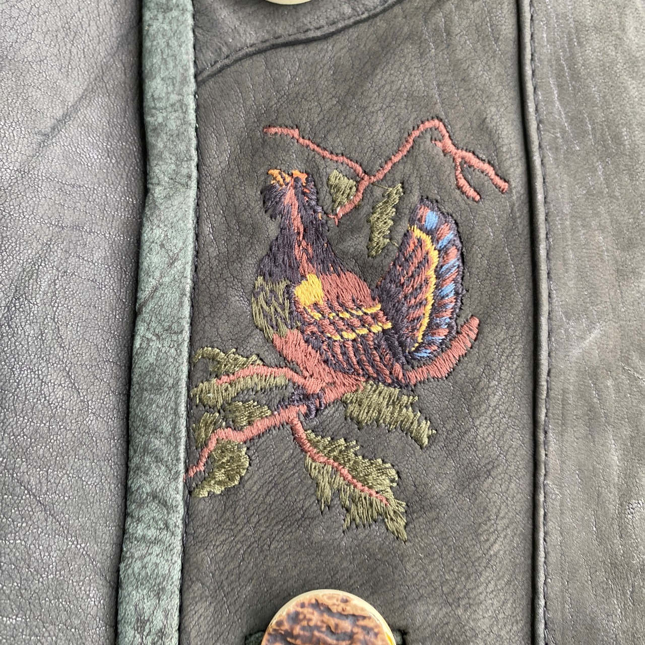 ボタンがフェイクのホーンボタンなので、おそらくそこまで古いものではありませんが、中央の刺繍や不均等なボタンデザインなど、非常に凝った作りでかなり重厚な雰囲気があります。