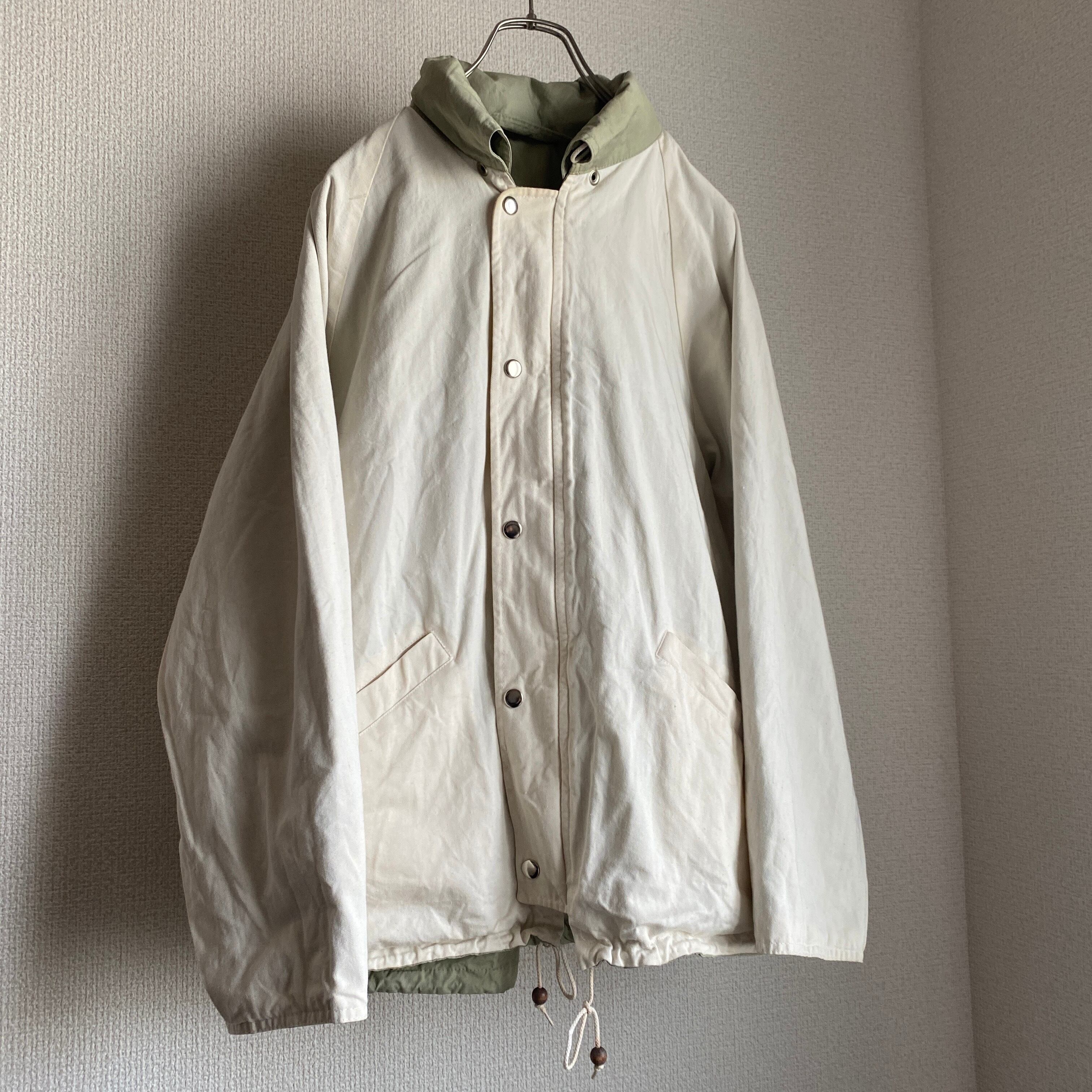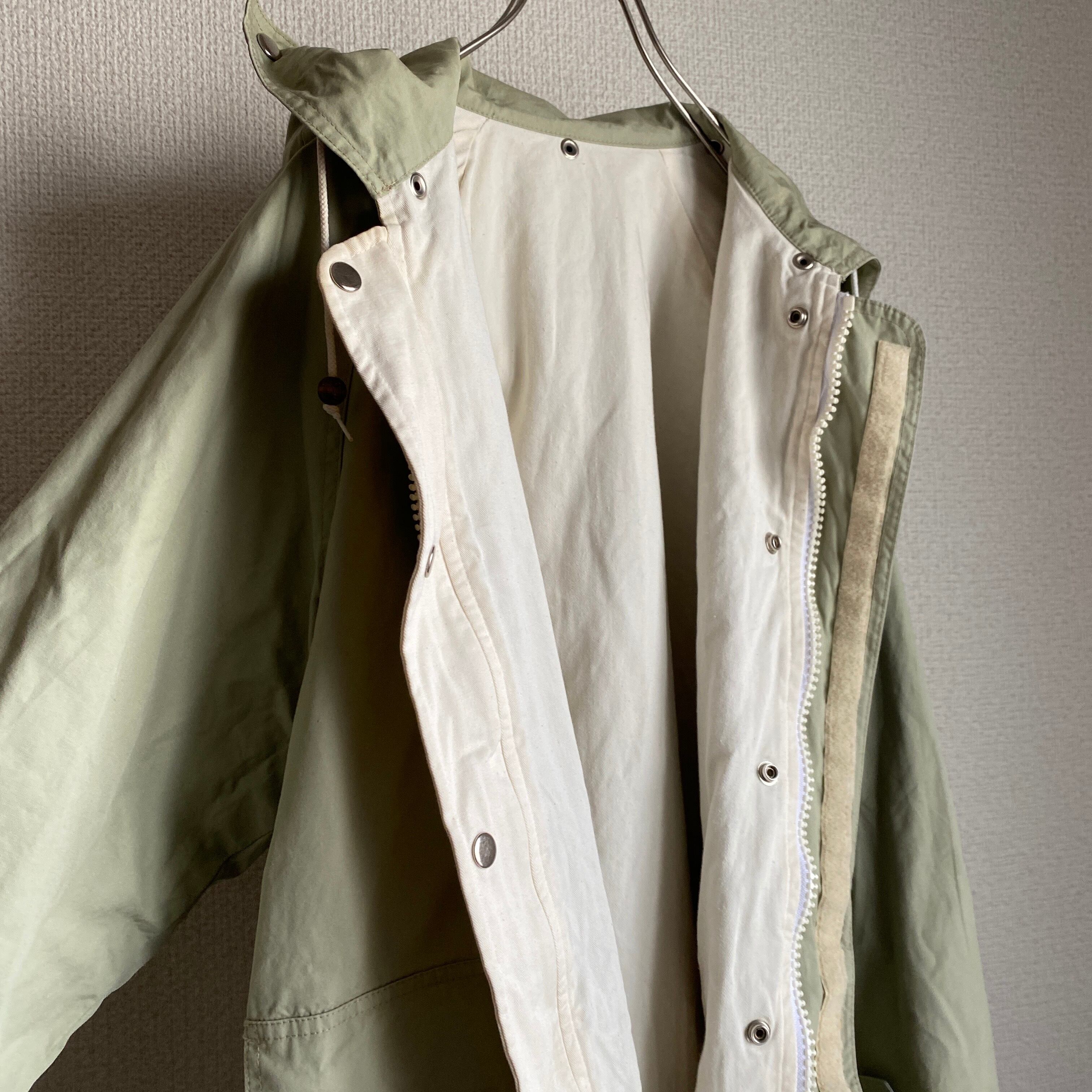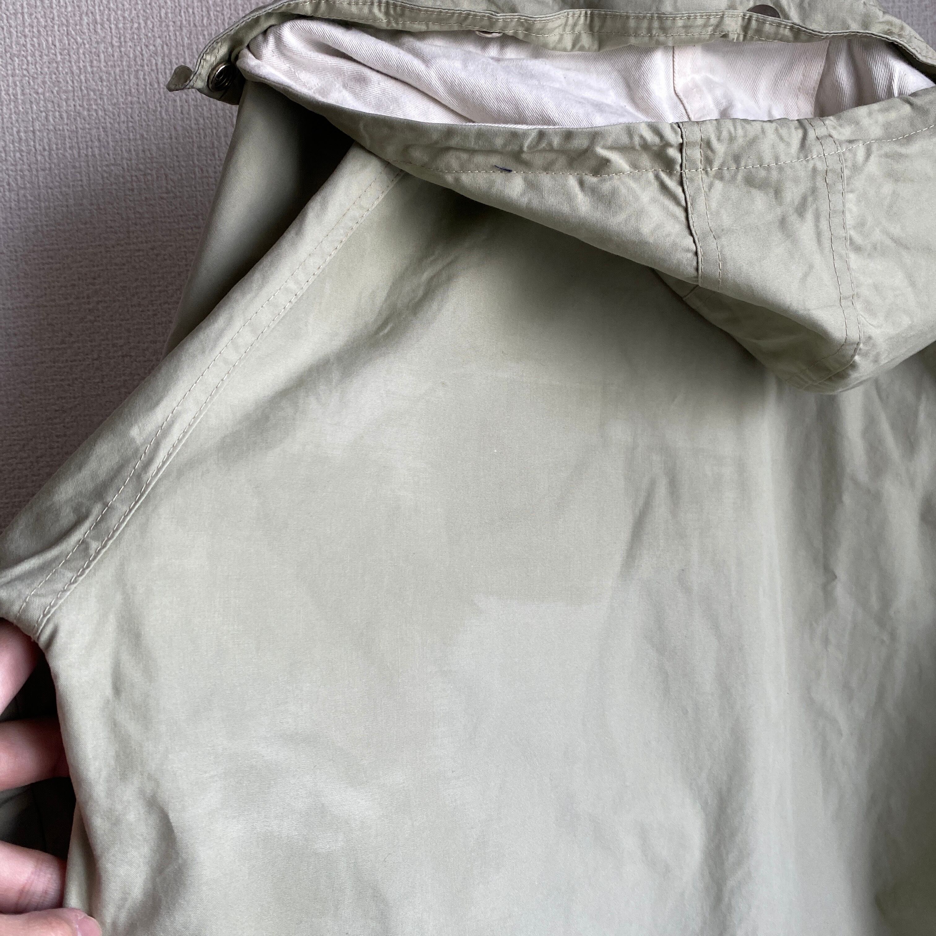 ややグリーンみがあり、柔らかさのあるベージュカラー、目の詰まったSURVIVALON社のコットンポプリンと柔らかいキャンバス地のリバーシブル、ギミックの効いたヘビーデューティなデザインが素晴らしい一着。