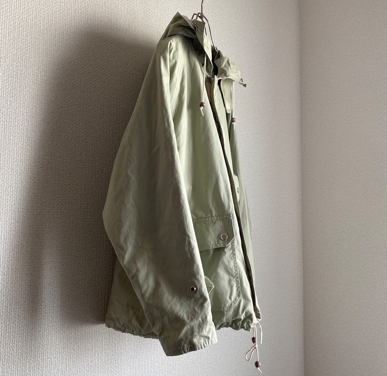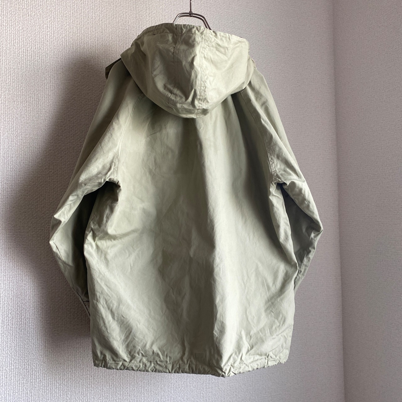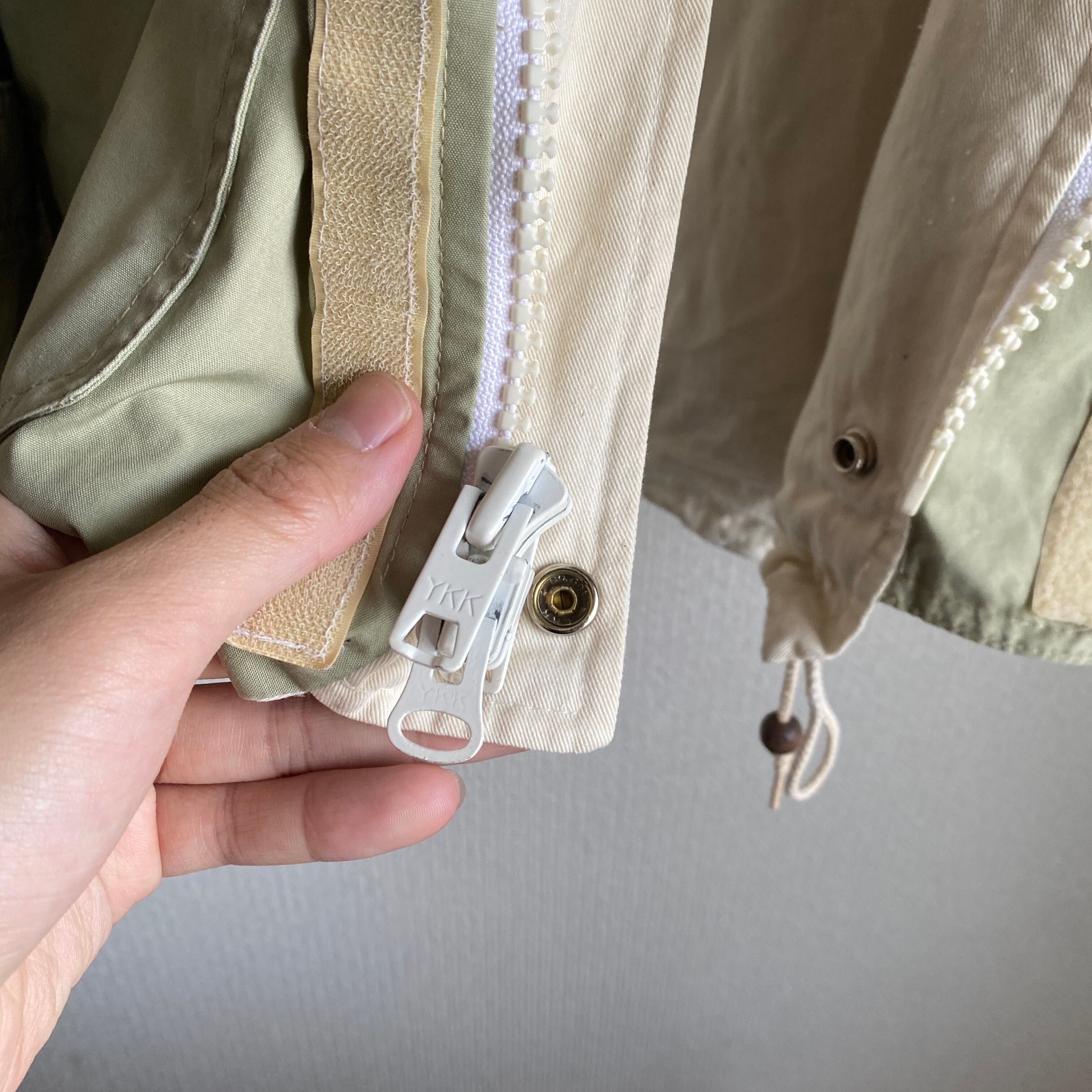 ややグリーンみがあり、柔らかさのあるベージュカラー、目の詰まったSURVIVALON社のコットンポプリンと柔らかいキャンバス地のリバーシブル、ギミックの効いたヘビーデューティなデザインが素晴らしい一着。