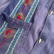 おそらく「幸運のお守り」的な意味合いのタツノオトシゴ刺繍もヒッピーな雰囲気で◎。