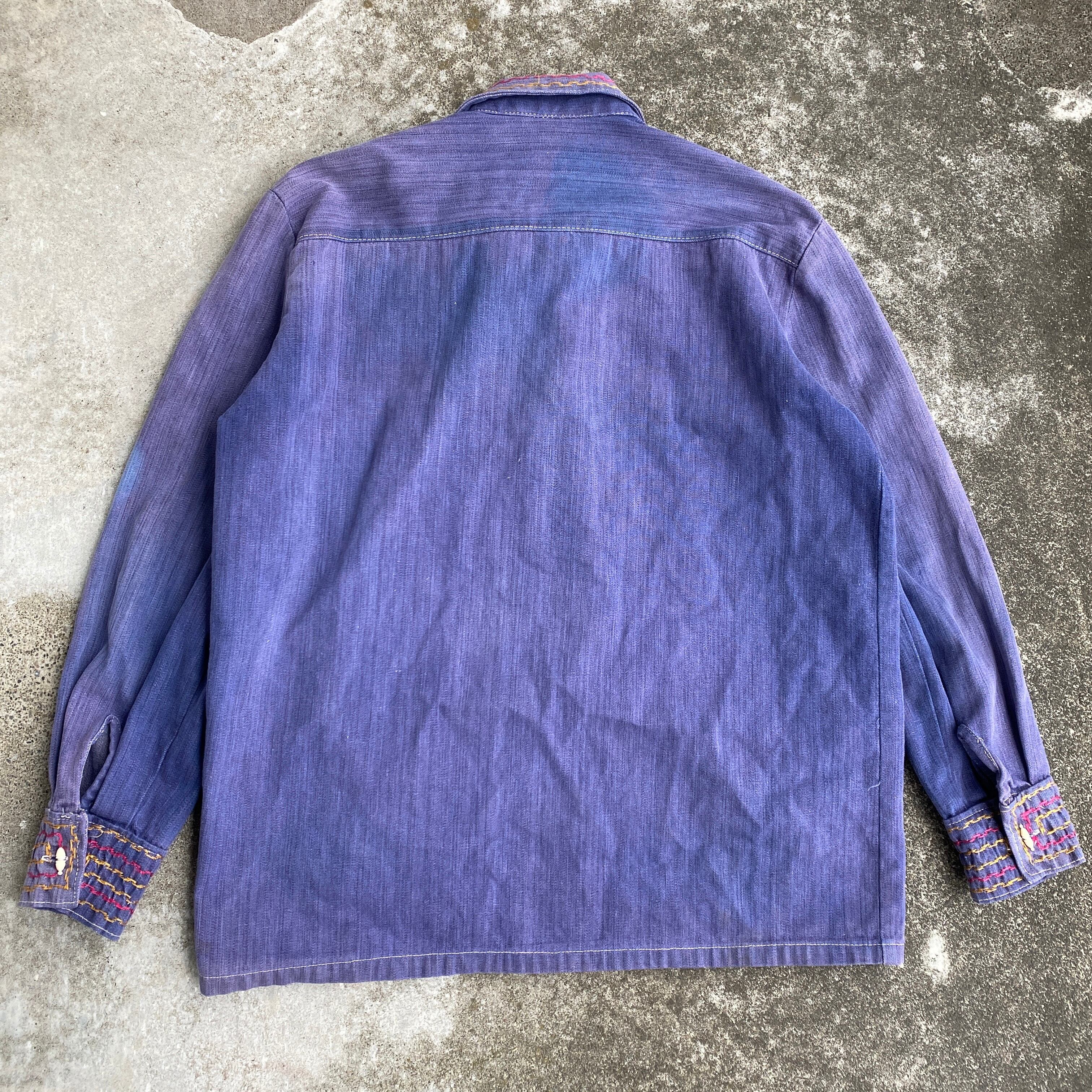 元々の色がわからないぐらい、褪せに褪せたパープル系の色目が非常に格好良い一着。