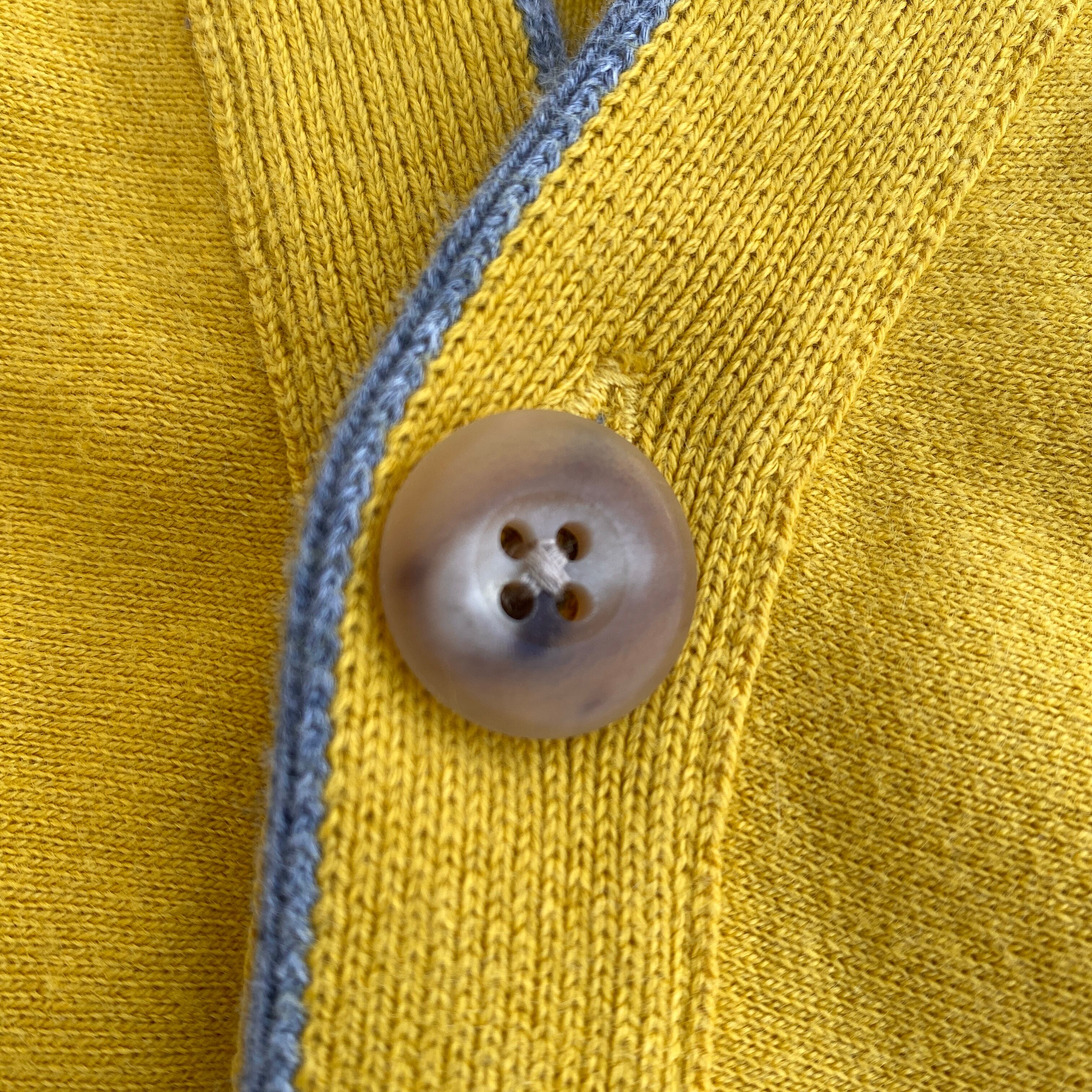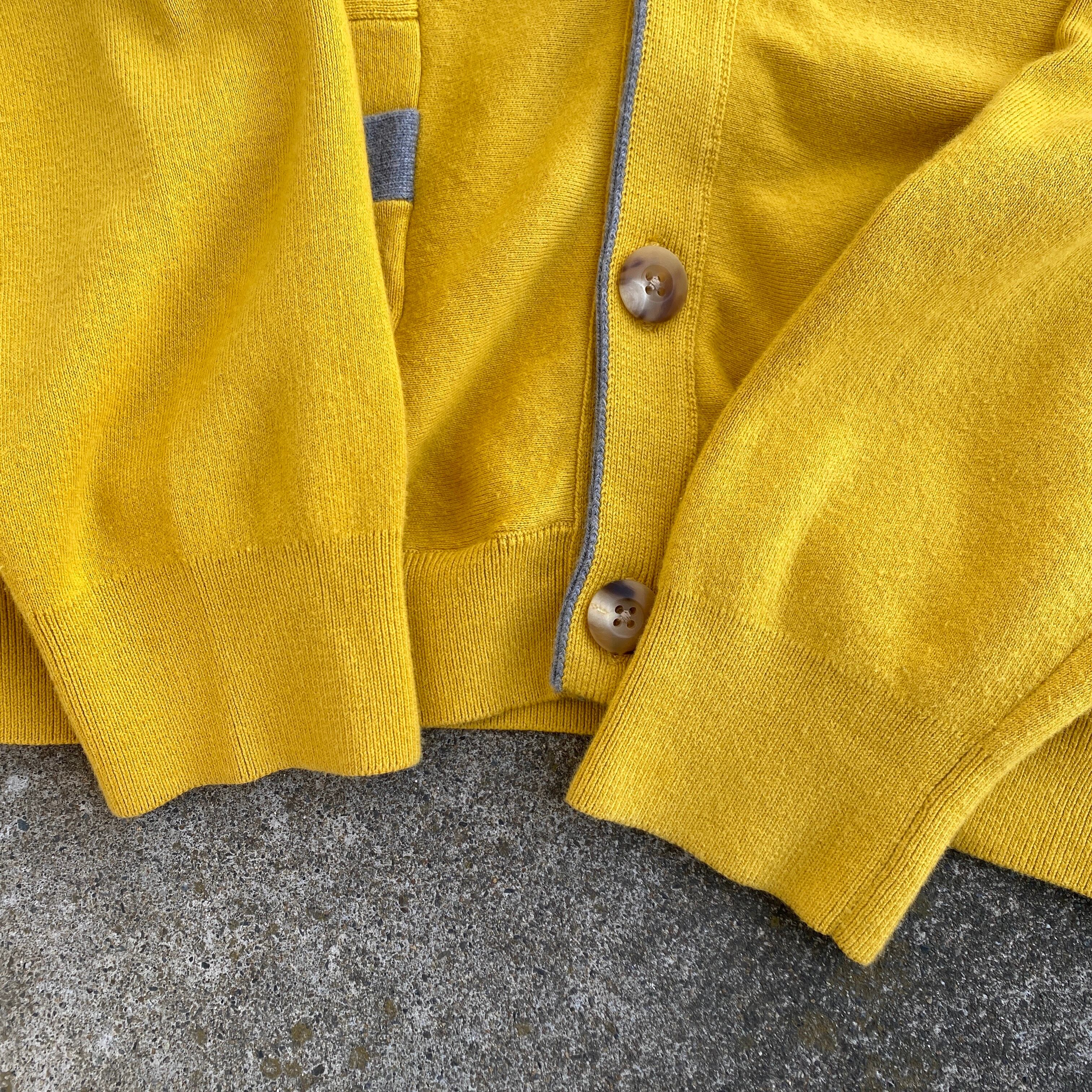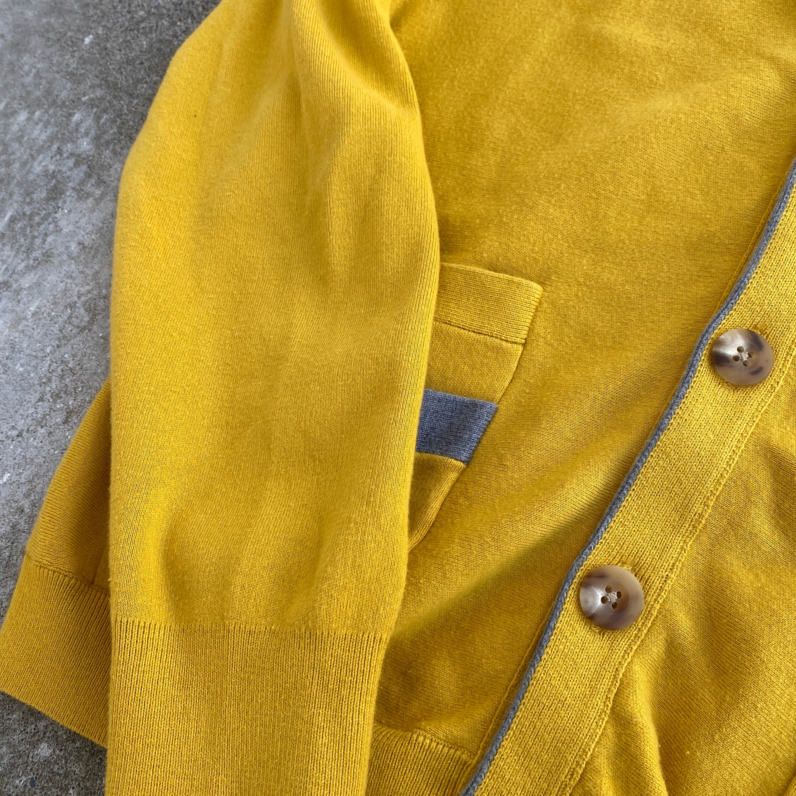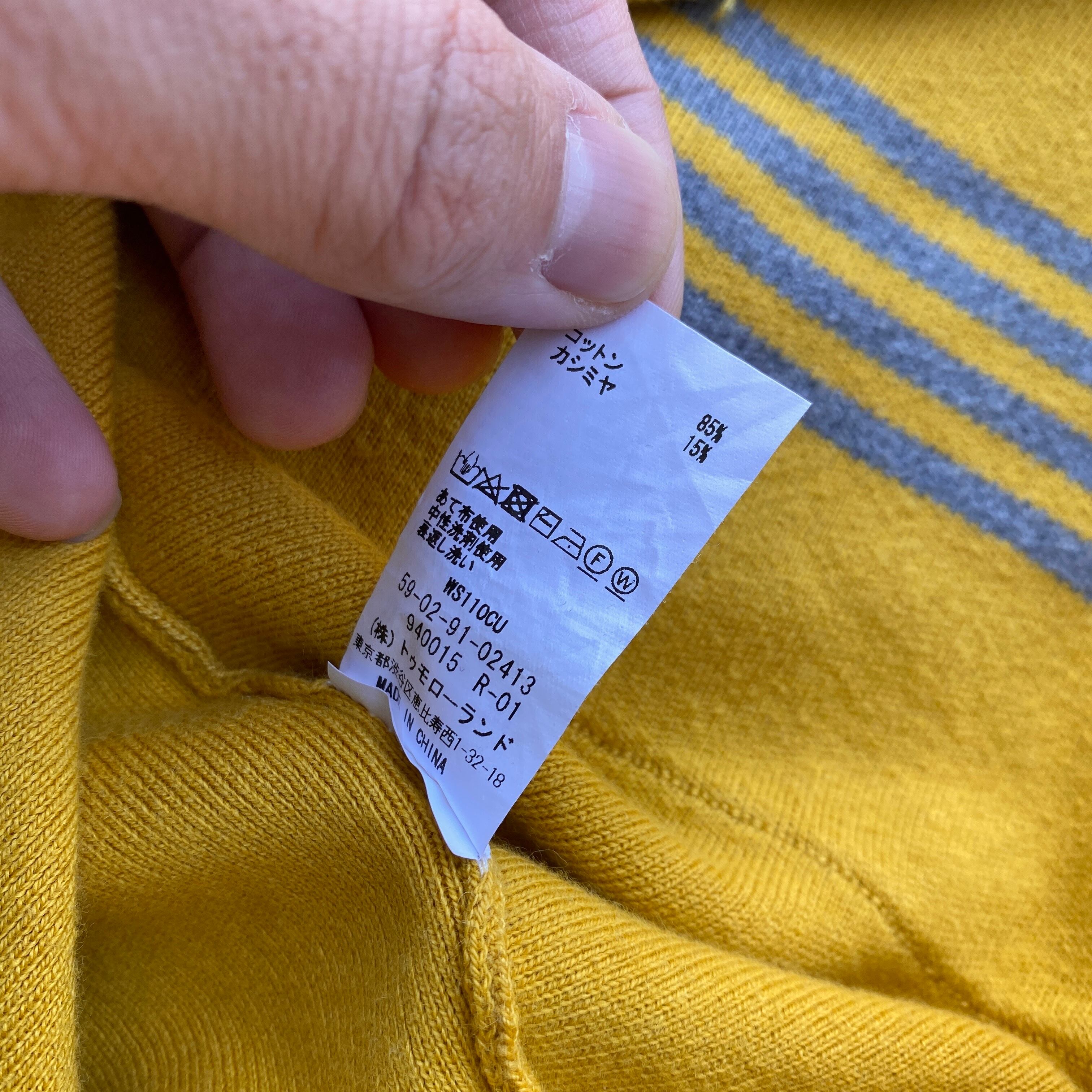 肉厚で柔らかく、モチっとした生地感のコットンニット素材に、マスタード×グレーの春らしい配色が非常に格好良い一着。