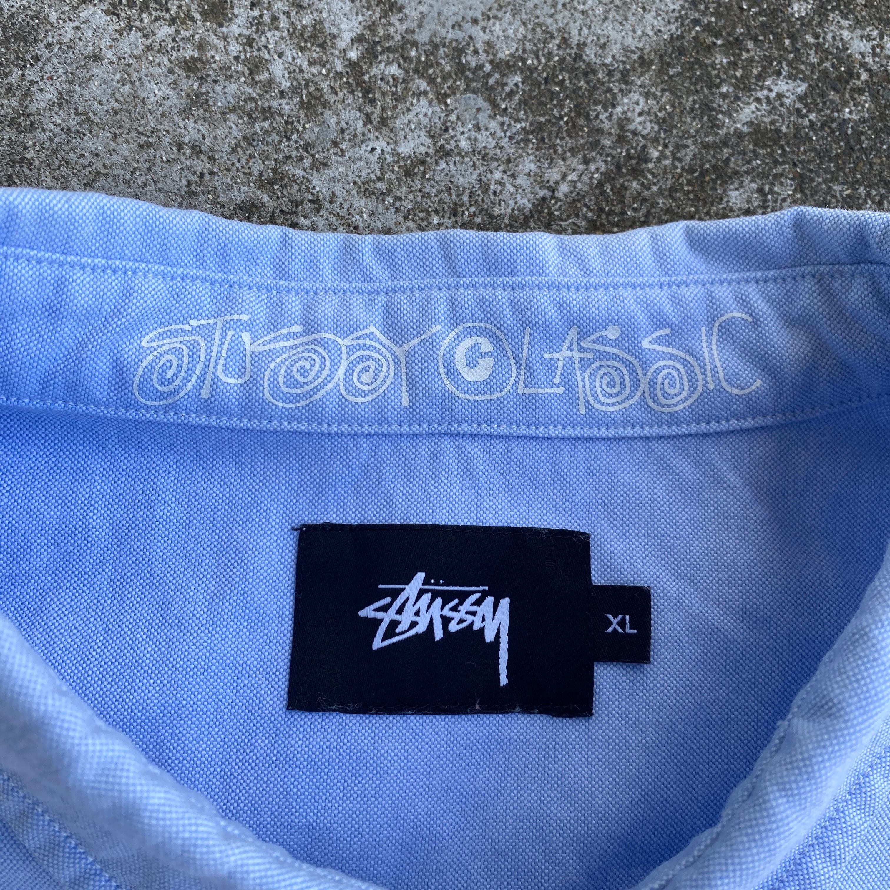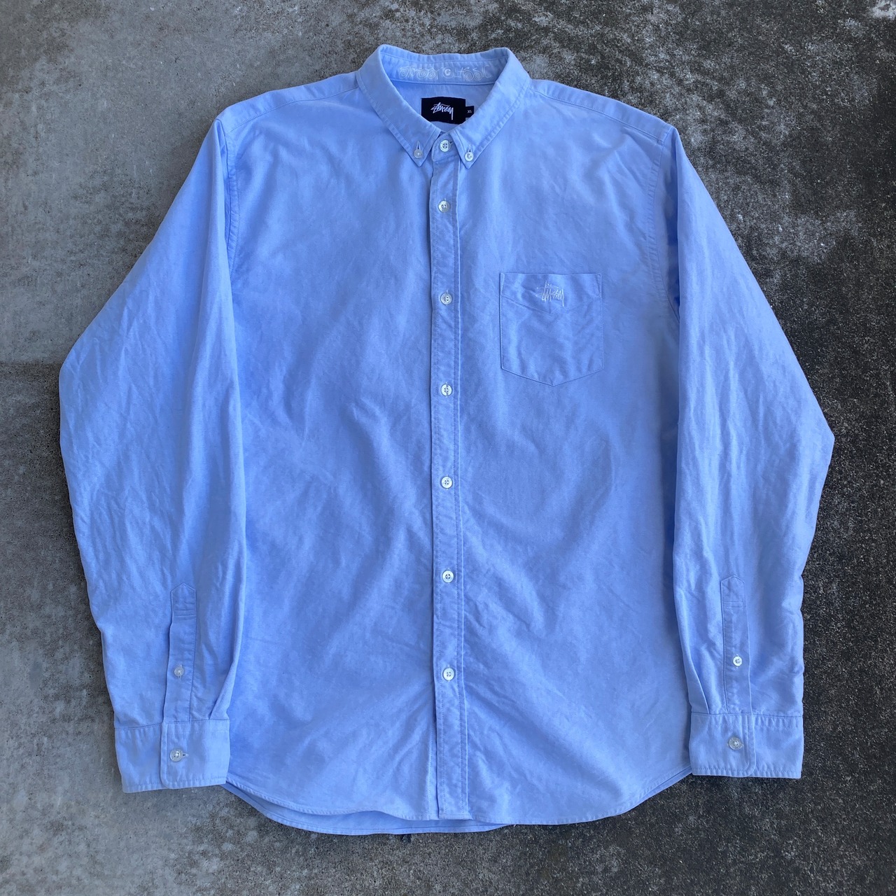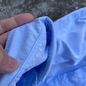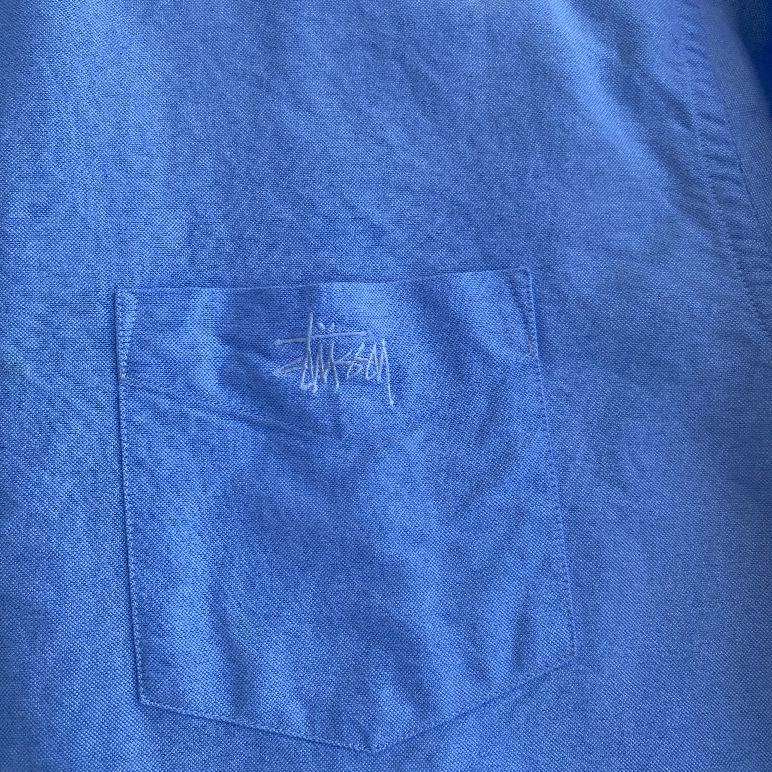 コットン100の上質なオックスフォード生地に、美しいサックスブルーカラー(画像10参照)、三点留めボタンで、やや襟が小さめのクラシックなスタイルが非常に格好良い一着。
