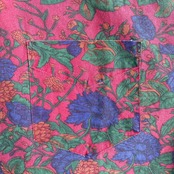 褪せたようなレッドをベースに、ネイビーパープル、グリーンの配色が絶妙な一着。