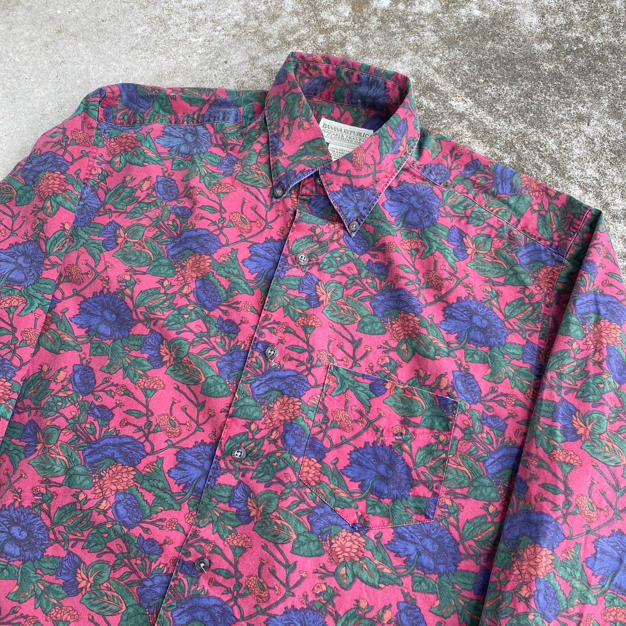 80年代頃のバナナリパブリックサファリアンドトラベルボタニカル総柄BDシャツになります。