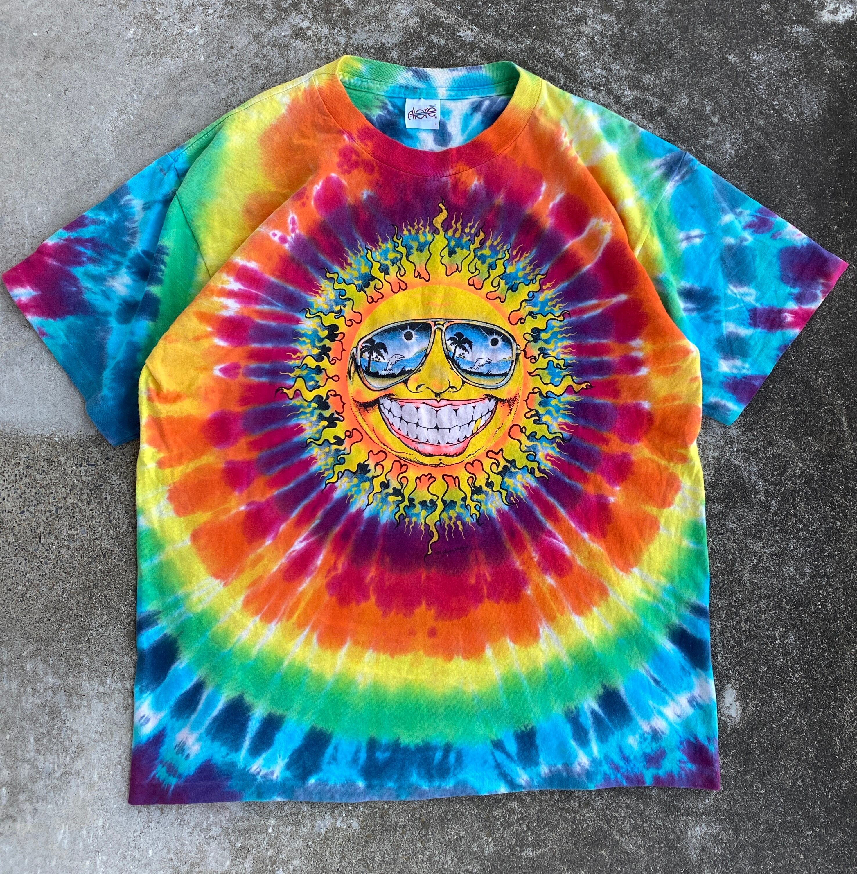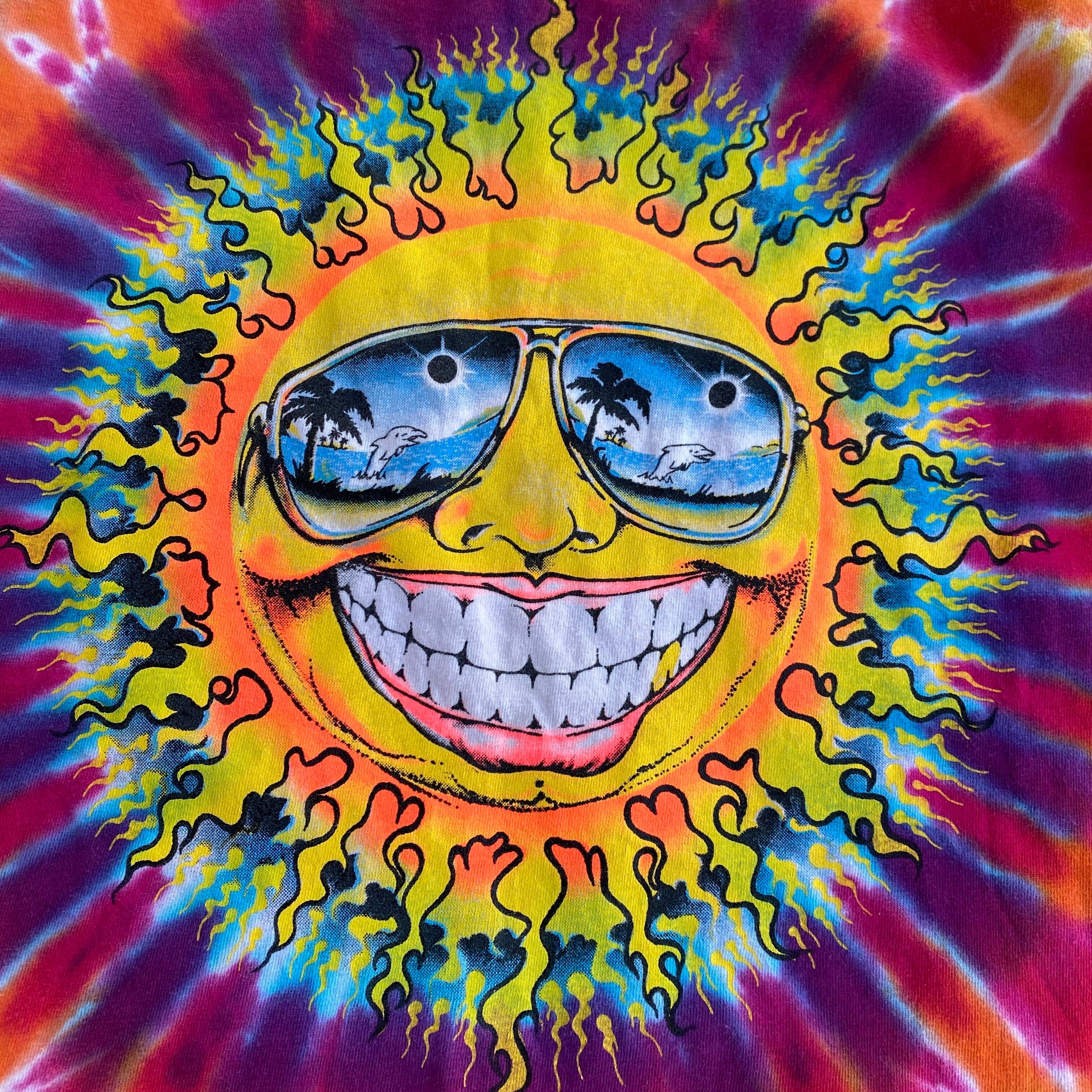 ド派手なタイダイにサングラスをかけた太陽のデザインが非常に格好良いです。