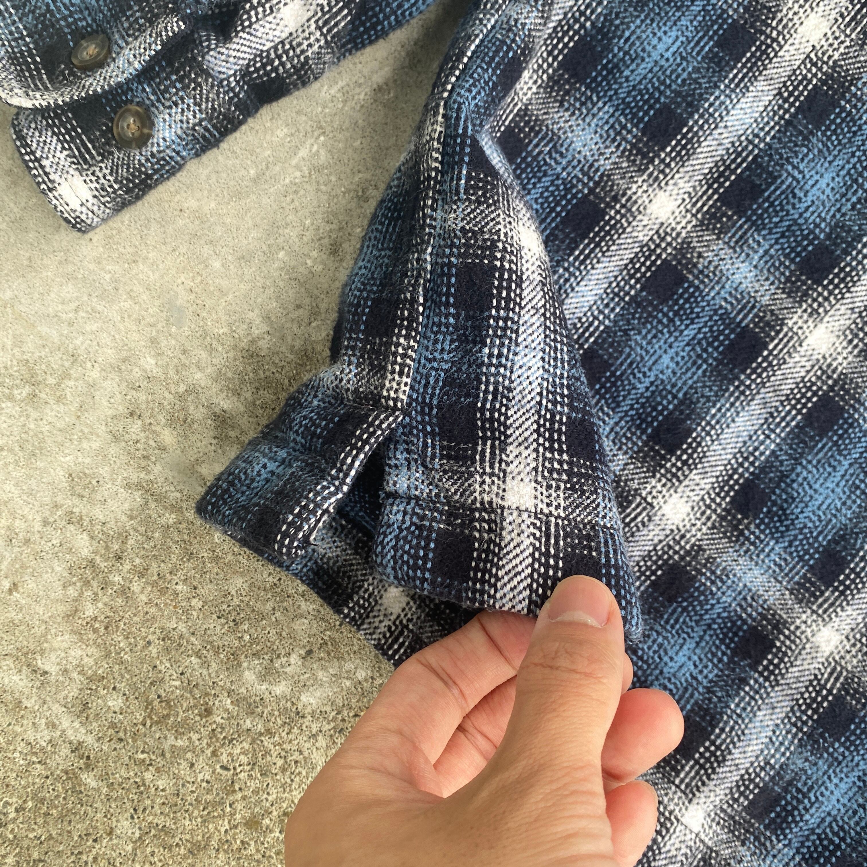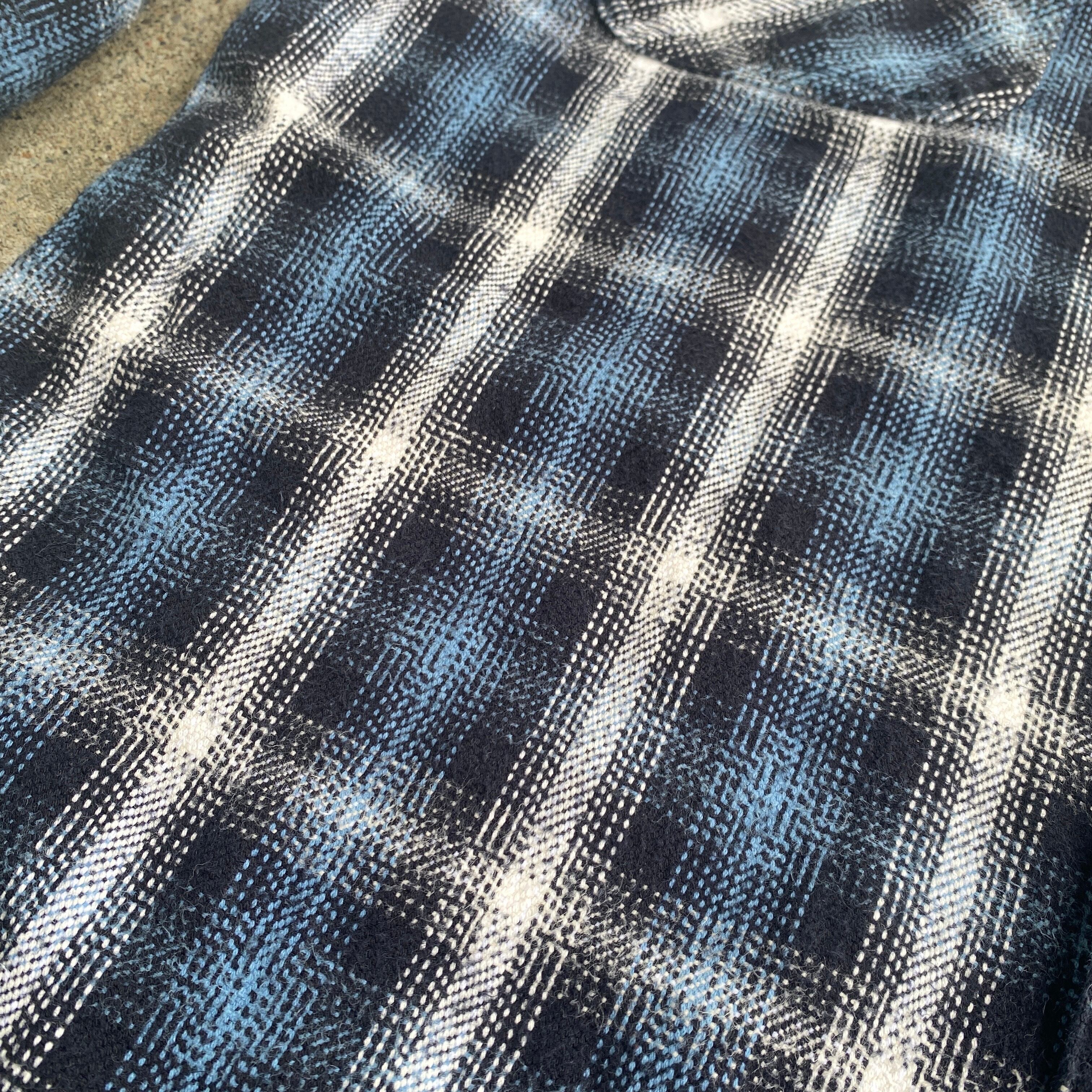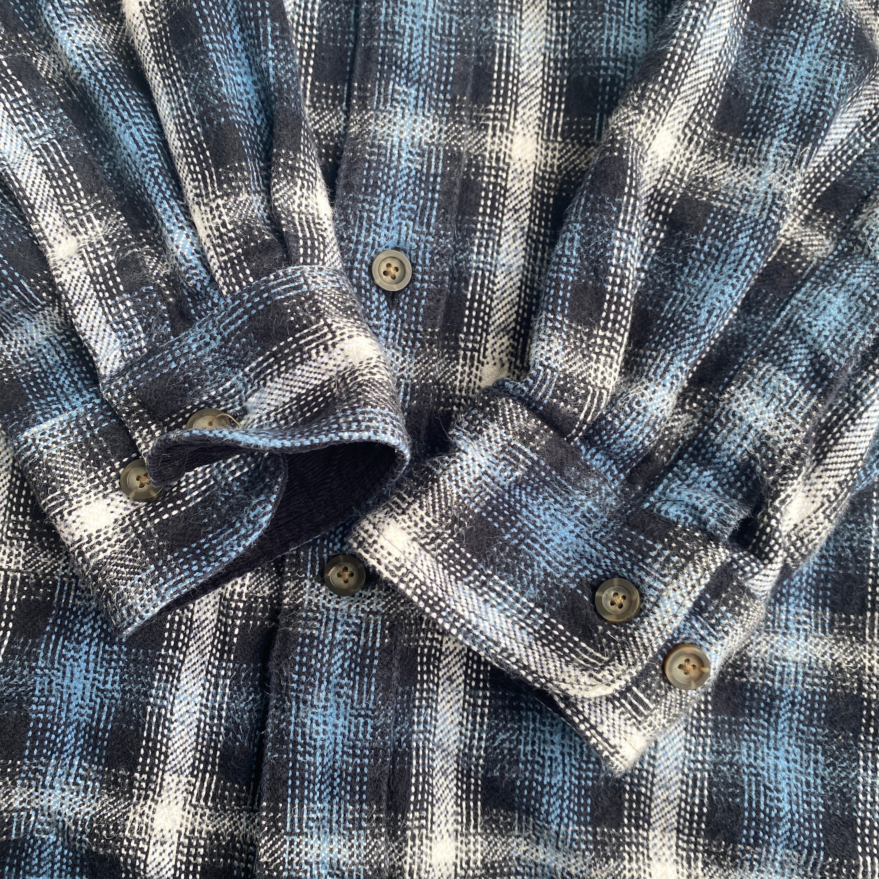 肉厚でモチっとしたコットンネル素材に、ブルー、ブラック、ホワイトカラーのオンブレチェックの絶妙な配色、LTサイズのゆったりとしたサイズ感が抜群に格好良い一着。