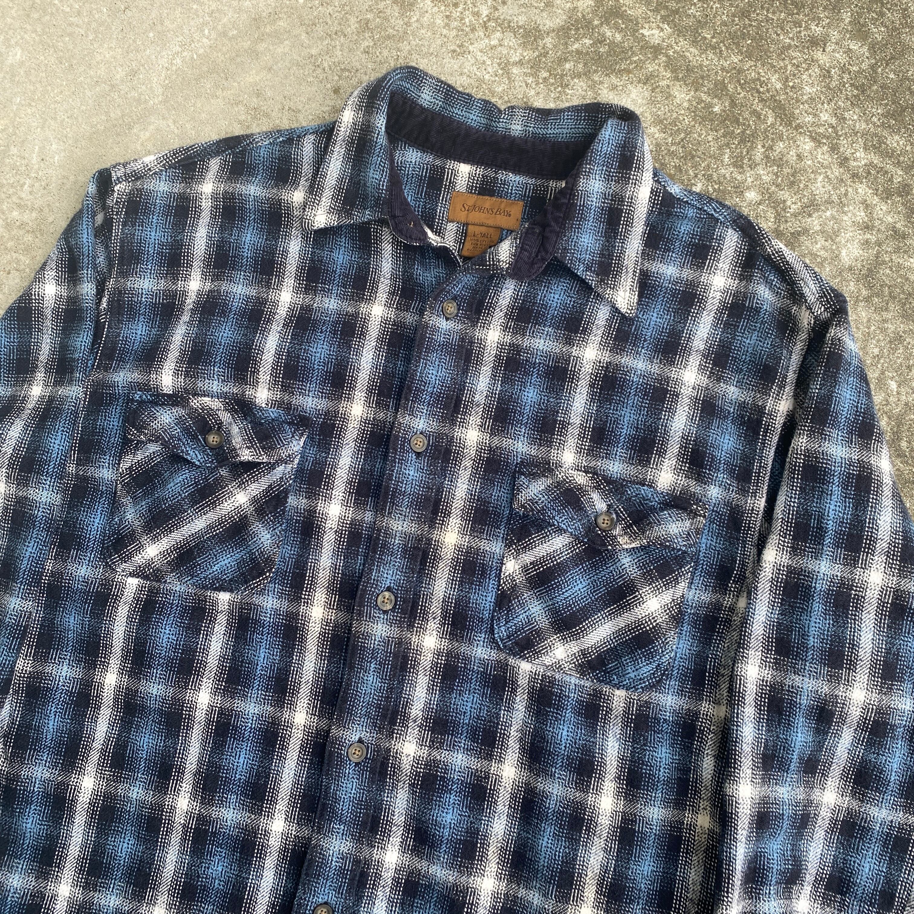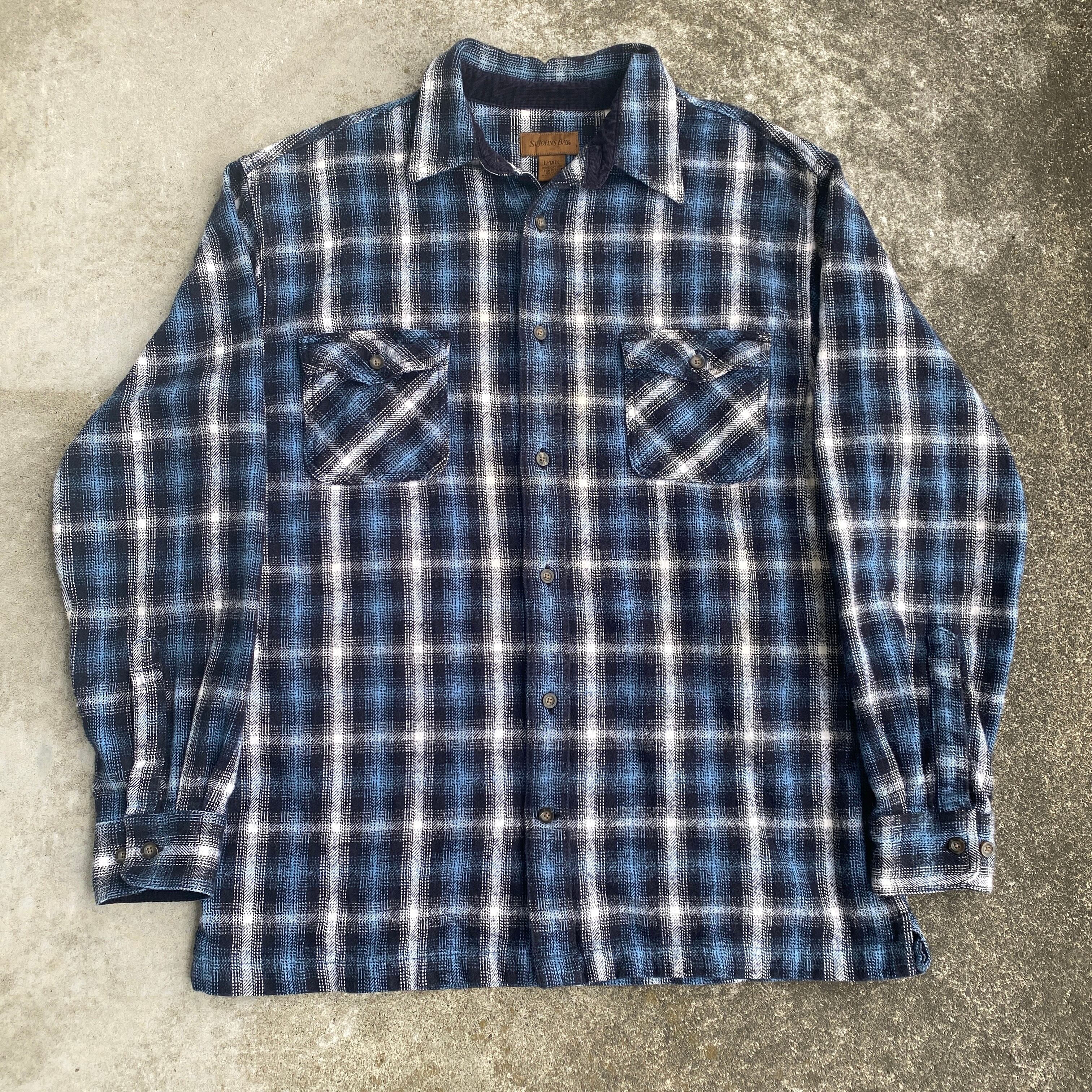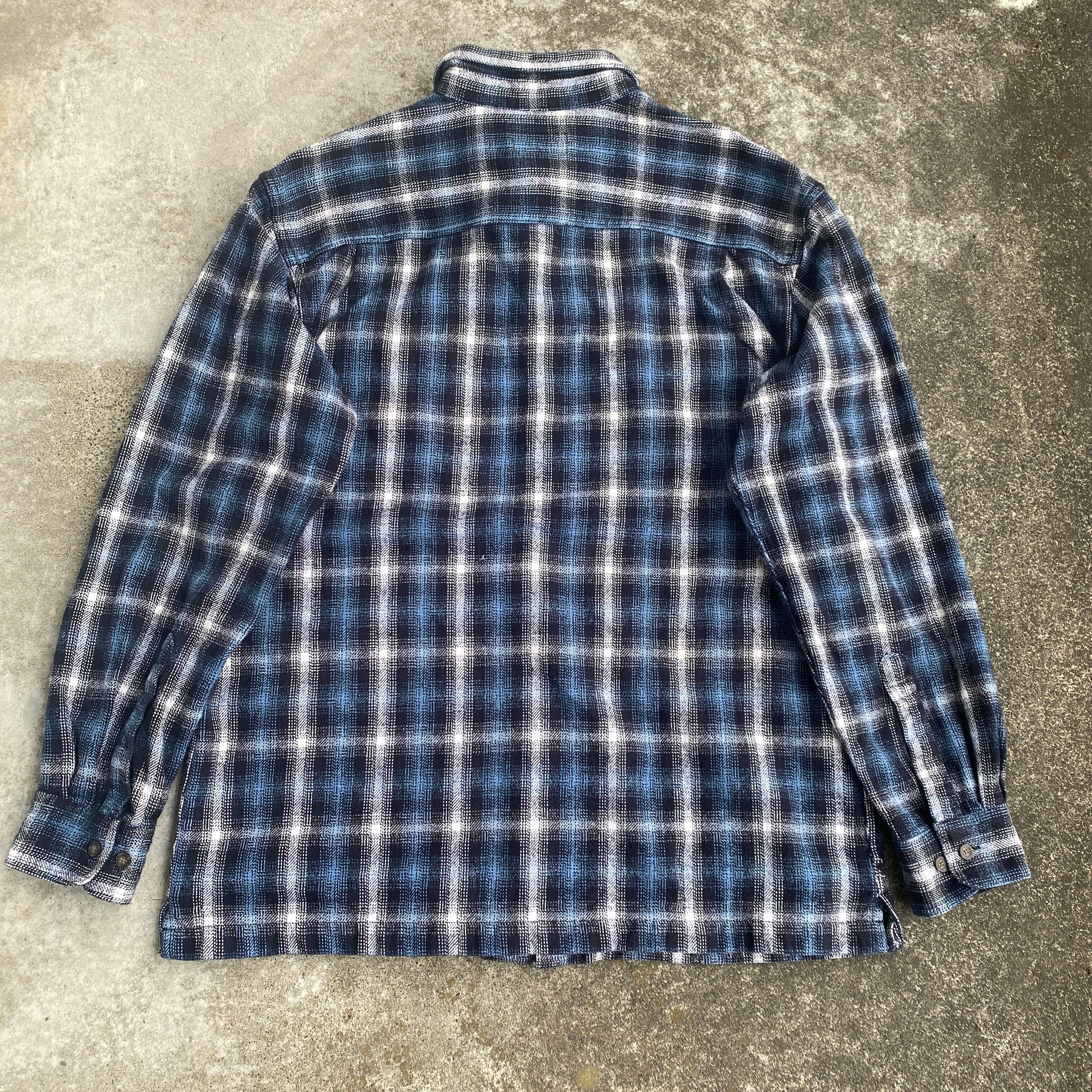 肉厚でモチっとしたコットンネル素材に、ブルー、ブラック、ホワイトカラーのオンブレチェックの絶妙な配色、LTサイズのゆったりとしたサイズ感が抜群に格好良い一着。