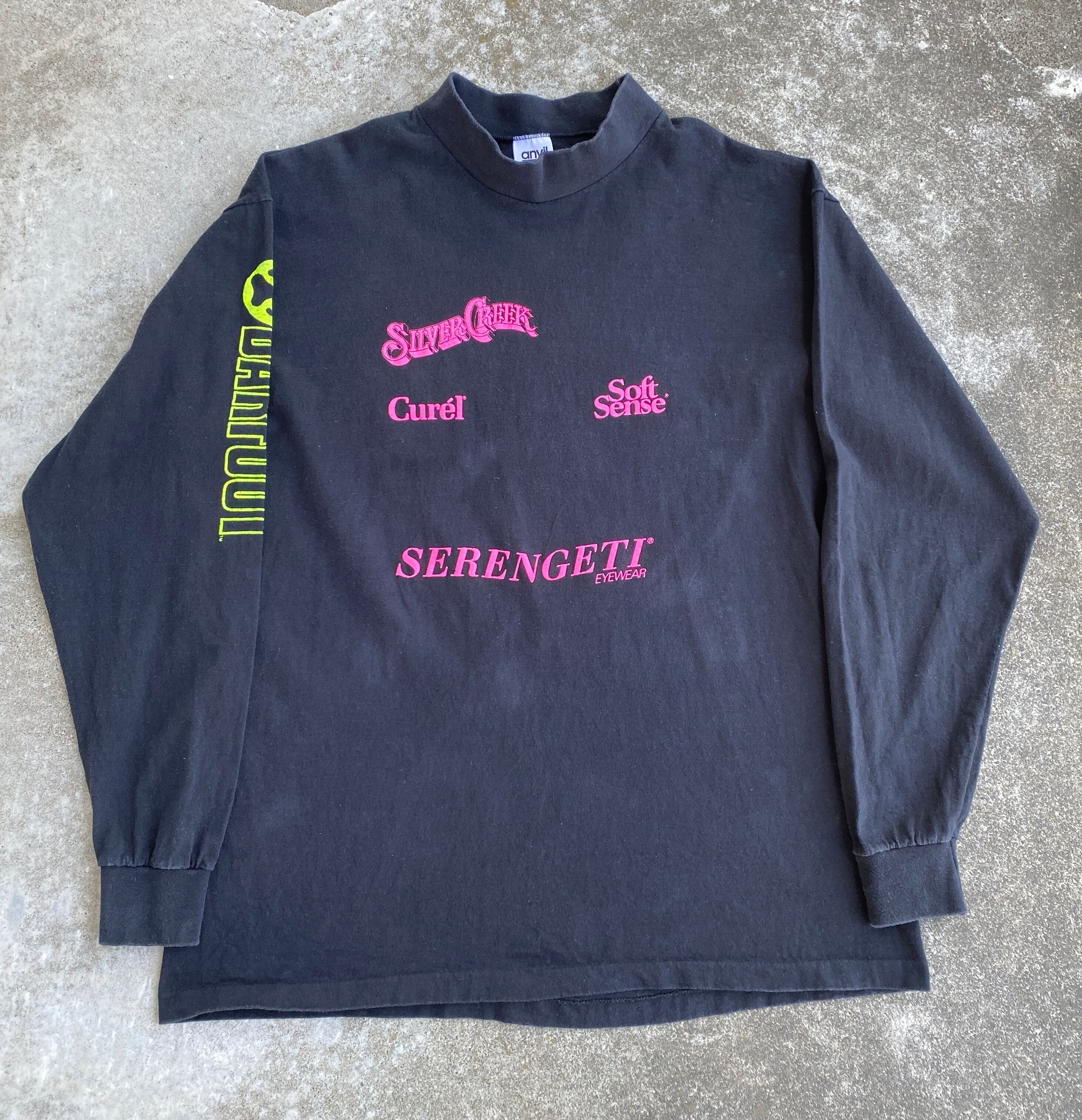 90年代ごろのアメリカ製「バーフット」プリントモックネックロンTになります。