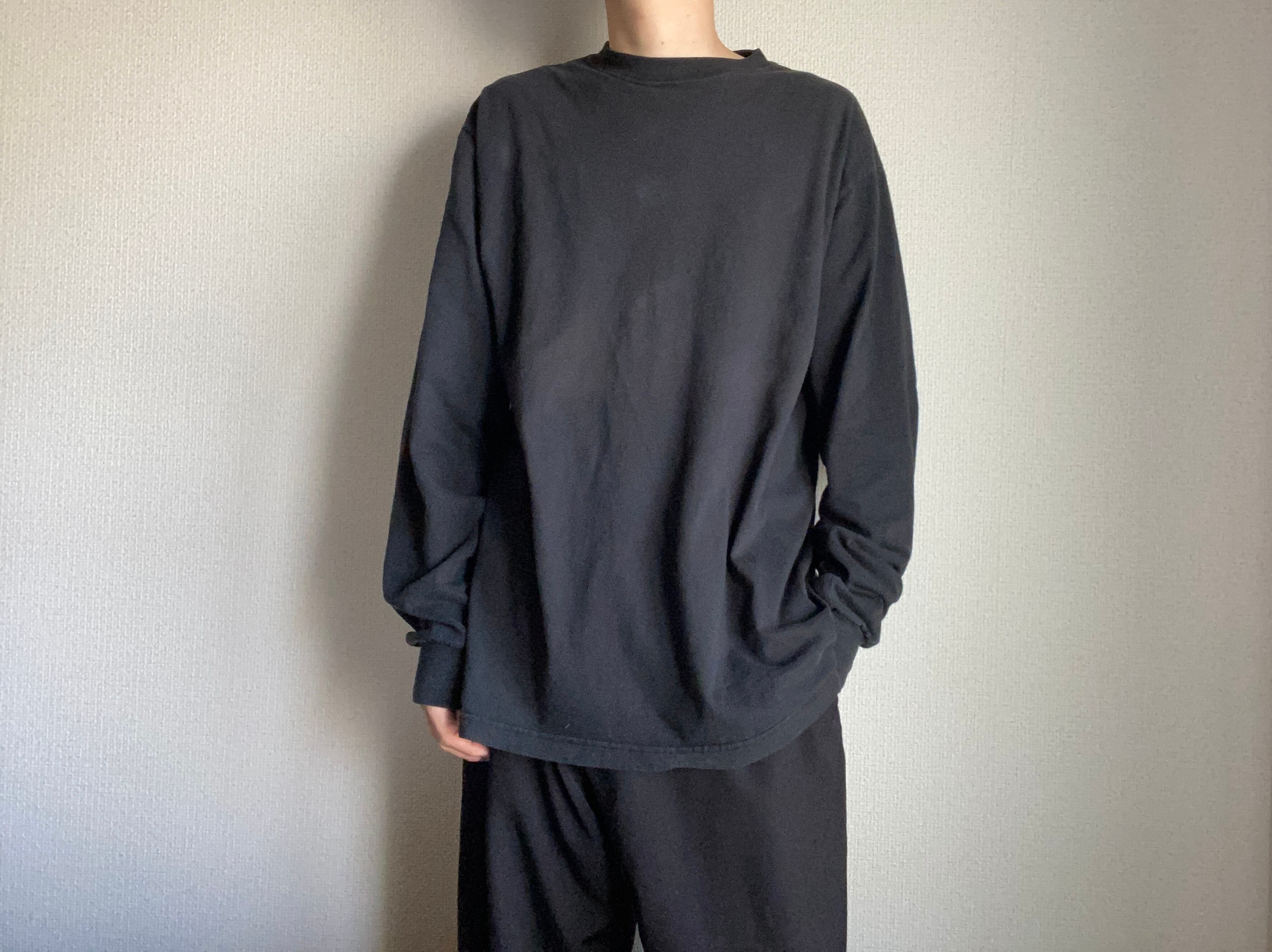 なんてことない黒LStシャツですが、90sでこのバランス、色褪せ具合の無地は探すと中々見つからないです。
