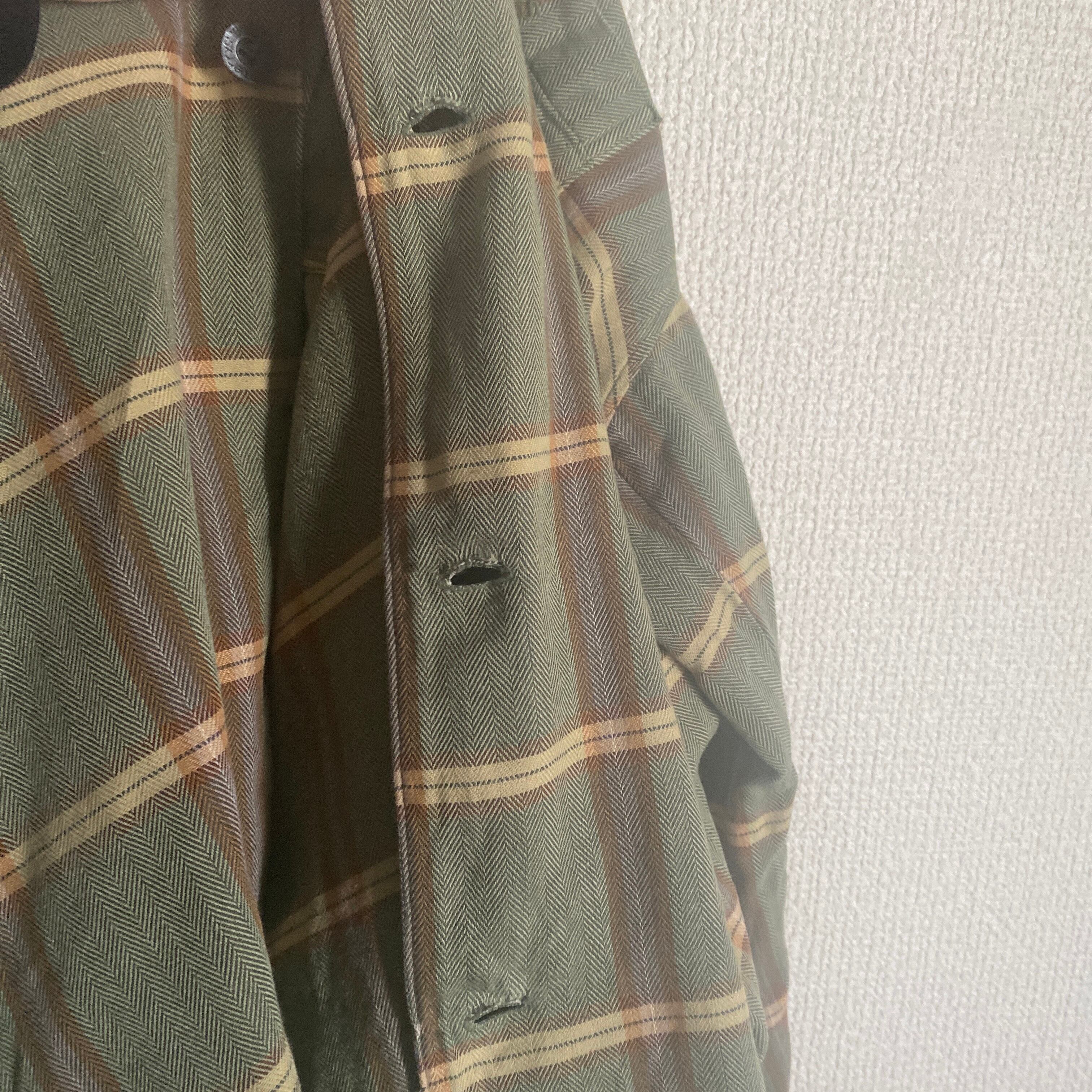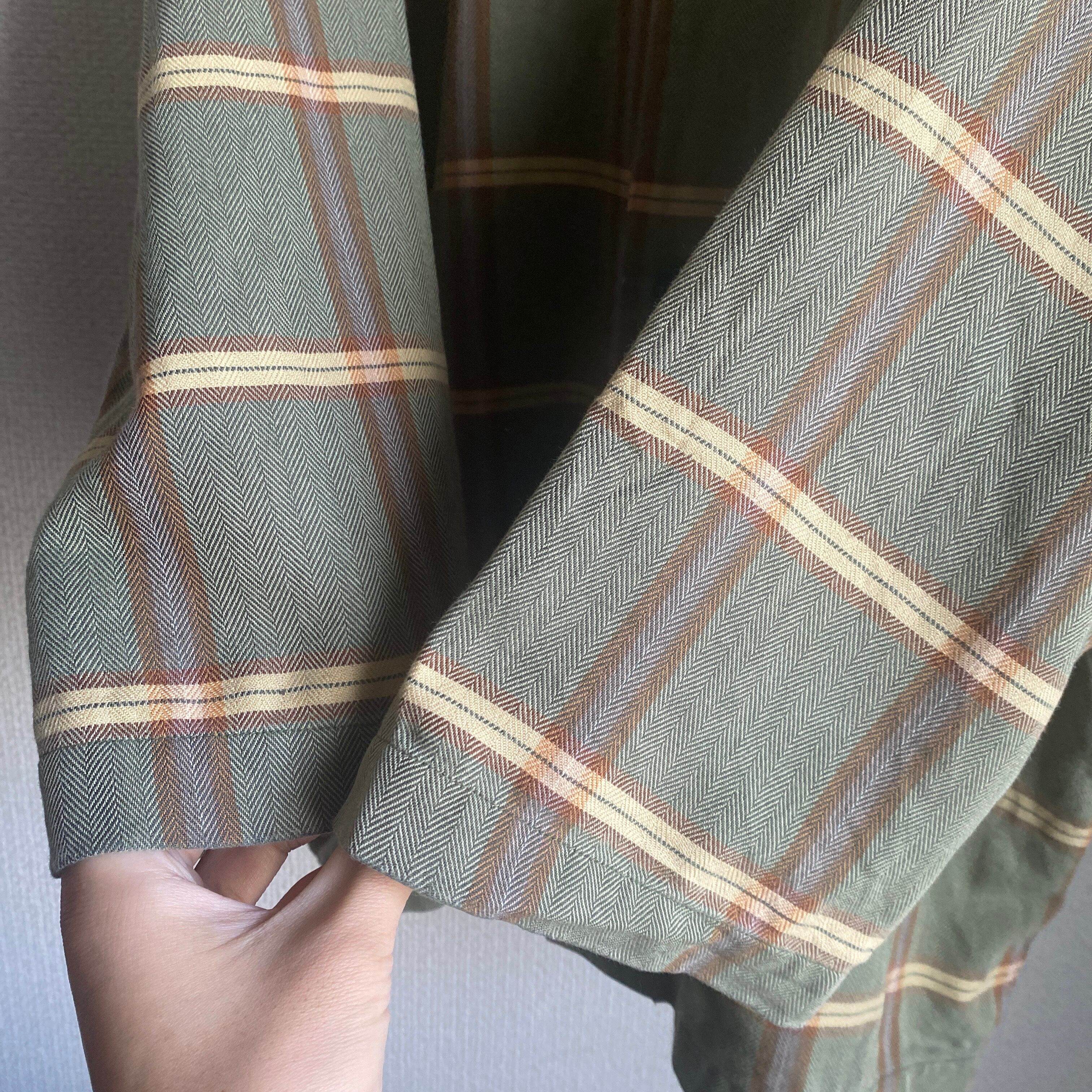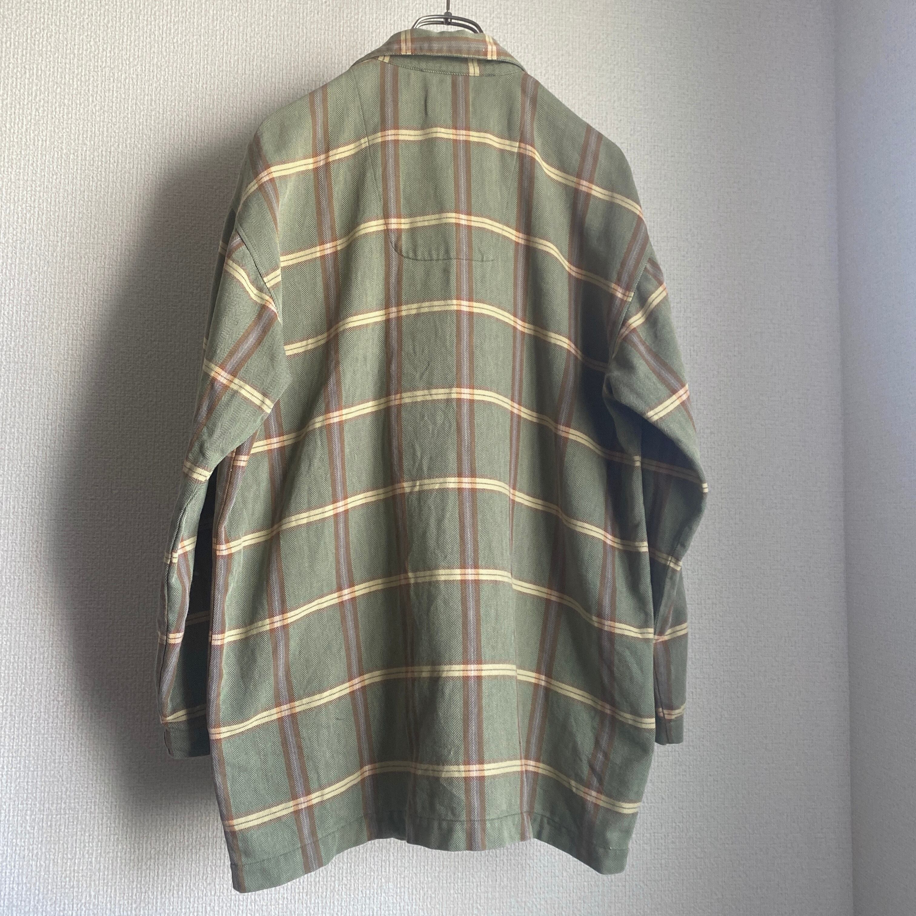 くすみ系グリーンカラーをベースとした柔らかい色目、ゆったりとしたシルエットが非常に格好良い一着。