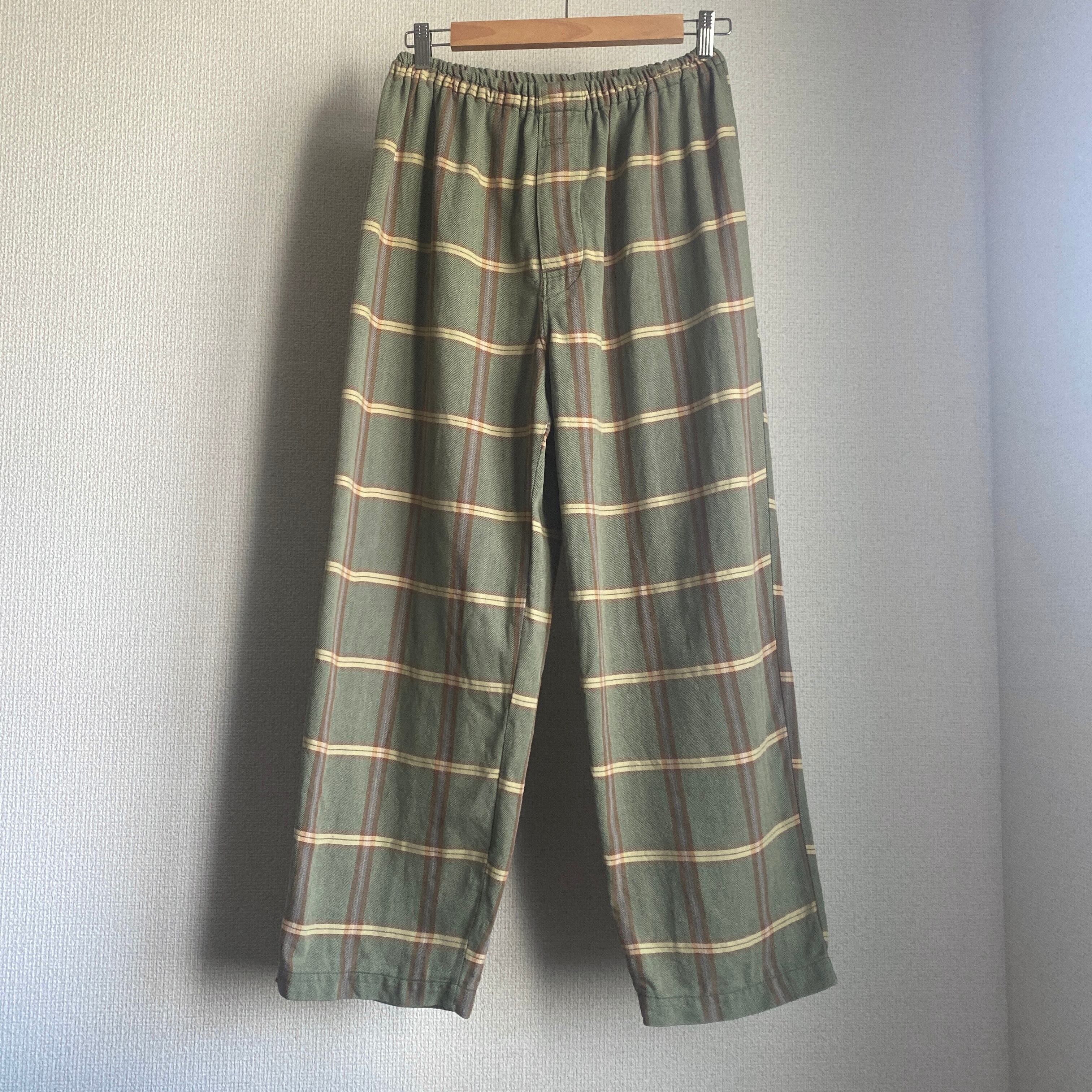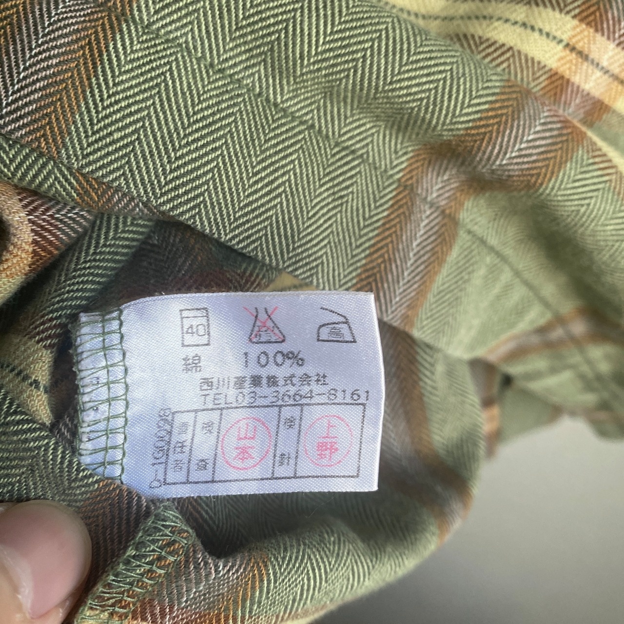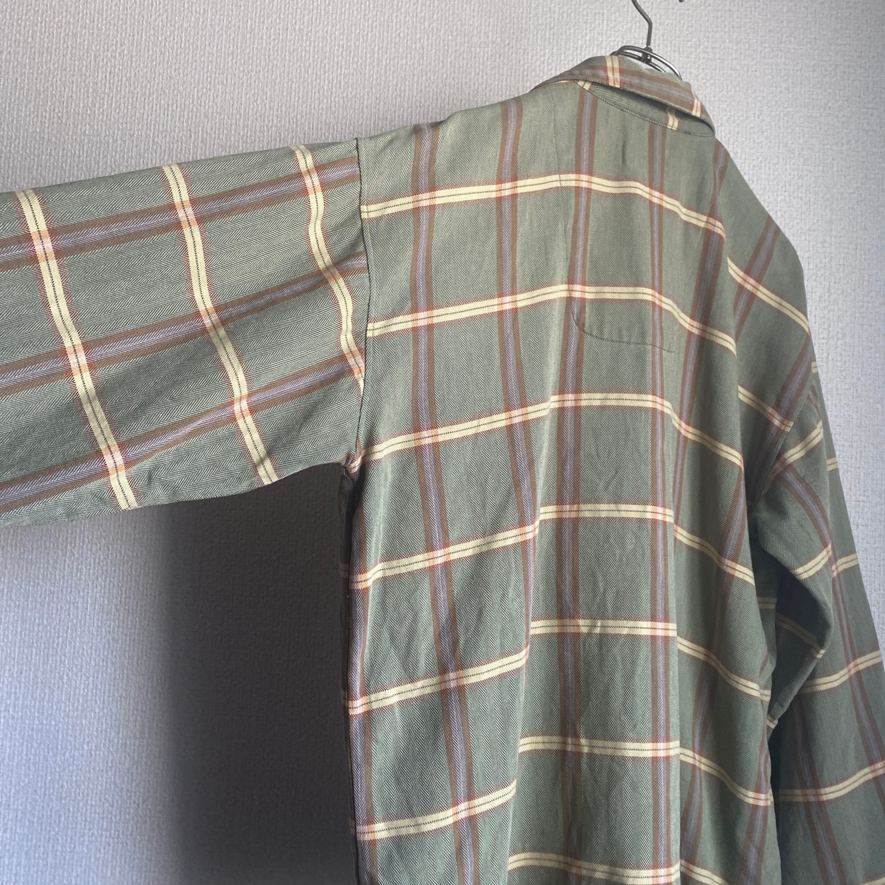 くすみ系グリーンカラーをベースとした柔らかい色目、ゆったりとしたシルエットが非常に格好良い一着。