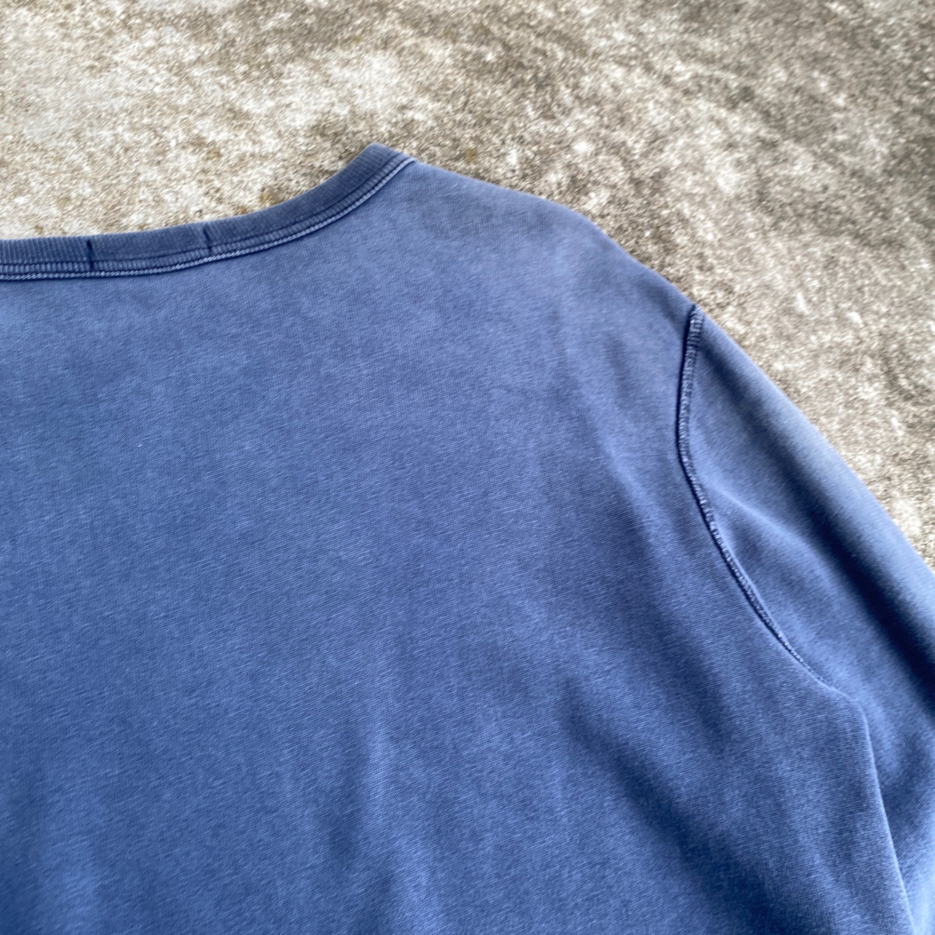 ヴィンテージを踏襲したはめ込みVガゼットのデザインに、フェードしたくすみブルーカラーが非常に雰囲気の良い一着。