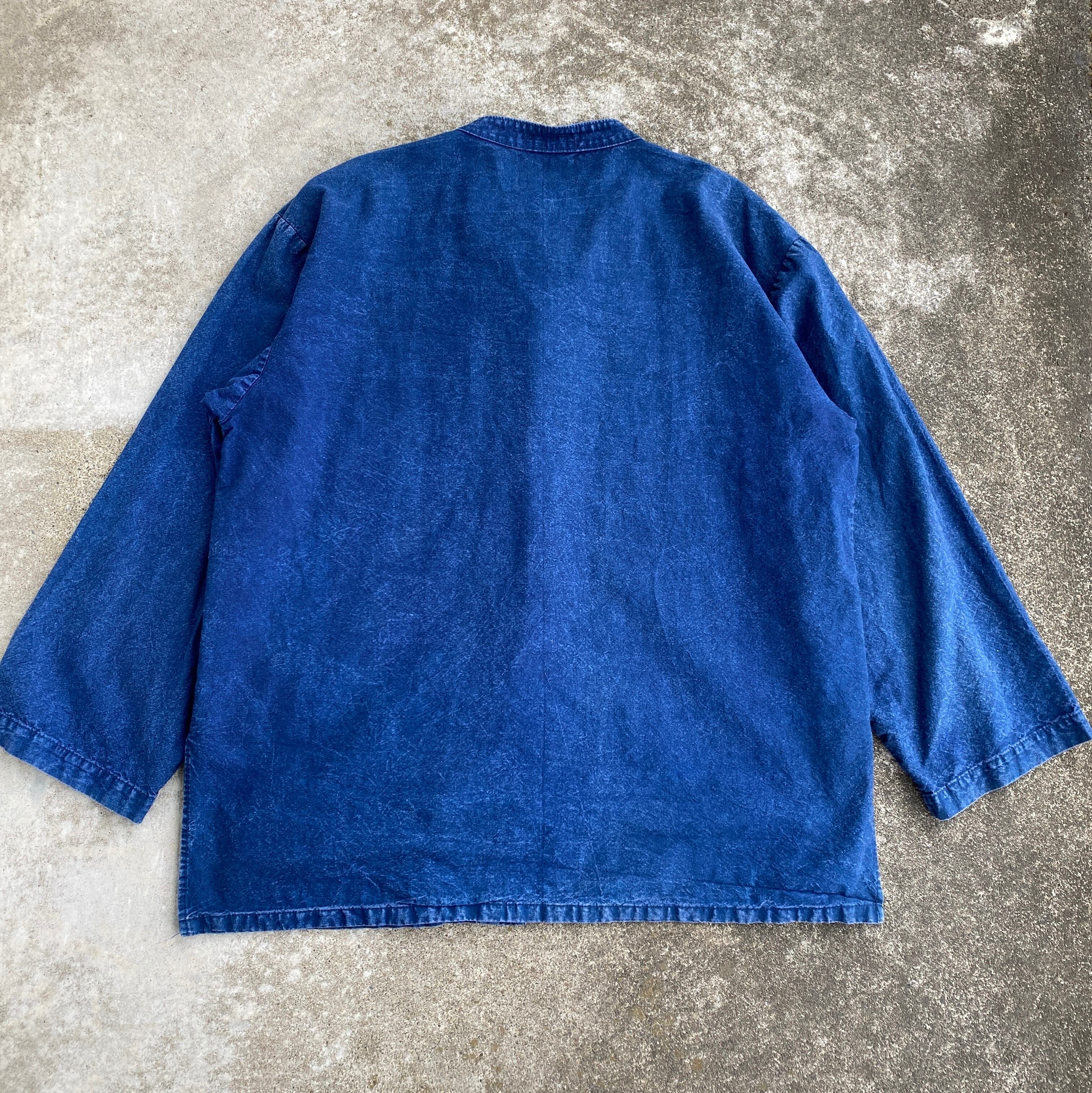 程よく着込まれてアタリが出た藍染めの色目に、やや袖短めのボックスシルエットがめちゃくちゃ格好良いです。