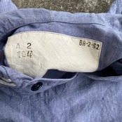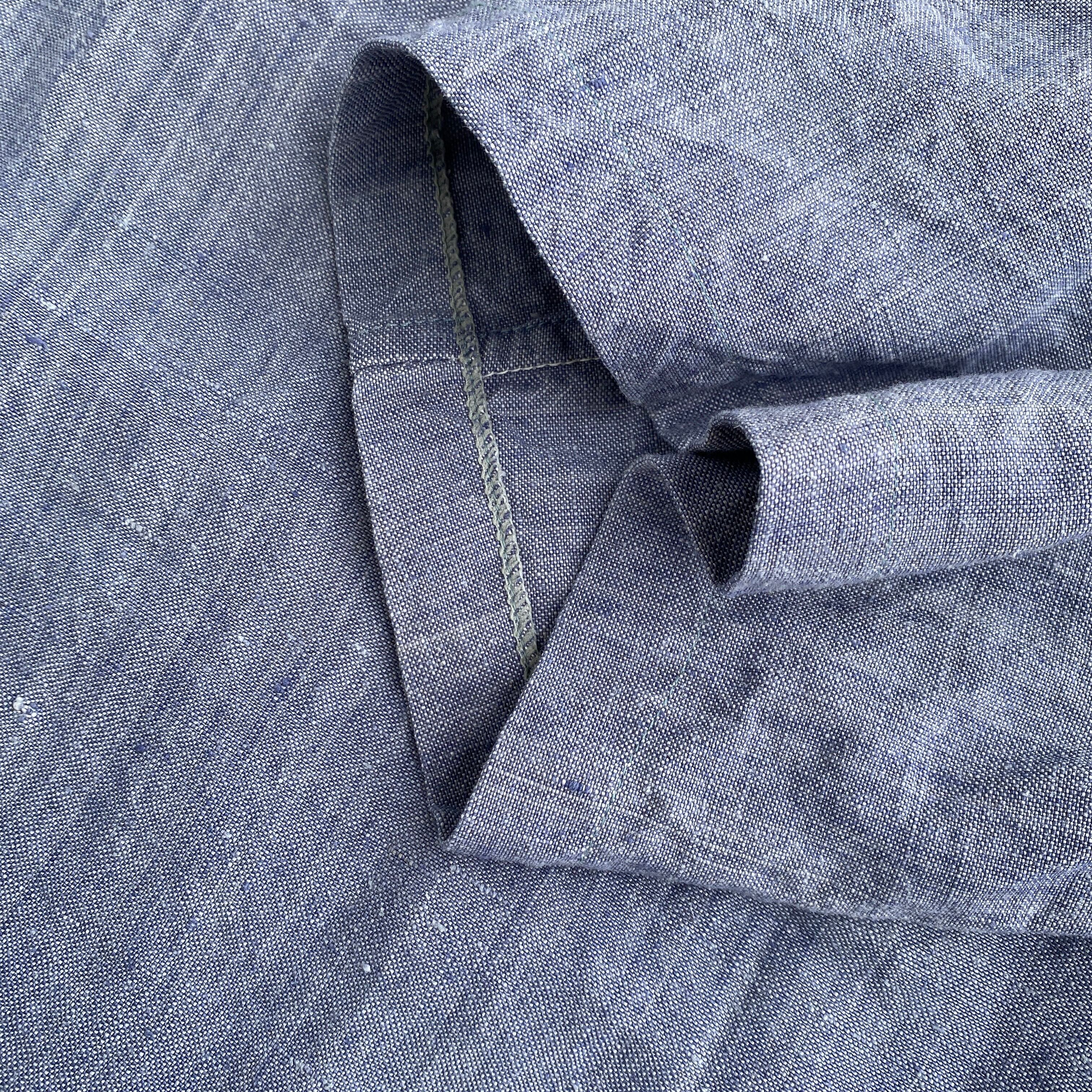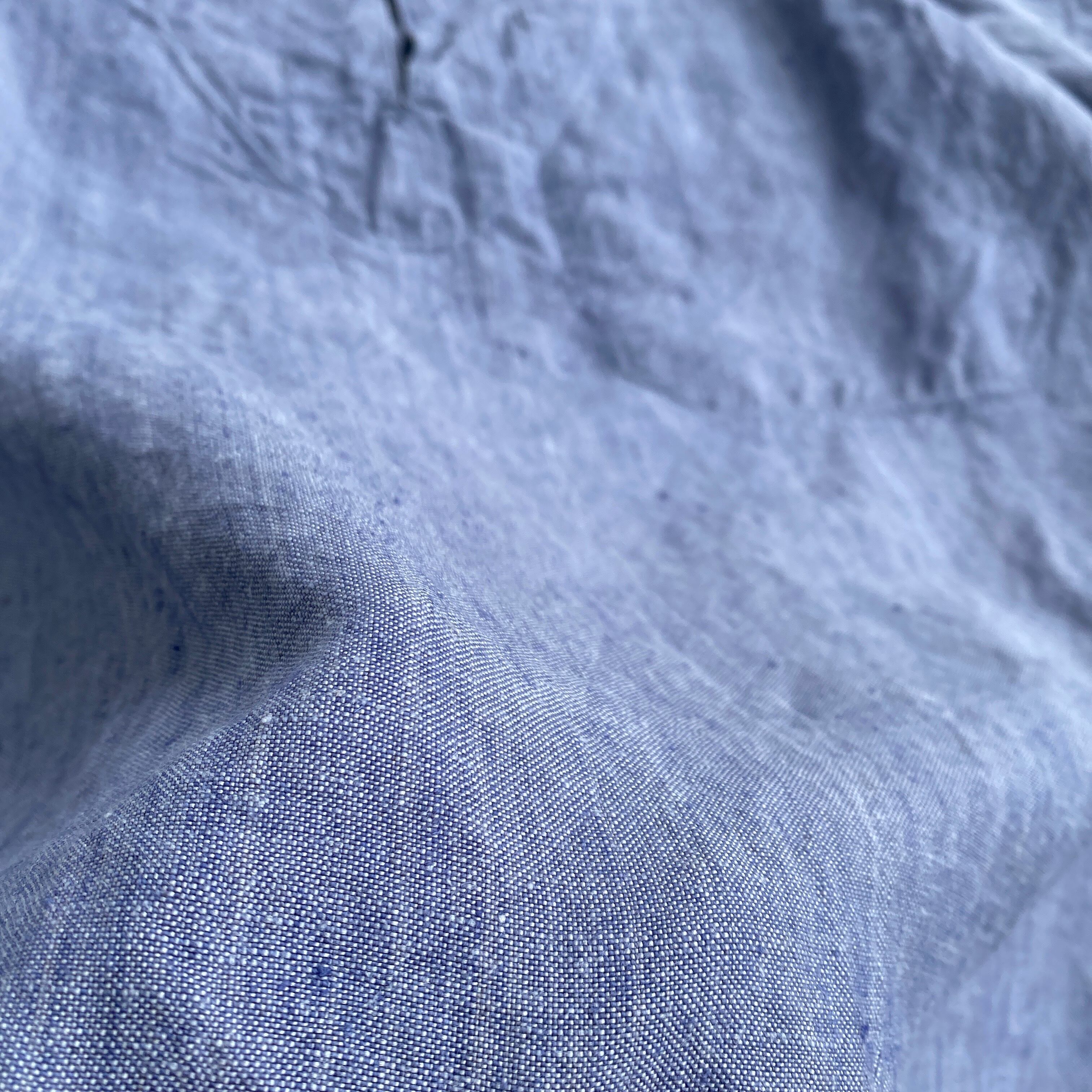 打ち込みの強いプルプルっとしたリネン素材に、くすんだブルーグレーのような色目が非常に格好良い一着。