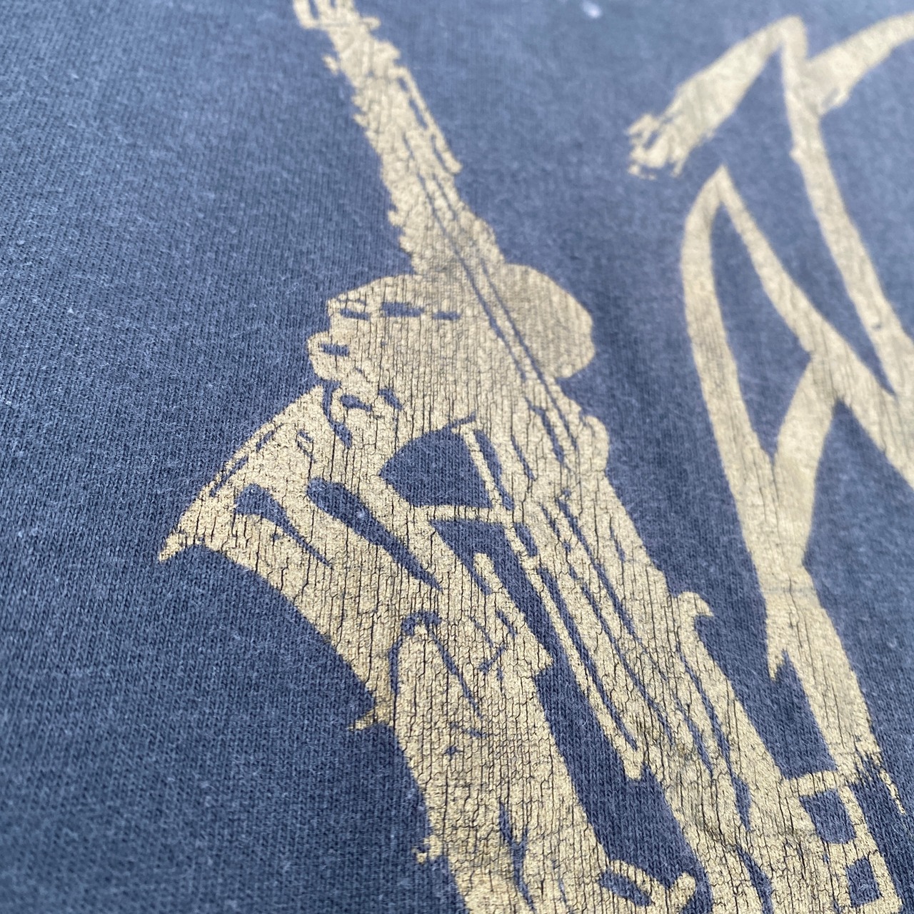 良い感じに褪色したブラックボディに、ゴールドのプリントがめちゃくちゃ格好良い一着。