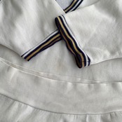 ホワイト系のボディをベースに、ネイビー、オレンジのトリムデザインが非常にかわいい一着。