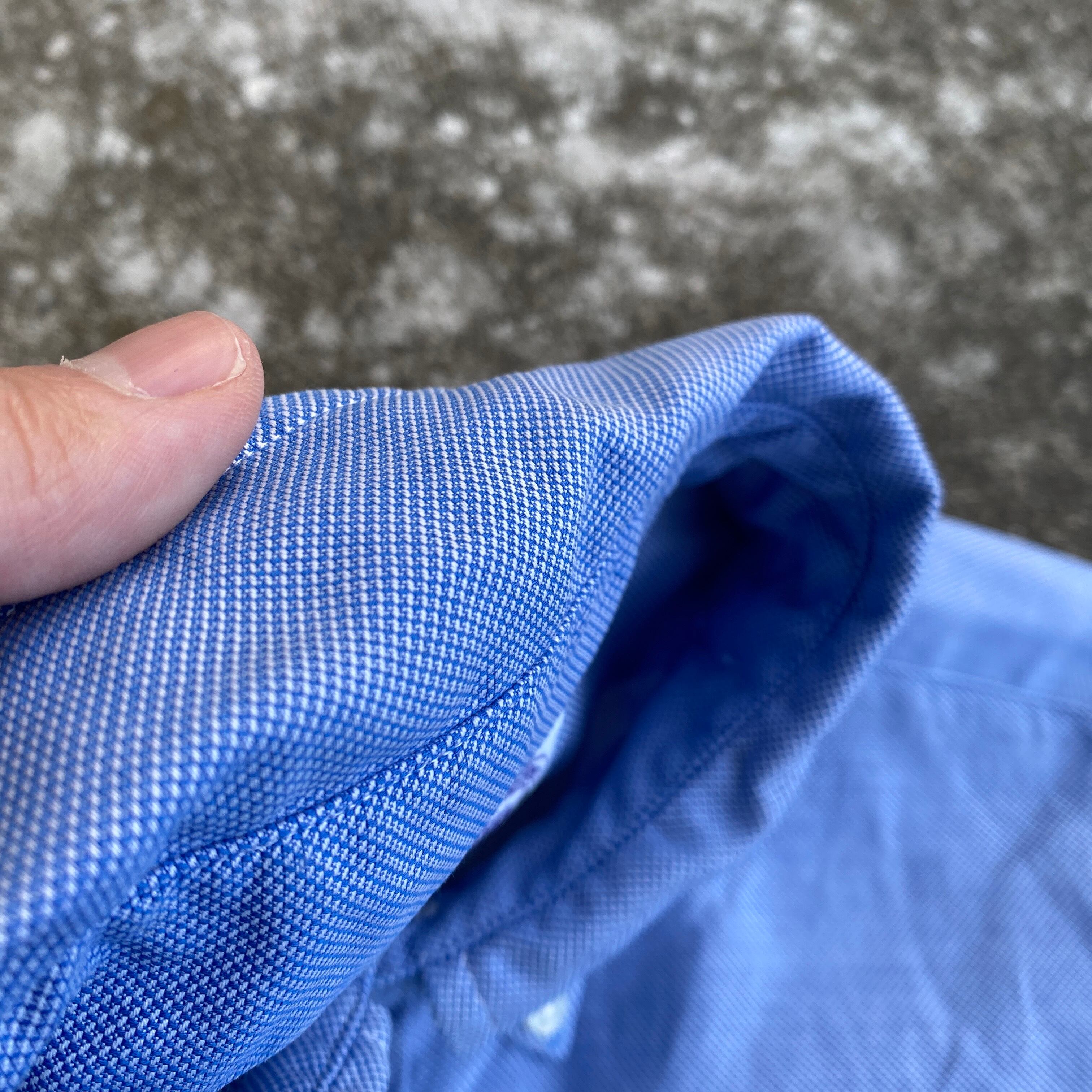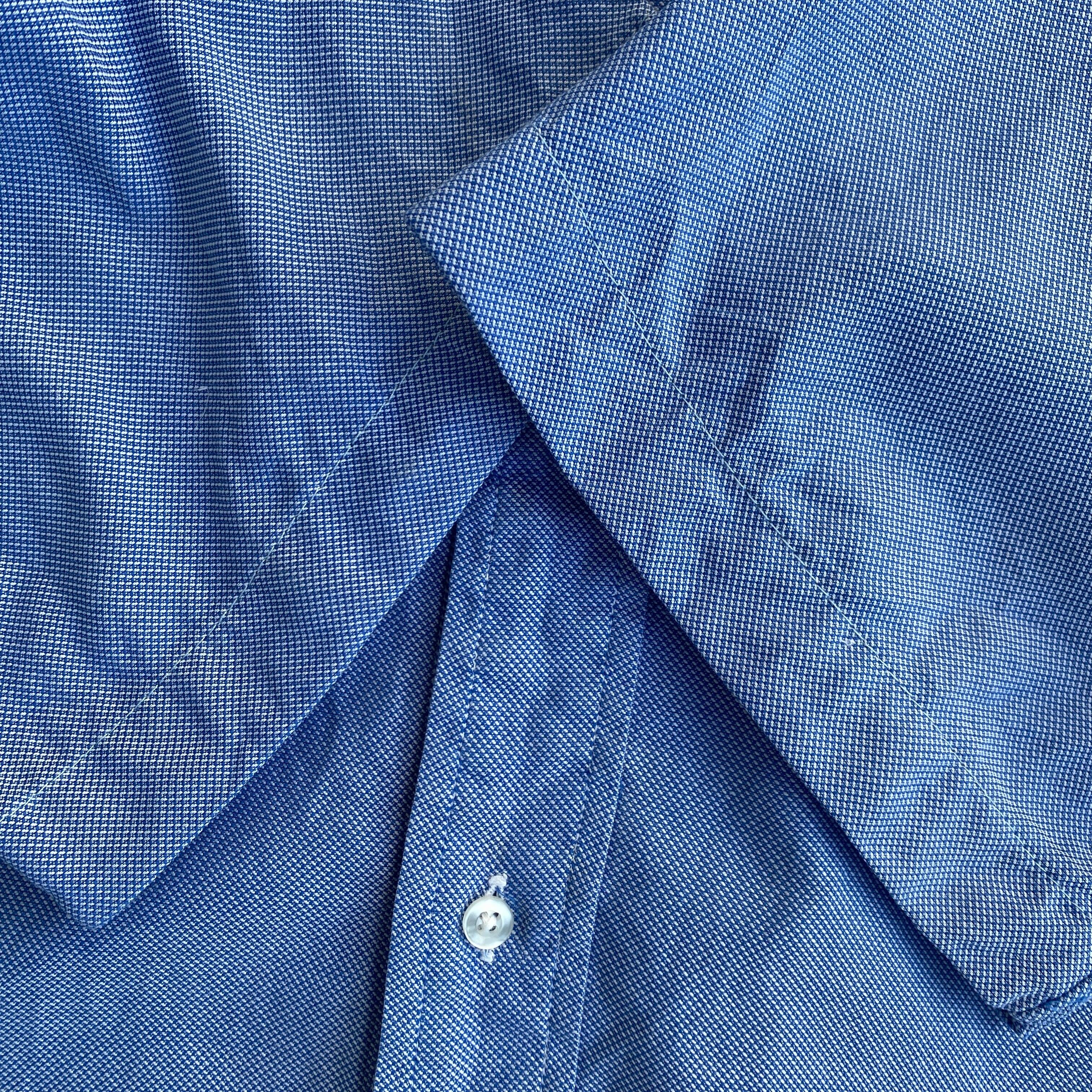 コットン100の柔らかく着心地の良い上質なオックスフォード生地に、美しいサックスブルーカラー(写真より気持ち薄いかもしれません)、この年代特有の襟型、深めにラウンドカットされたシルエットが非常に格好良い一着。