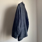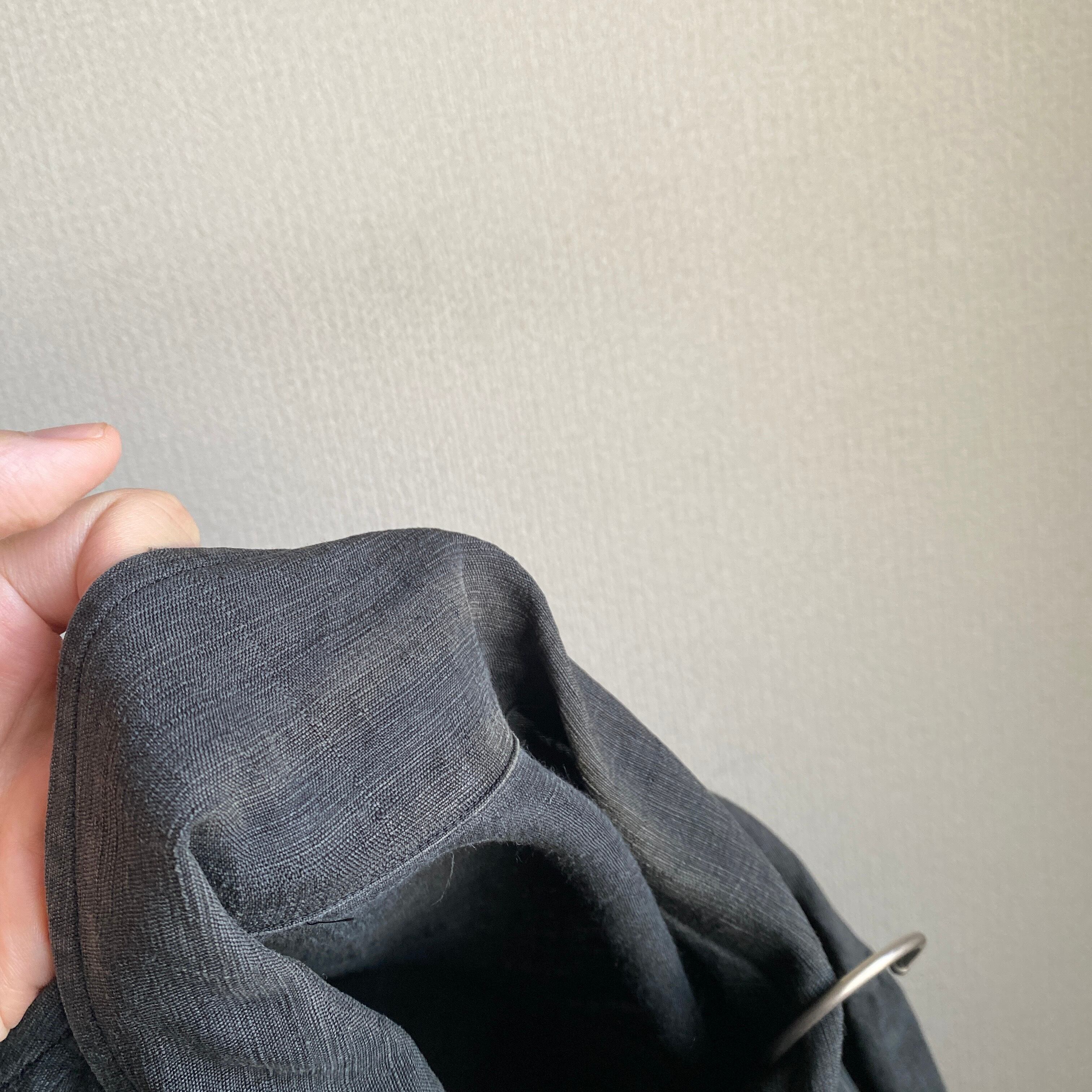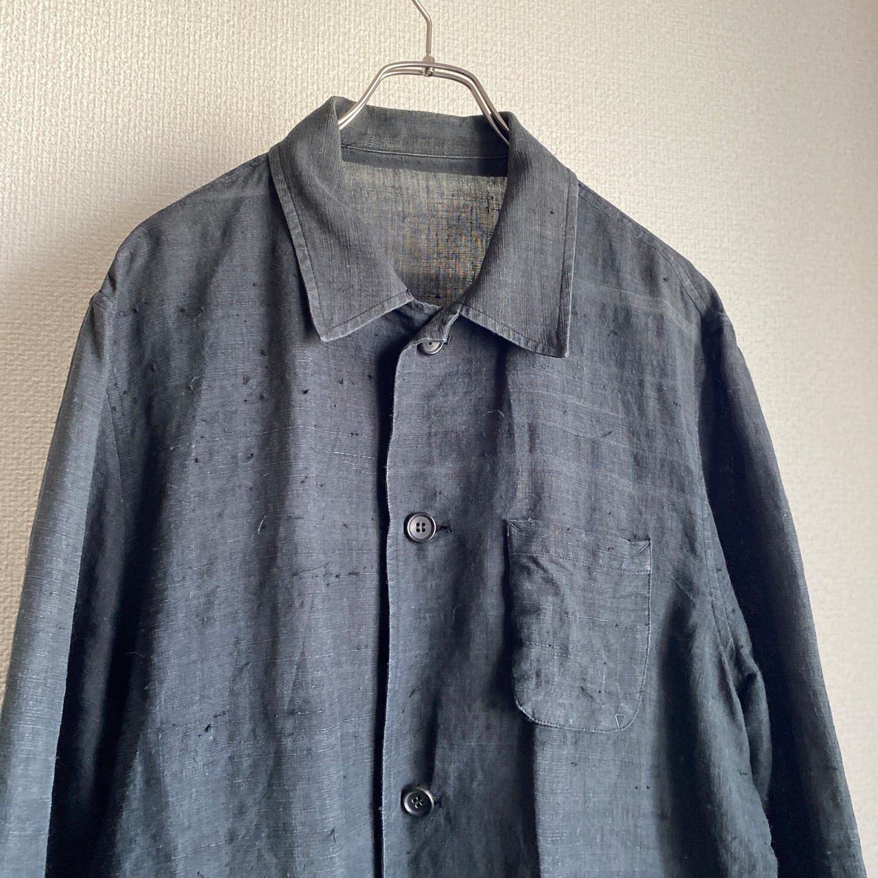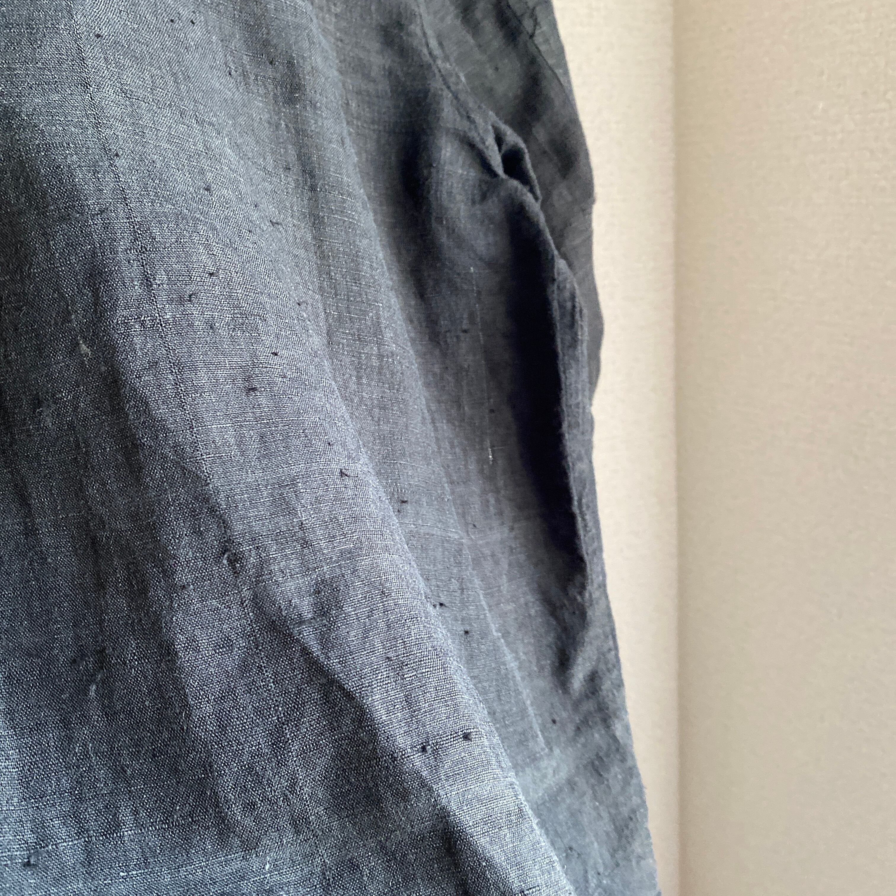 80年代にyohji yamamoto pour hommeのテキスタイルデザインや企画などをされていた「タナカサトシ」によるシグネチャーブランドで、ブラックカラーのヘビーリネンを用いた、無骨でモードな雰囲気が素晴らしい一着。